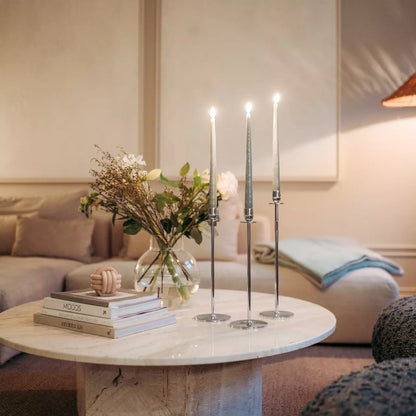En eksklusiv og håndlaget lysestake i forniklet messing. Presenteres i en luksuriøs eske