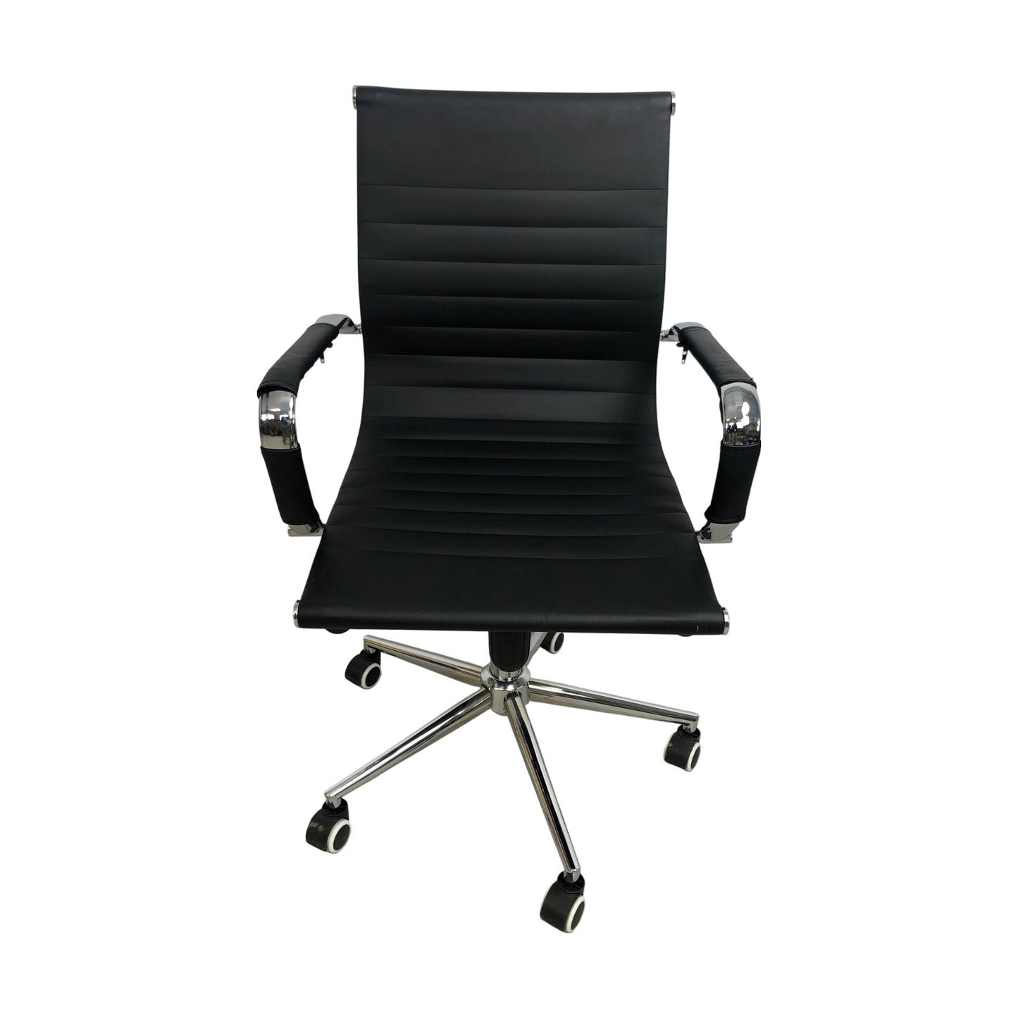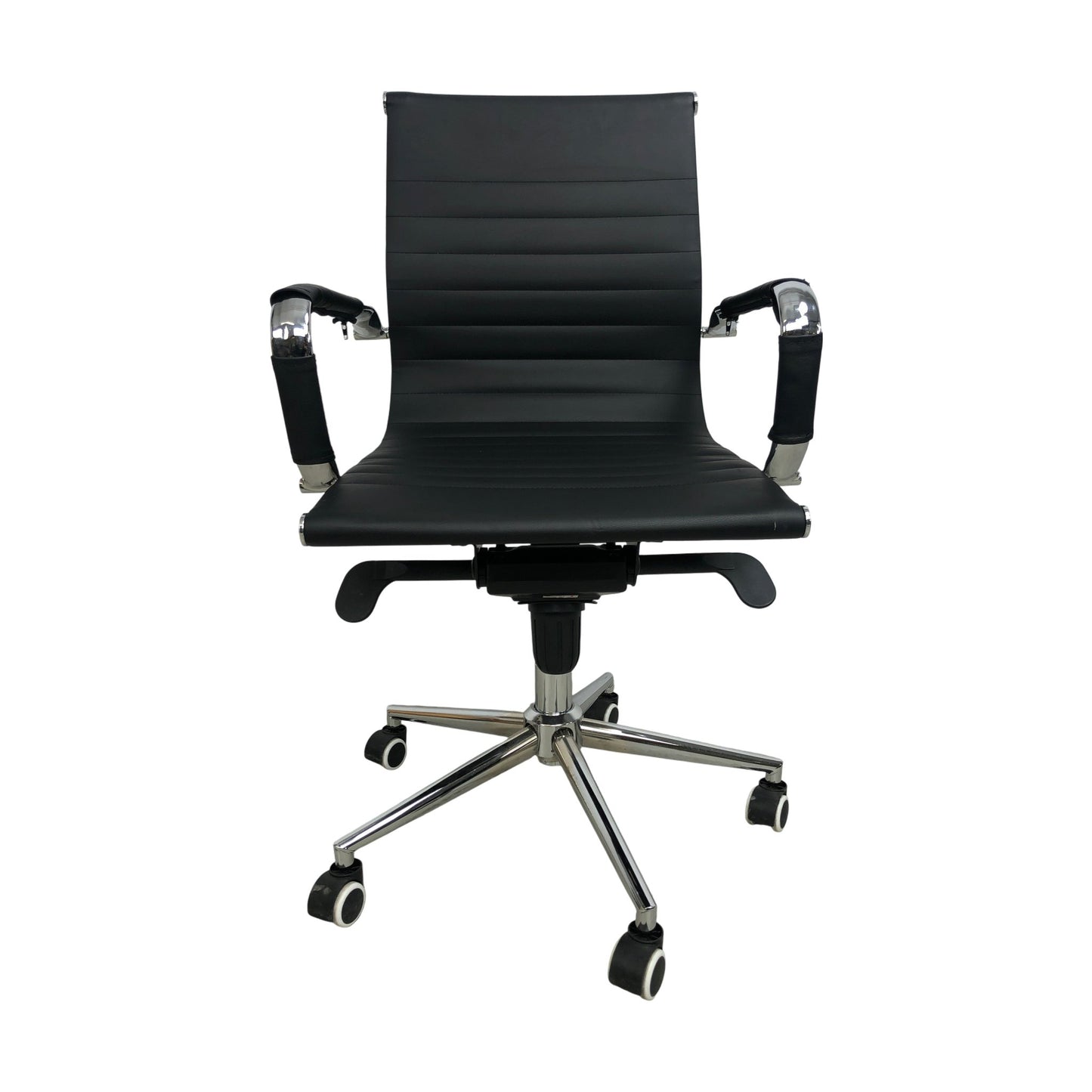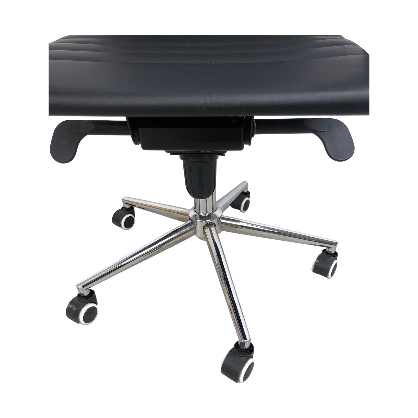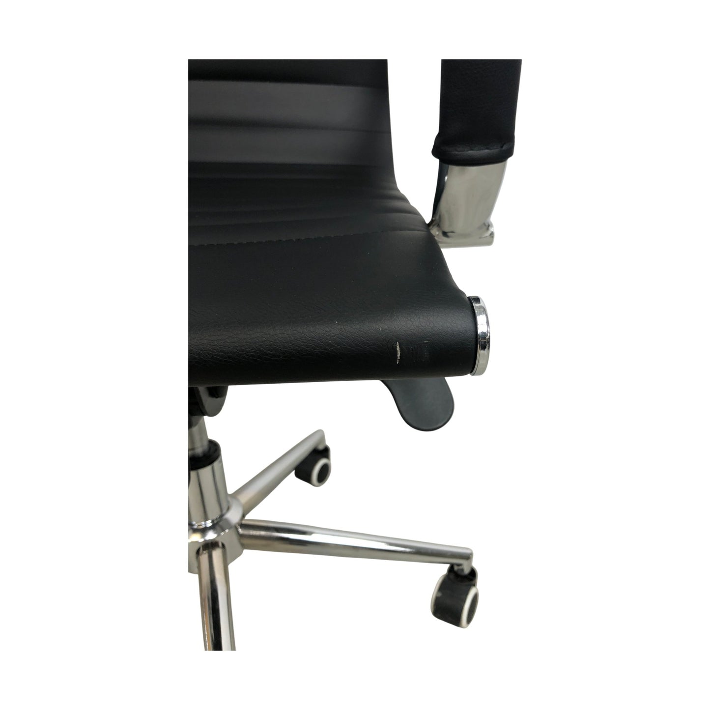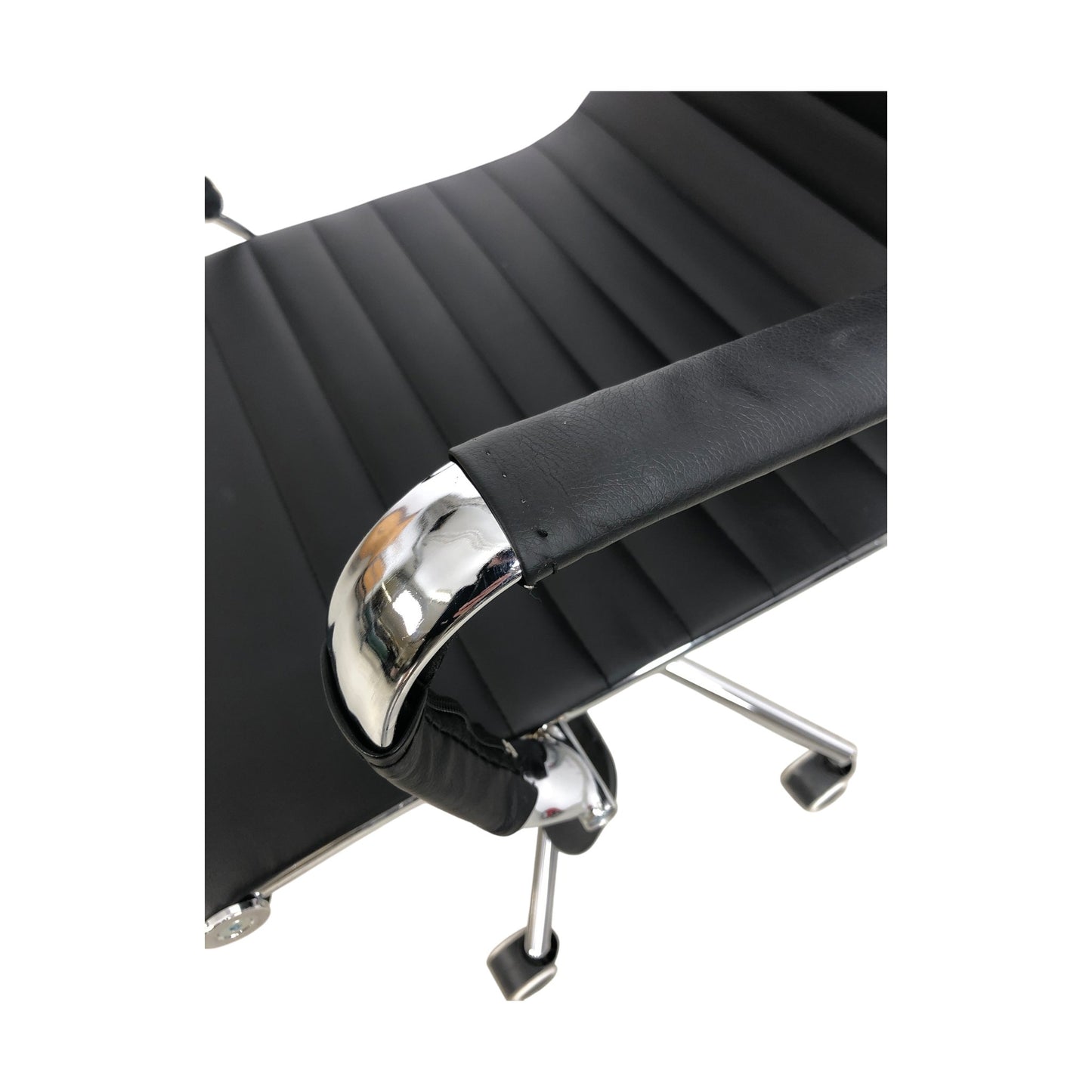 Moderne konferansestol fra Madison Møbler med et stilrent design, perfekt for kontor og møterom. Stolen har et sete i slitesterkt svart skinn, og armlenene er også polstret for ekstra komfort. Den har justerbar høyde og en tilbakelent ryggrad, noe som gir mulighet for tilpasset sitteopplevelse. Det minimalistiske uttrykket, kombinert med kromdetaljer, gir stolen et elegant preg.