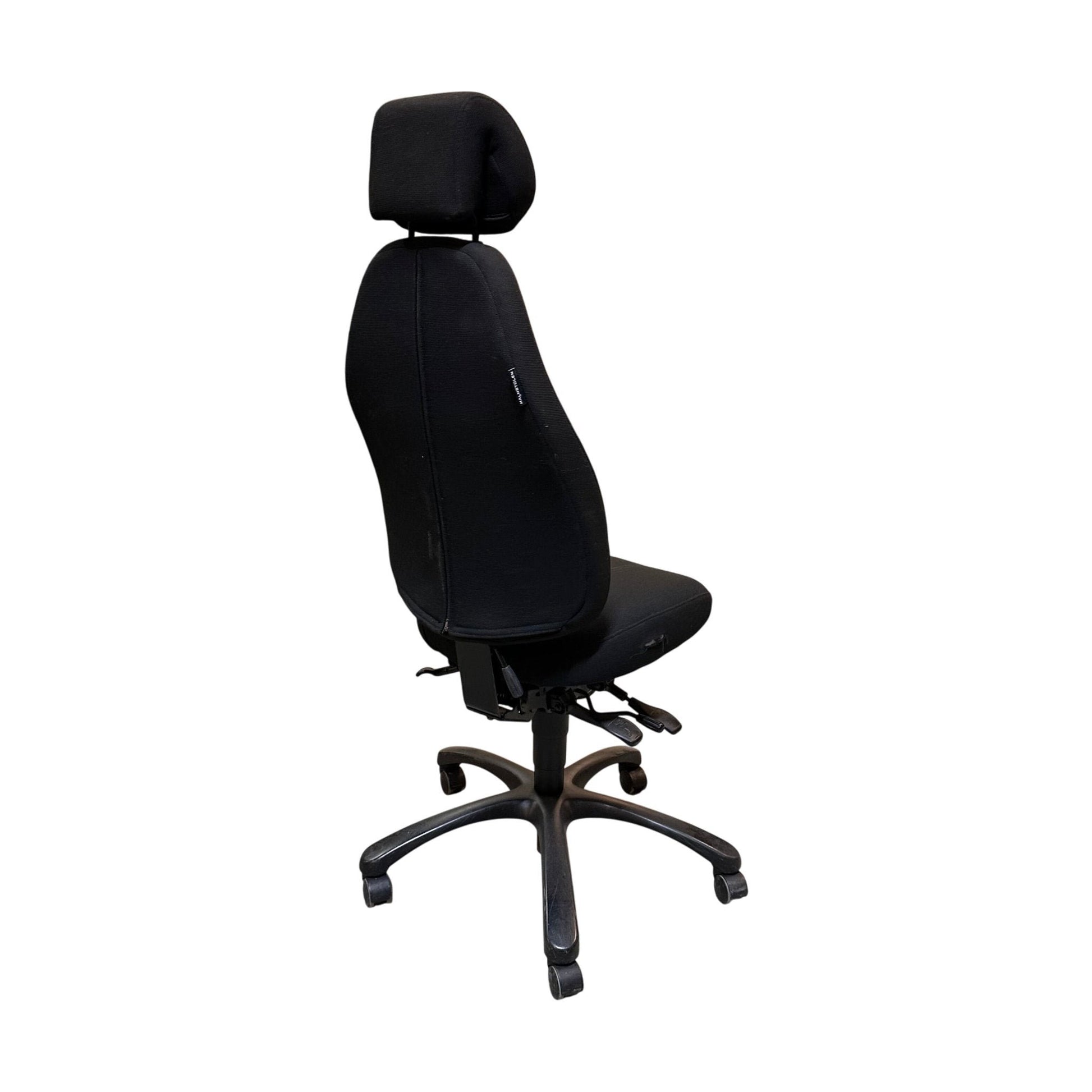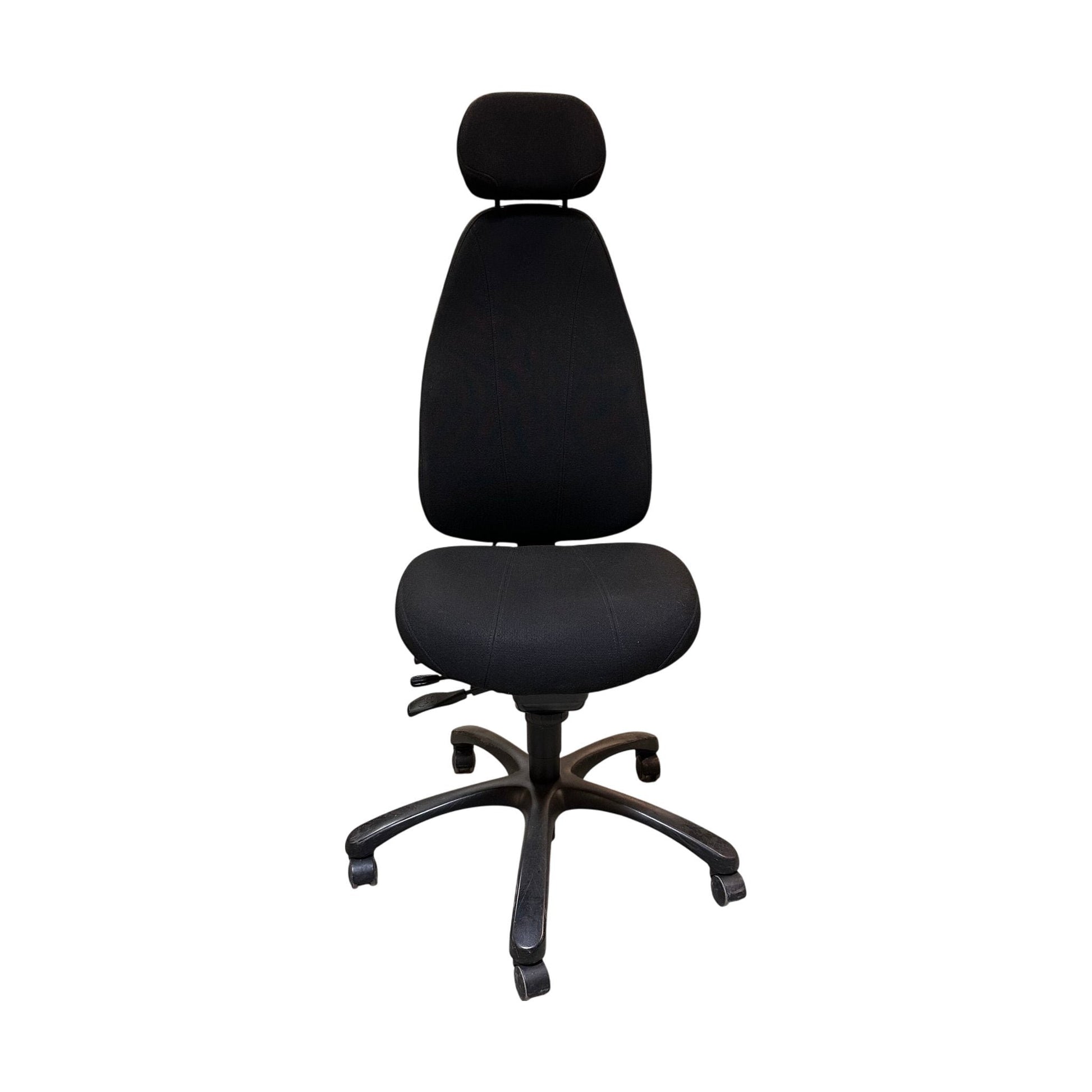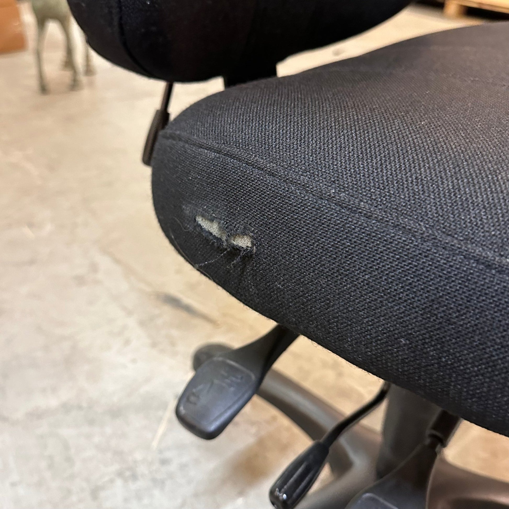 Stolen er i godt brukt stand med en rift på venstre siden av setet. Til tross for et mindre skader, er stolen fortsatt funksjonell, og alle justeringsmuligheter fungerer som de skal.