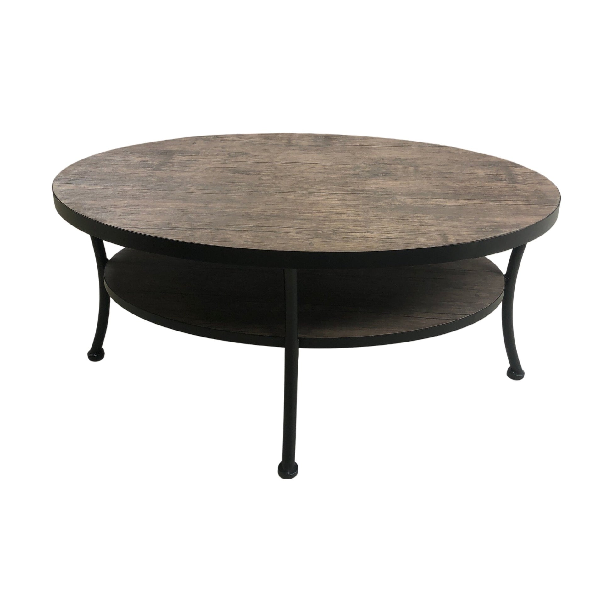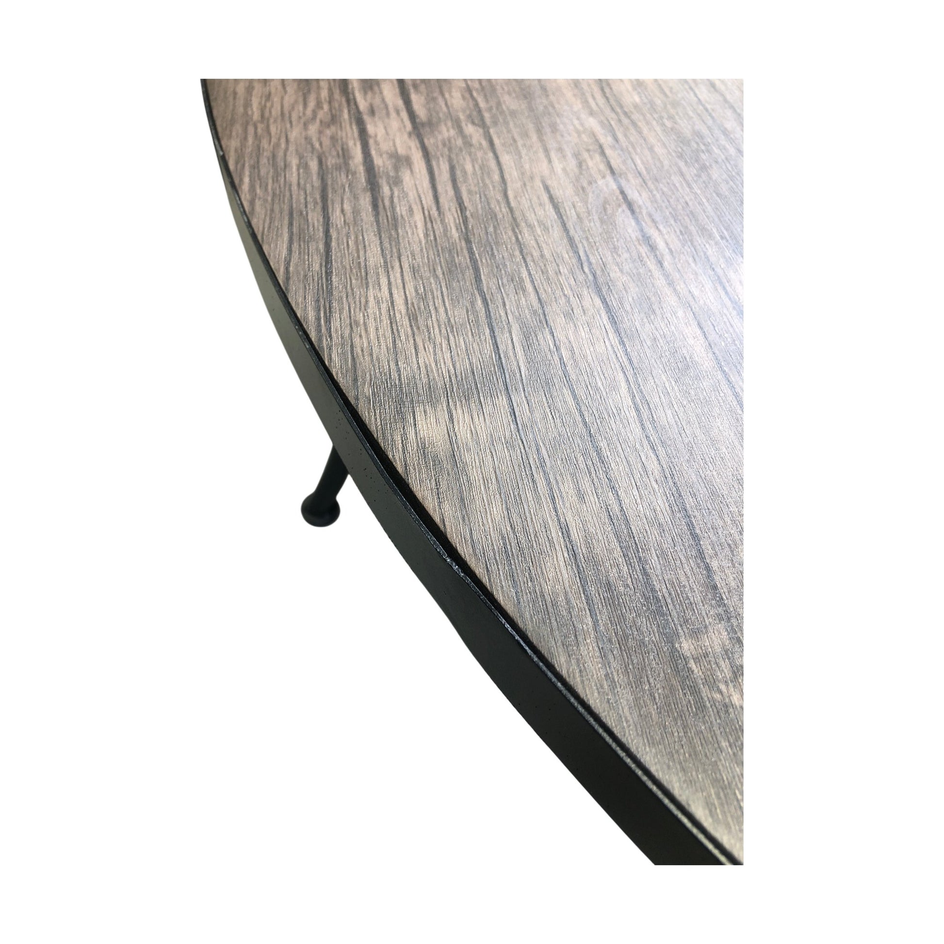 Manila sofabord fra A-Møbler har et rustikt og industrielt design med en oval plate i brun antikkmønstret folie og et sort metallunderstell. Bordet har en praktisk underhylle for oppbevaring og et elegant preg med sine rundede kanter, som gjør det trygt for både voksne og barn.