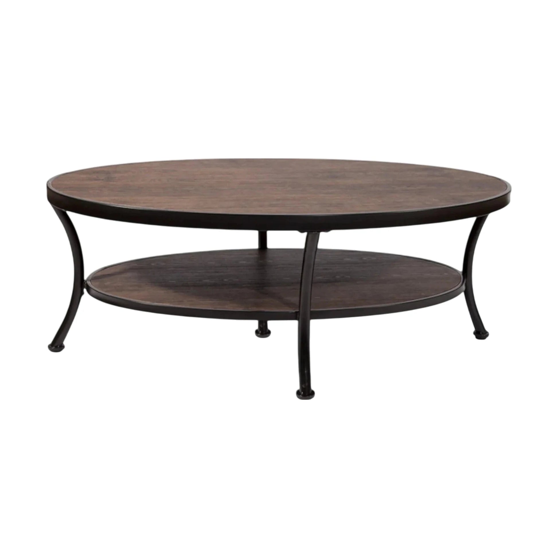 Manila sofabord fra A-Møbler med mål på 120 x 80 cm, utstråler rustikk og industriell sjarm. Bordplaten, laget i brun antikkmønster folie, gir et unikt preg, mens det sorte metallunderstellet tilfører styrke og stabilitet. Den ovale formen eliminerer skarpe kanter, noe som gjør det trygt for både barn og voksne. Bordet har også en praktisk underhylle for oppbevaring av diverse gjenstander, perfekt for å holde spisestuen ryddig.