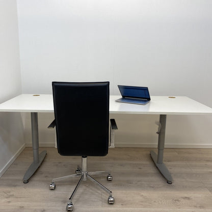 Manuell justerbart skrivebord med hvit bordplate fra Martela Oyj