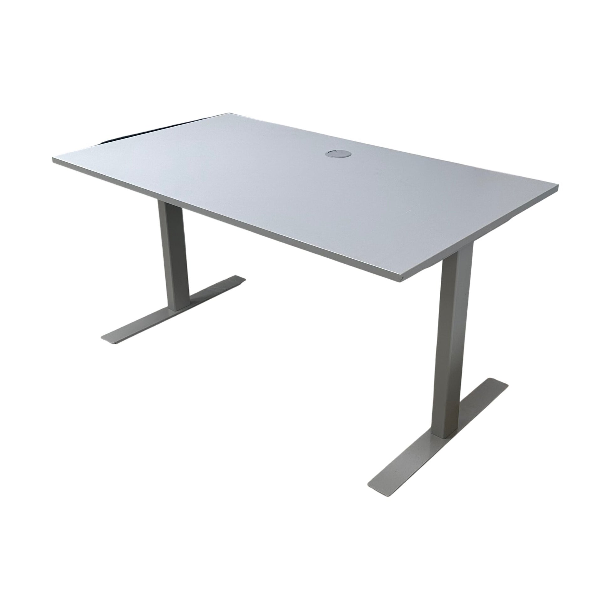Manuelt hev/senk skrivebord, har en moderne og stilren design med en grå laminatbordplate. Dette skrivebordet er ideelt for hjemme- eller kontorbruk, med justerbar høyde som gir mulighet for både sittende og stående arbeid.