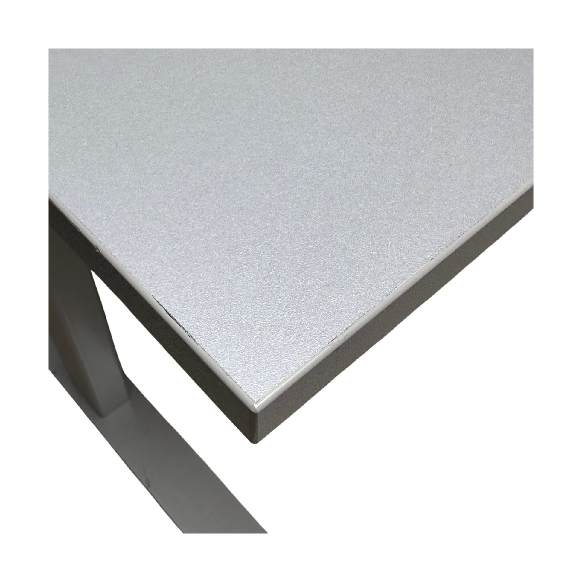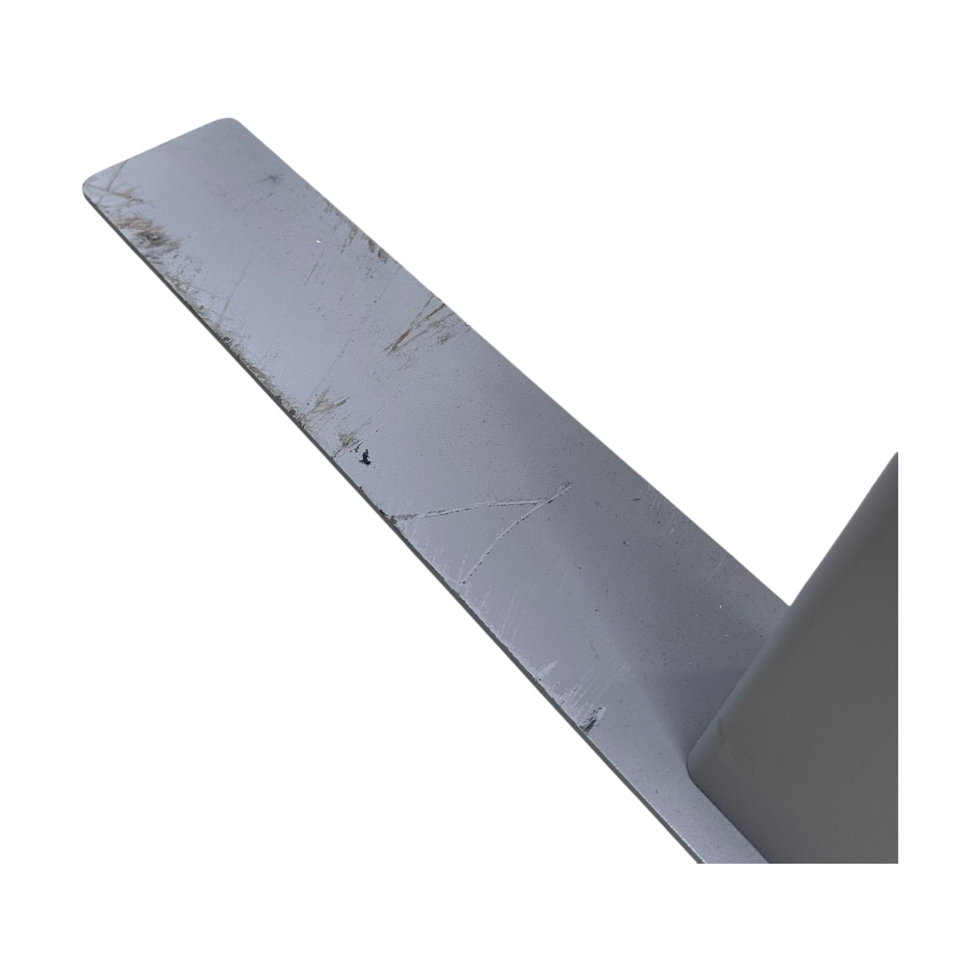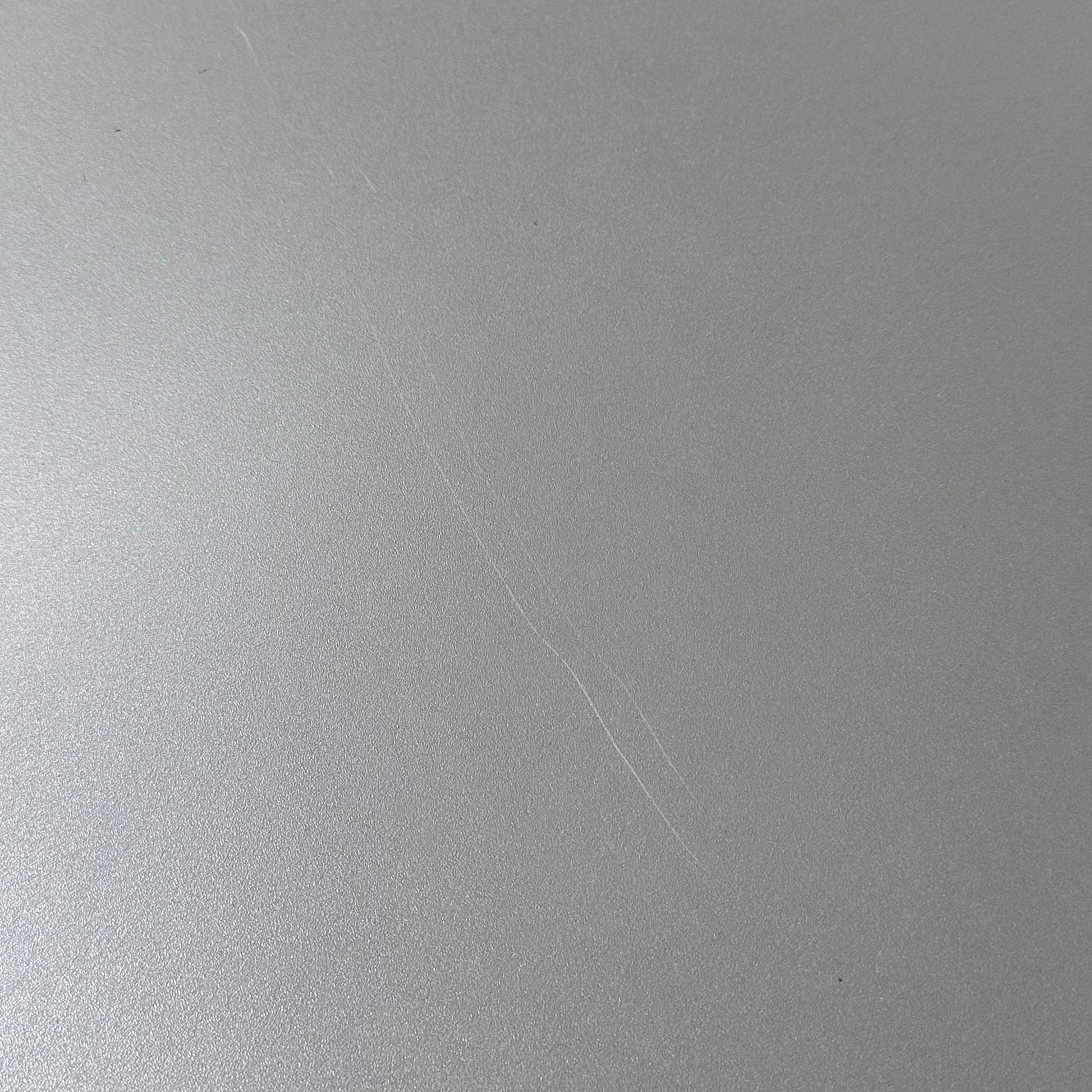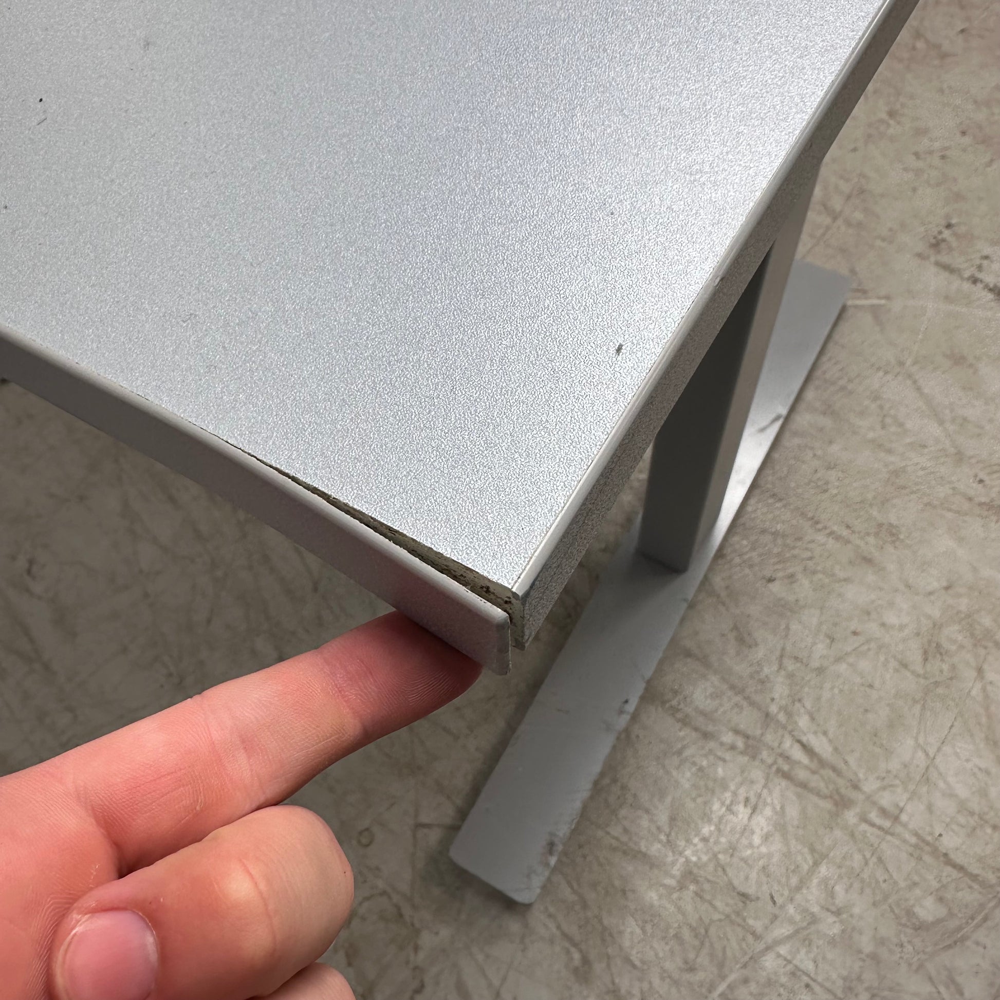 Skrivebordet er godt brukt, med flere riper på bordplaten og beina, som ikke påvirker den generelle funksjonaliteten. Det gir fortsatt et godt inntrykk og er et praktisk valg for enhver arbeidsplass.