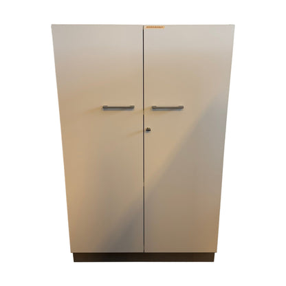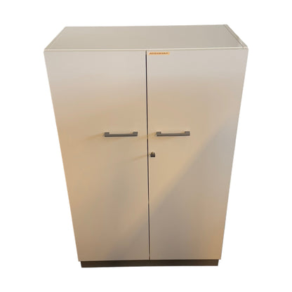 Dette stilrene kontorskapet fra Martela har et praktisk design med tre romslige hyller, ideelt for organisering av dokumenter og kontorutstyr. Skapet har en inkluderende nøkkel, som gir mulighet for sikker oppbevaring av viktige gjenstander. Den nøytrale hvite fargen gjør at skapet passer inn i de fleste kontormiljøer.