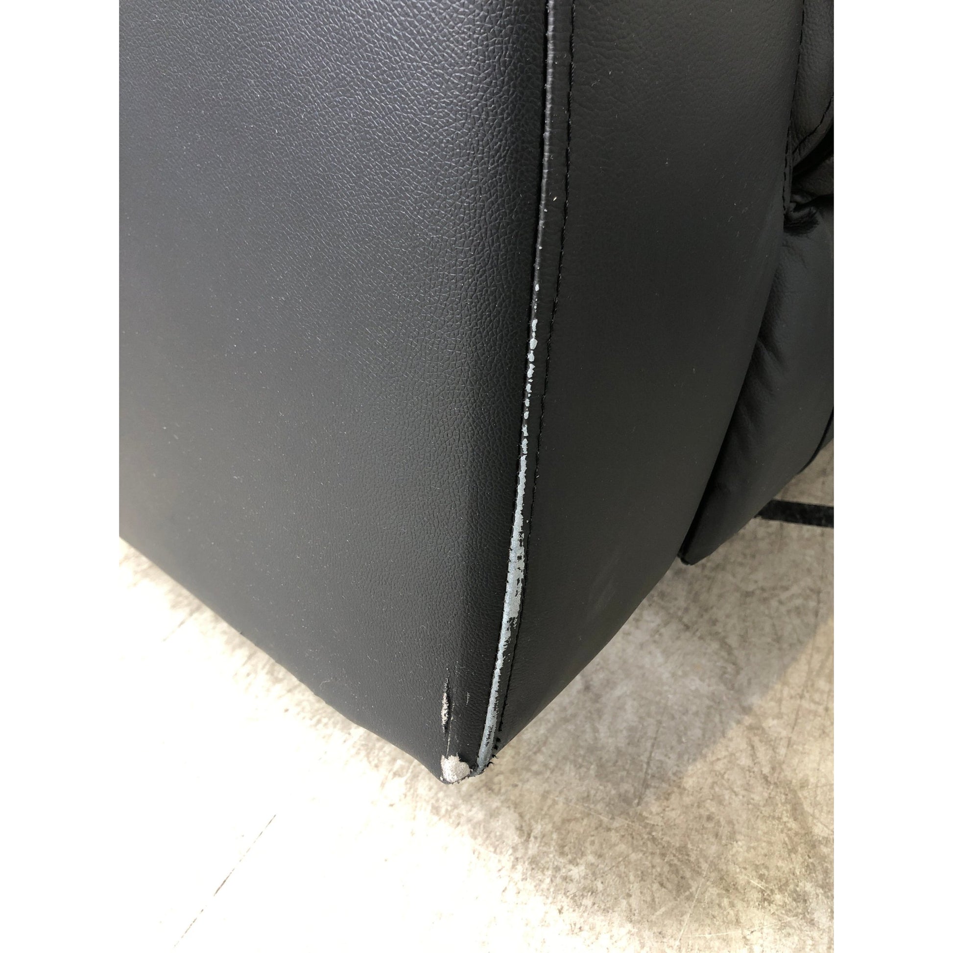 Sofaen er i godt brukt stand, med mindre skrammer enkelte steder og noe deformasjon i front på det ene setet, som vist på nærbildene. Helhetsinntrykket er fortsatt godt.