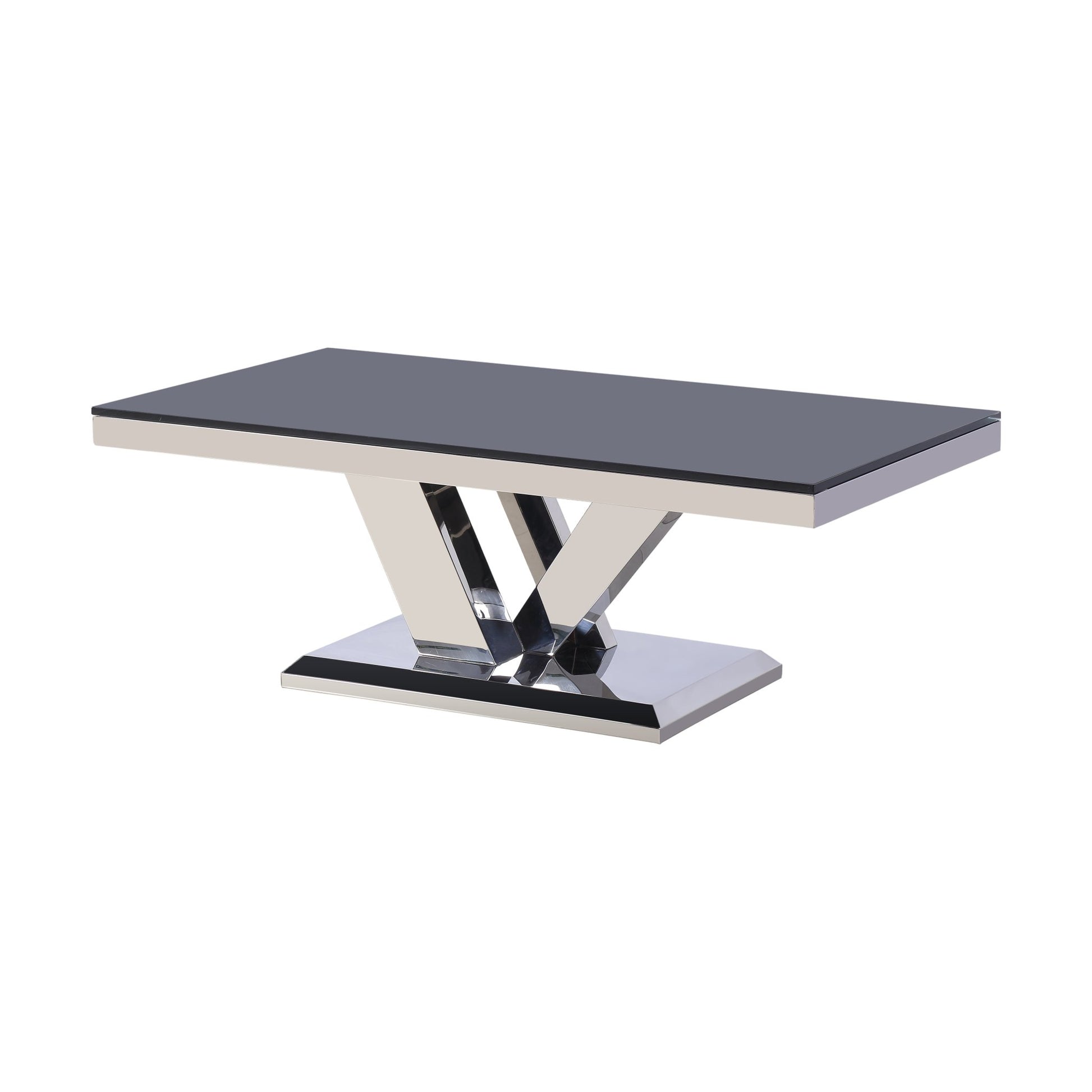 Messina sofabord fra A-Møbler er et elegant og stilfullt møbel som gir et sofistikert preg til enhver stue. Med sin sorte glassplate og sølvfargede v-formede sokkel, skiller dette bordet seg ut som et midtpunkt i rommet og kombinerer estetikk med funksjonalitet.
