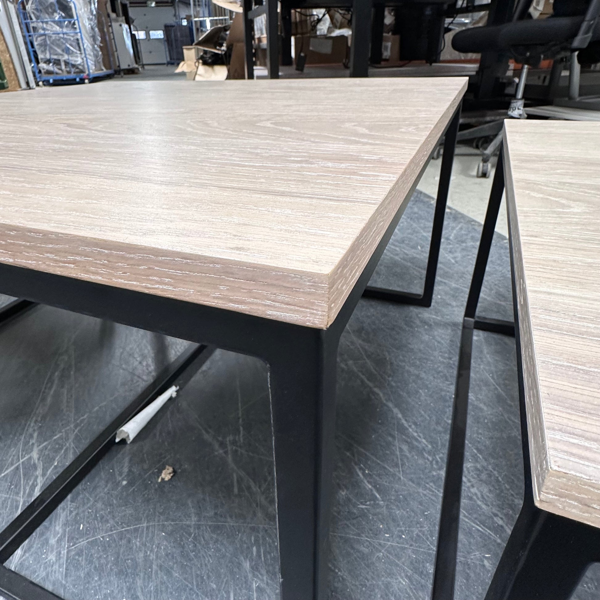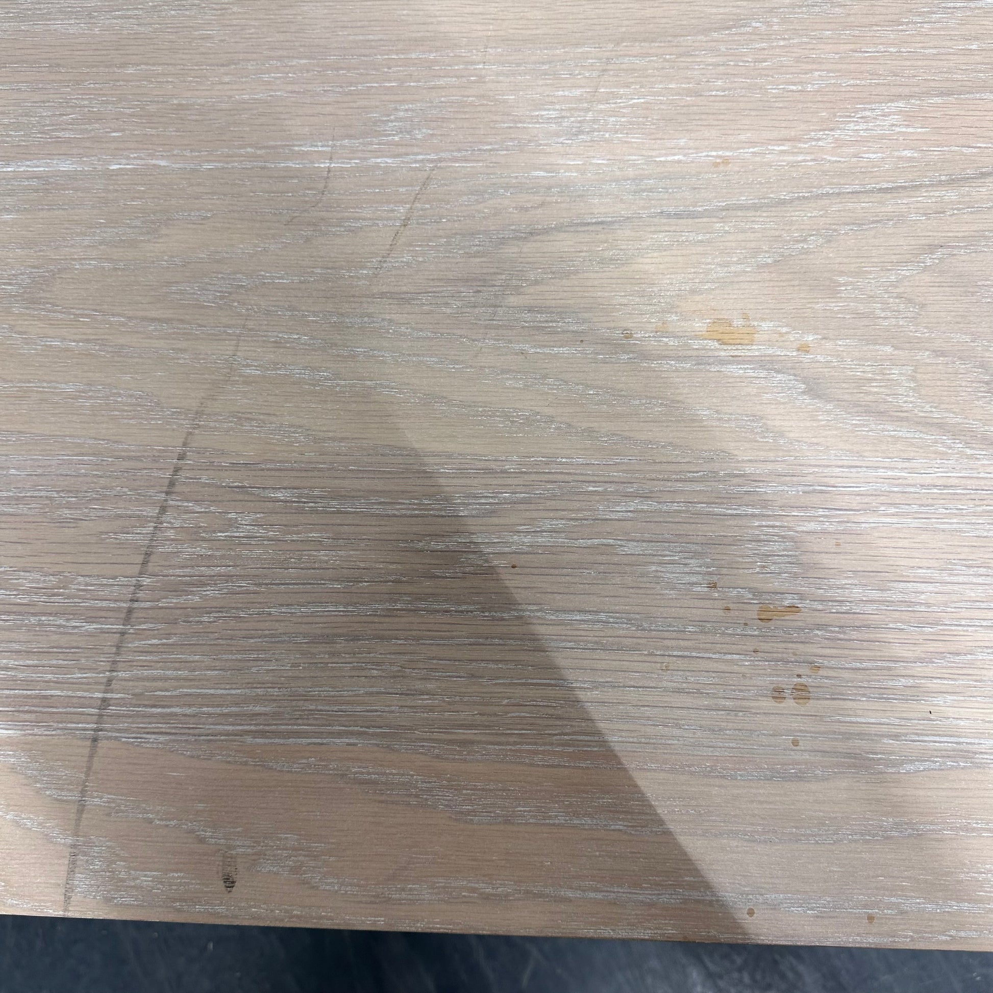 Denne har markante merker i bordplaten, men det påvirker ikke bordets funksjonalitet.