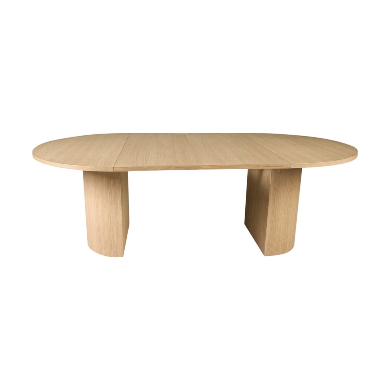 Praktisk, solid og stilsikkert spisebord med rund form og mulighet for to ileggsplater (en ileggsplate er inkludert). Bordet har en minimalistisk, matt og slett finish i eikefiner som gir et eksklusivt preg. Den runde formen tilfører et tidsriktig uttrykk i rommet og inviterer til sosiale, hyggelige middager.