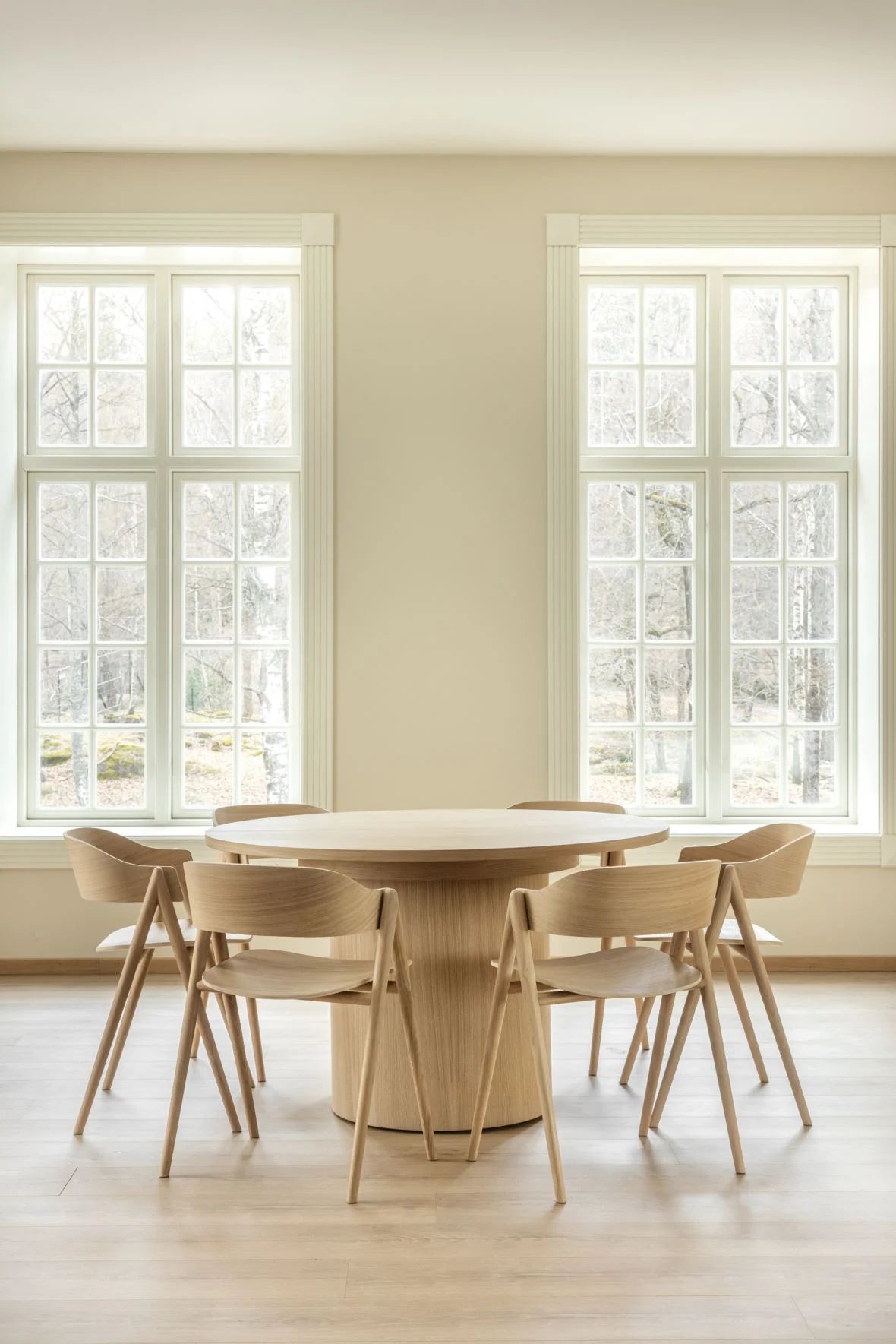 Stilrent spisebord fra Kid med en diameter på 127 cm, perfekt for både koselige middager og større selskap. Bordplaten er laget i eikefiner med en naturlig, matt finish som gir et eksklusivt preg. Den runde formen skaper en innbydende atmosfære, mens den smarte sokkelen i midten gir god plass til stolene rundt bordet. Bordet kan utstyres med opptil to ileggsplater, som gjør det fleksibelt for ulike anledninger.