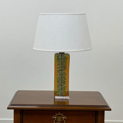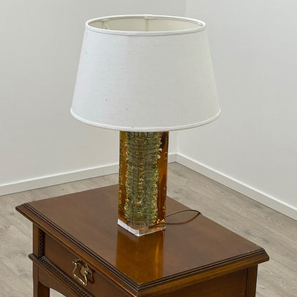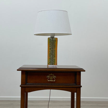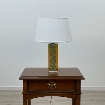 Moderne bordlampe med unik design og hvit lampeskjerm