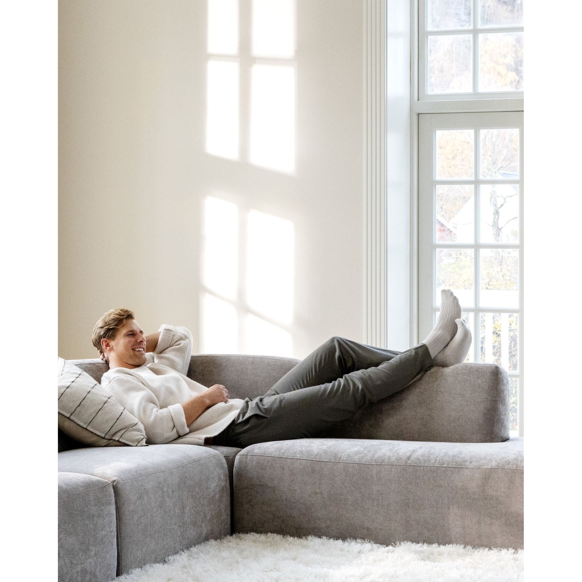 Voilà! Sofaen er nå klar for sitt nye hjem hos sine nye eiere.