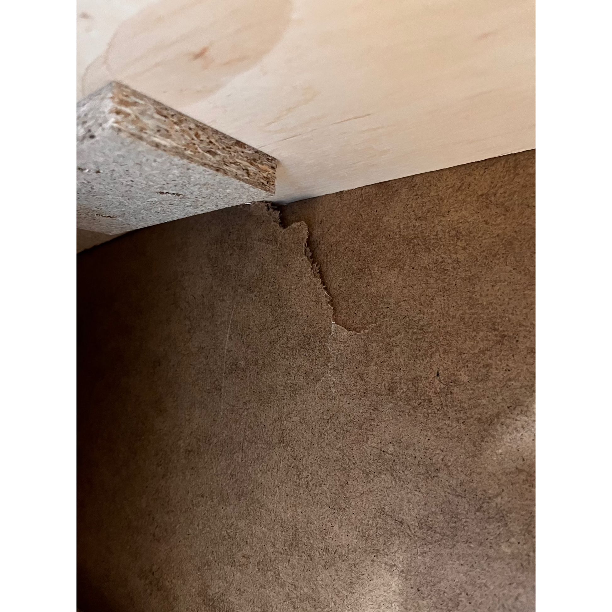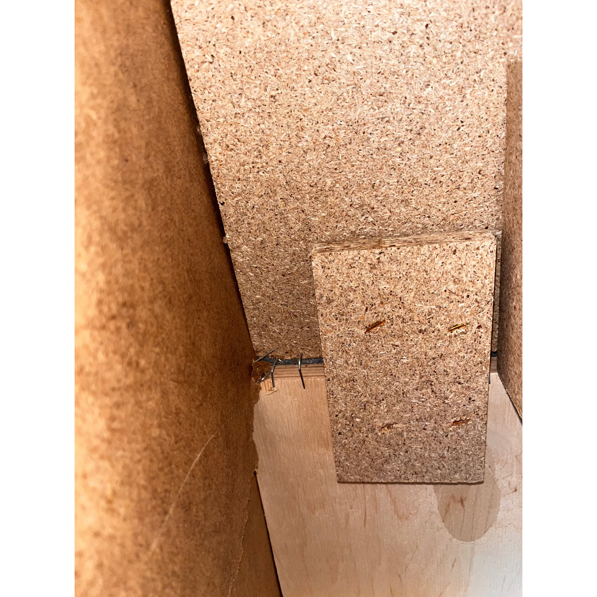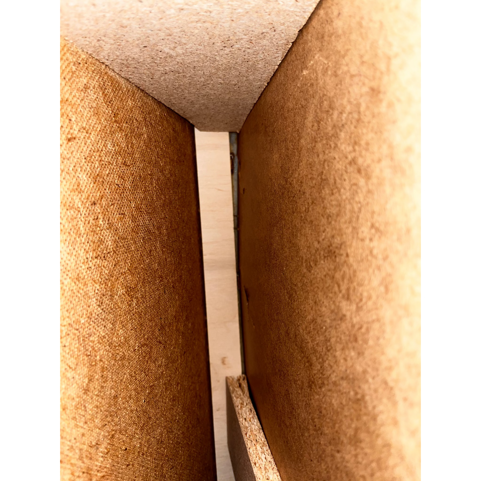 Sofaen er godt brukt med noen skader innvendig i trefiner platene i høyre rygg. Skadene blir synlig utvendig ved høyre side. Stolen lager noen knirkelyder når den blir brukt. Den tilbyr både stil og funksjonalitet, og vil være et flott tilskudd til ethvert rom.