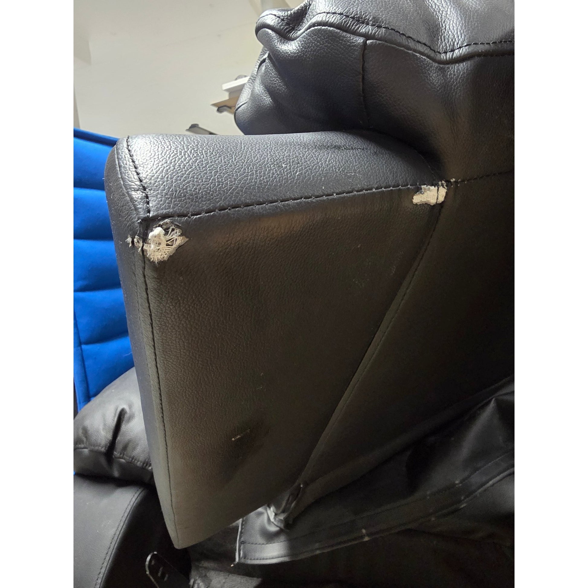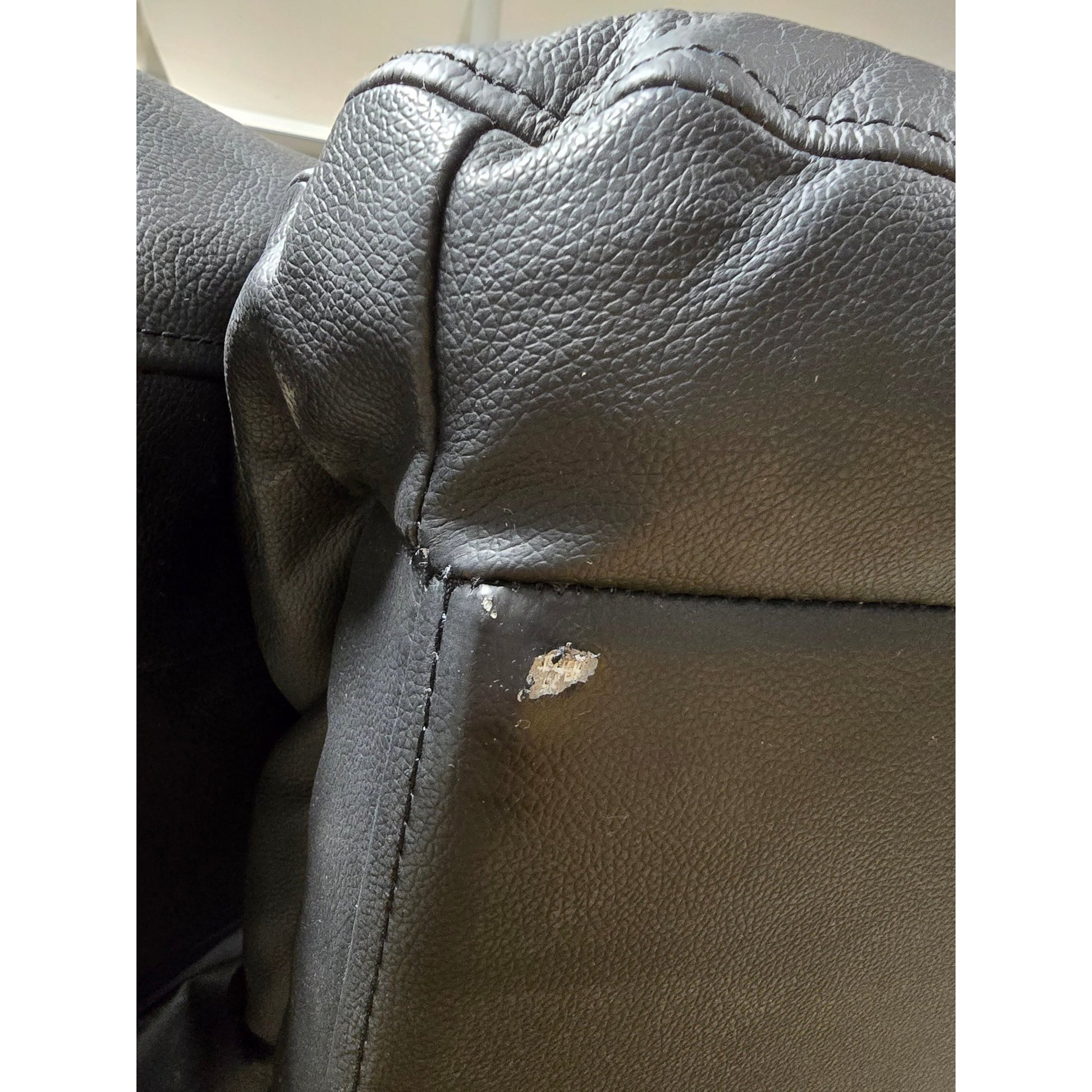 Sofaen er godt brukt, med synlige rifter som avbildet. Fire av de er i ryggpartiet som ikke syns forfra. Èn stor rift på høyre armlenet.