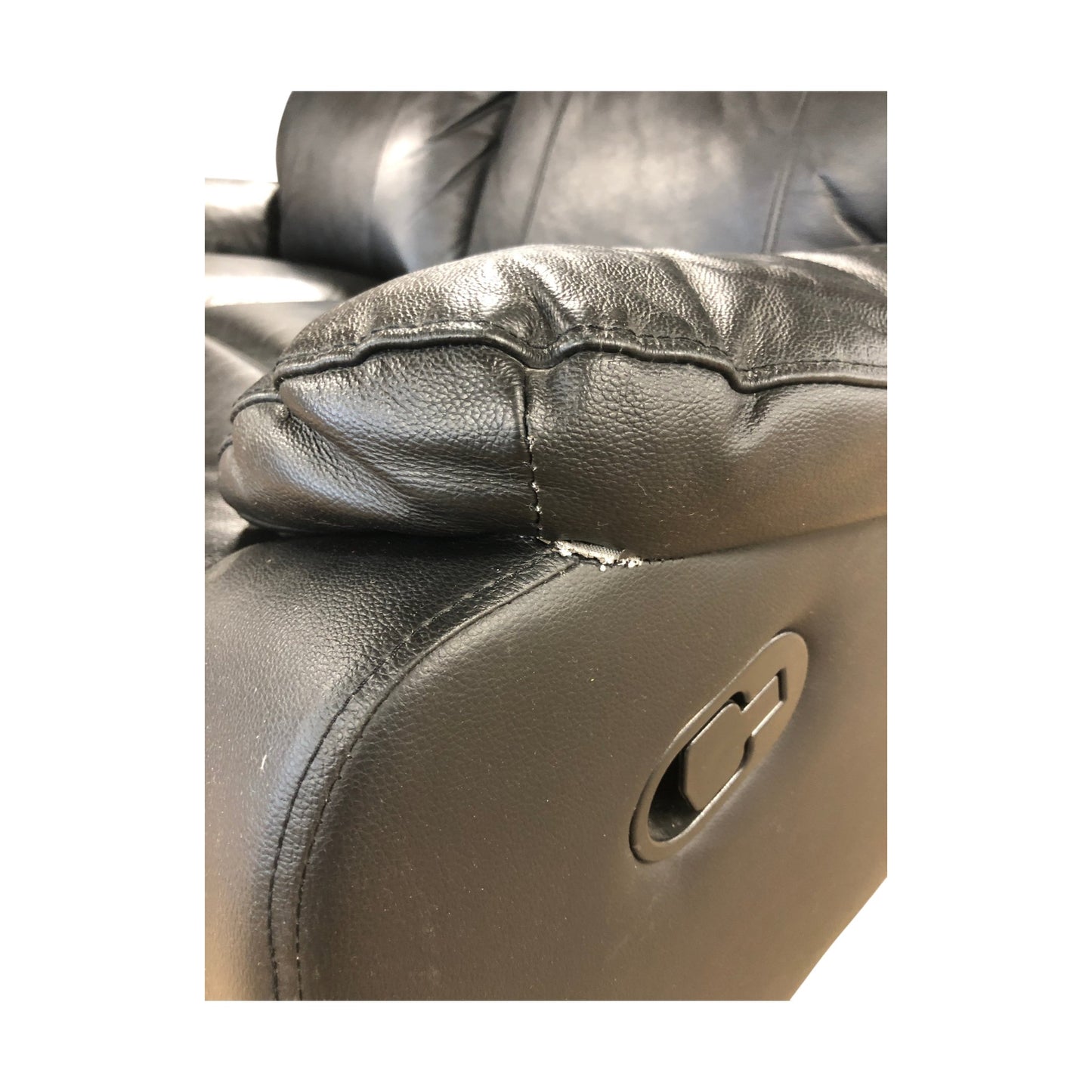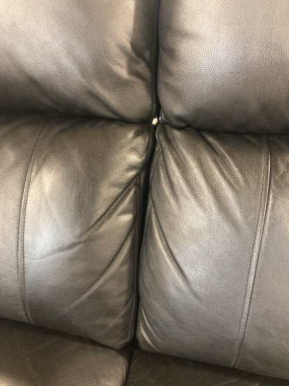 Sofaen er i godt brukt stand med noen skrammer og merker på skinnet, samt noe skumforskyvning i setene. Til tross for dette er den komfortabel og fungerer godt, og gir et flott tilskudd til stuen din.