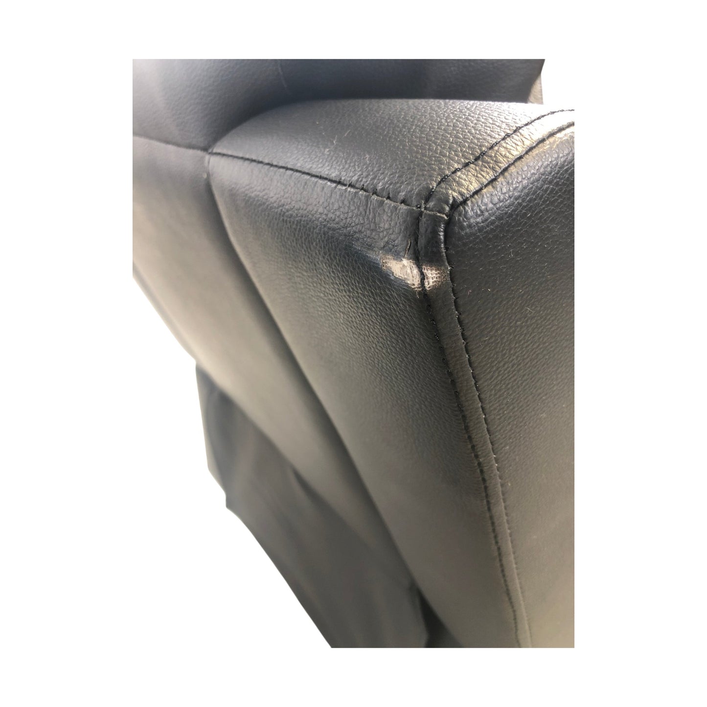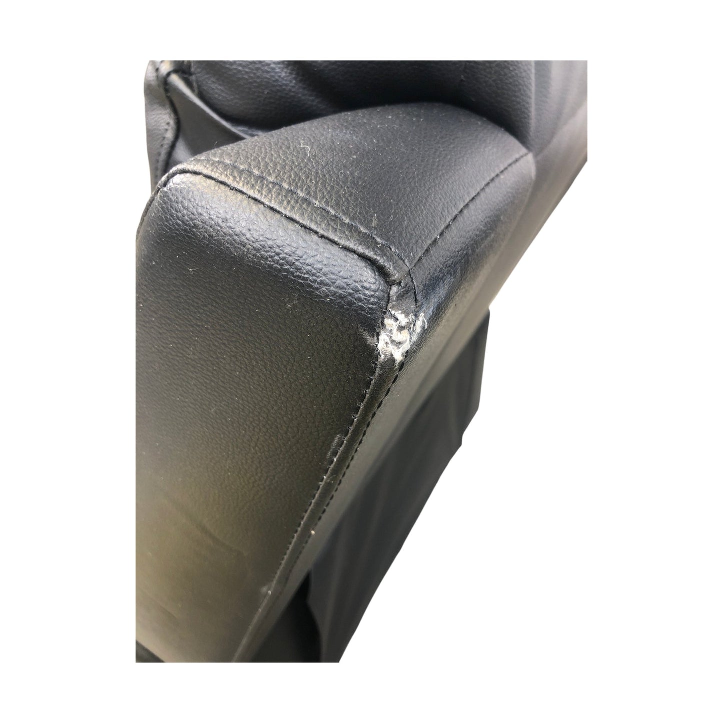 Stolen er godt brukt med synlige skrammer og merker i stoffet. Funksjonaliteten er derimot upåklagelig, og recliner-funksjonen fungerer som den skal, noe som gjør den fortsatt ideell for daglig bruk.