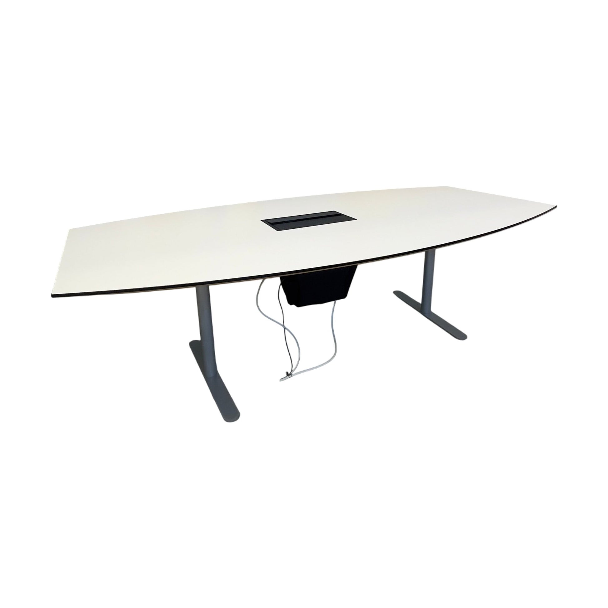 Solid møtebord med en stilren grå bordplate og en robust konstruksjon. Bordet gir et profesjonelt preg, perfekt for møterom og kontorer. Den generøse bordflaten på 240x120 cm gir god plass til flere deltakere. Bordet har en prakisk løsning for strømforsyning slik at arbeidsflaten forblir ryddig.