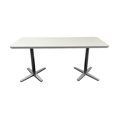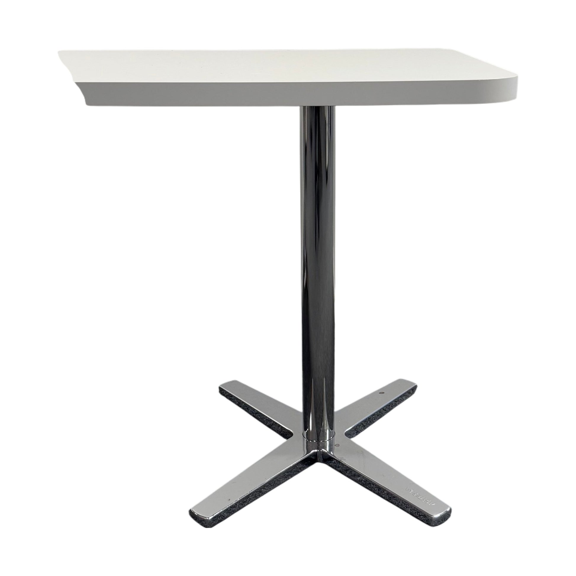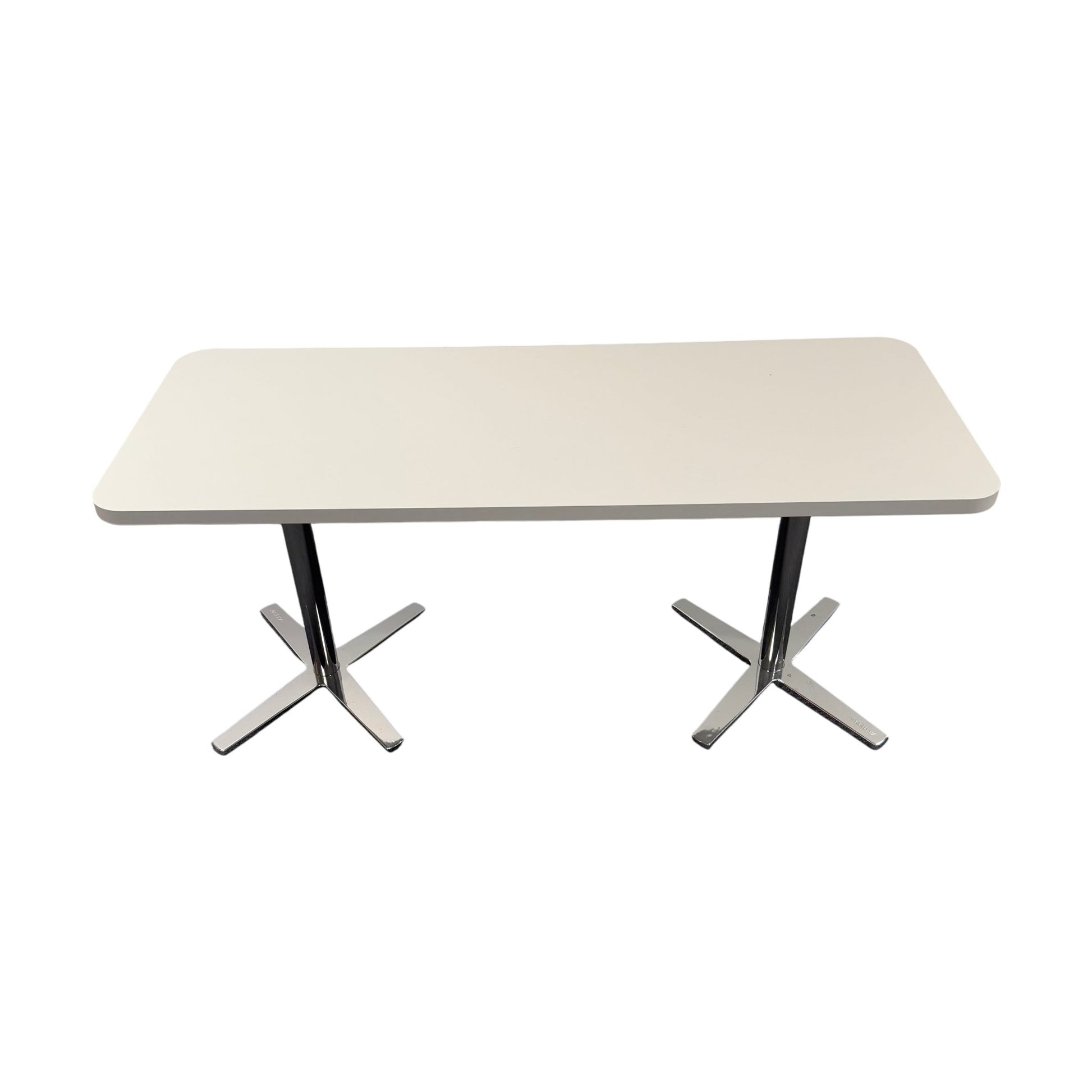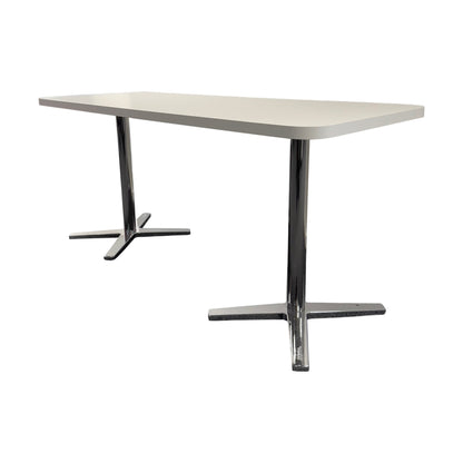 Klassisk møtebord fra Materia med en stilren hvit bordplate og robuste ben i krom. Dette bordet er ideelt for kontormøter, samarbeid eller kreative samlinger.