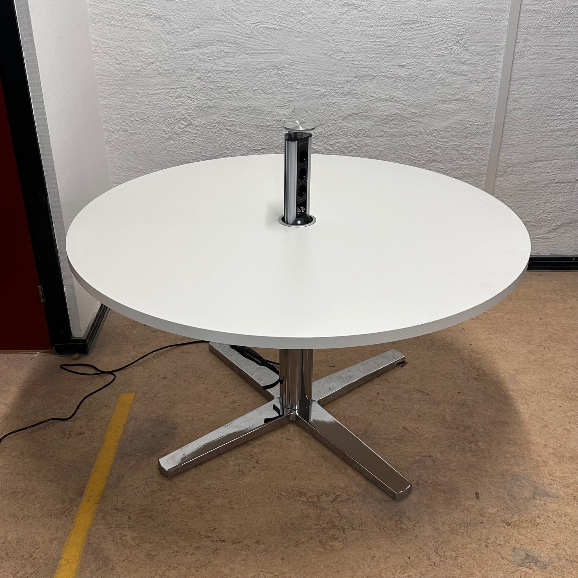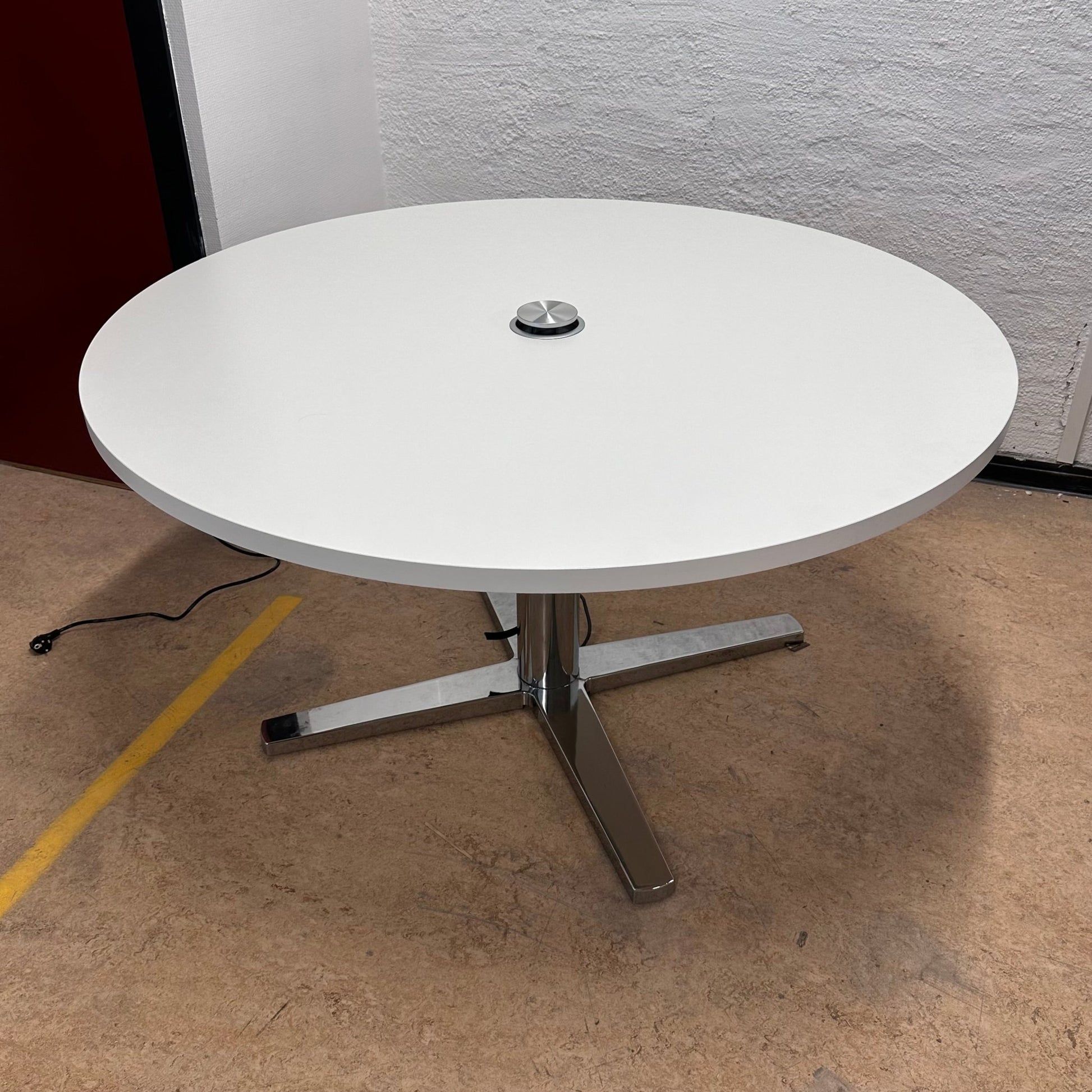 Solid møtebord med en slitesterk hvit bordplate og et robust understell. Bordet gir et stilrent og profesjonelt preg, og egner seg godt i møterom, kontorer og andre arbeidsmiljøer.