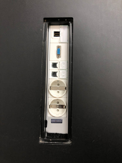 Dette solide møtebordet fra Randers+Radius er perfekt for kontorbruk og møter. Bordet har en stilig bordflate i tre og ben i metall, som gir en moderne og profesjonell look. Den praktiske plasseringen av stikkontakter i midten av bordet gjør det enkelt å koble opp elektronisk utstyr og holde arbeidsområdet ryddig.