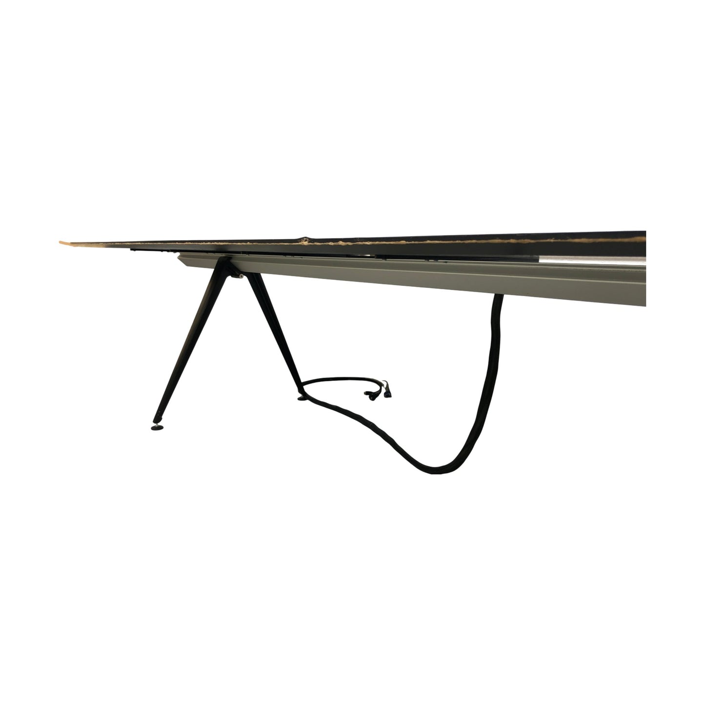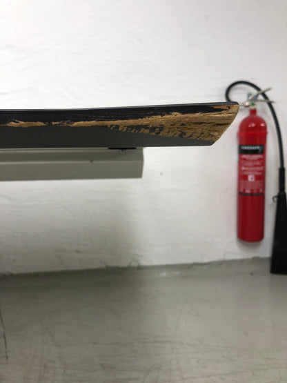 Bordet har synlige bruksmerker på bordflaten, samt et par bulker langs kanten, som dokumentert på bildene. Til tross for disse bruksmerkene er bordet funksjonelt og vil fungere godt for både møter og dagligdags kontorbruk.