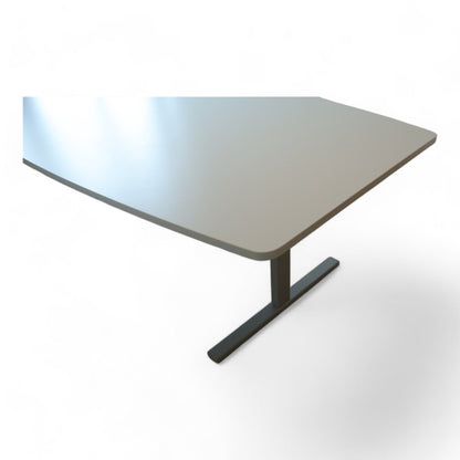 Elegant møtebord med båtformet bordplate, som gir et stilig og profesjonelt uttrykk. Bordet har god plass til flere personer, ideelt for møterom eller større arbeidsområder.