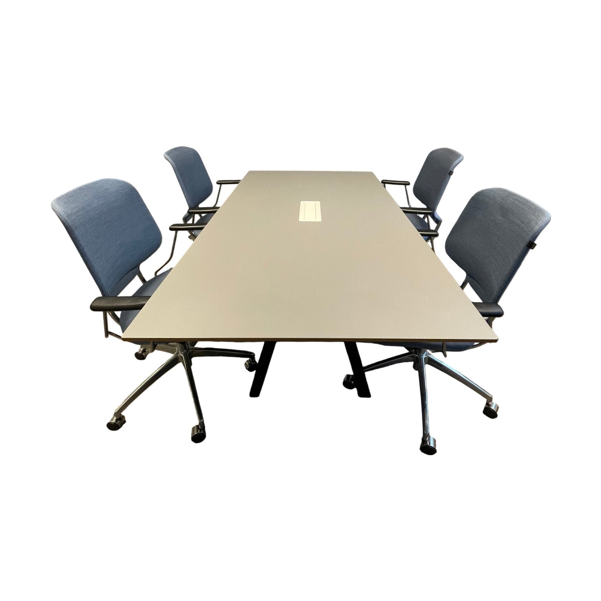 Solid møtebord med en slitesterk grå plate og et robust understell i sort stål. Bordet gir et stilrent og profesjonelt preg, og egner seg godt i møterom, kontorer og andre arbeidsmiljøer.