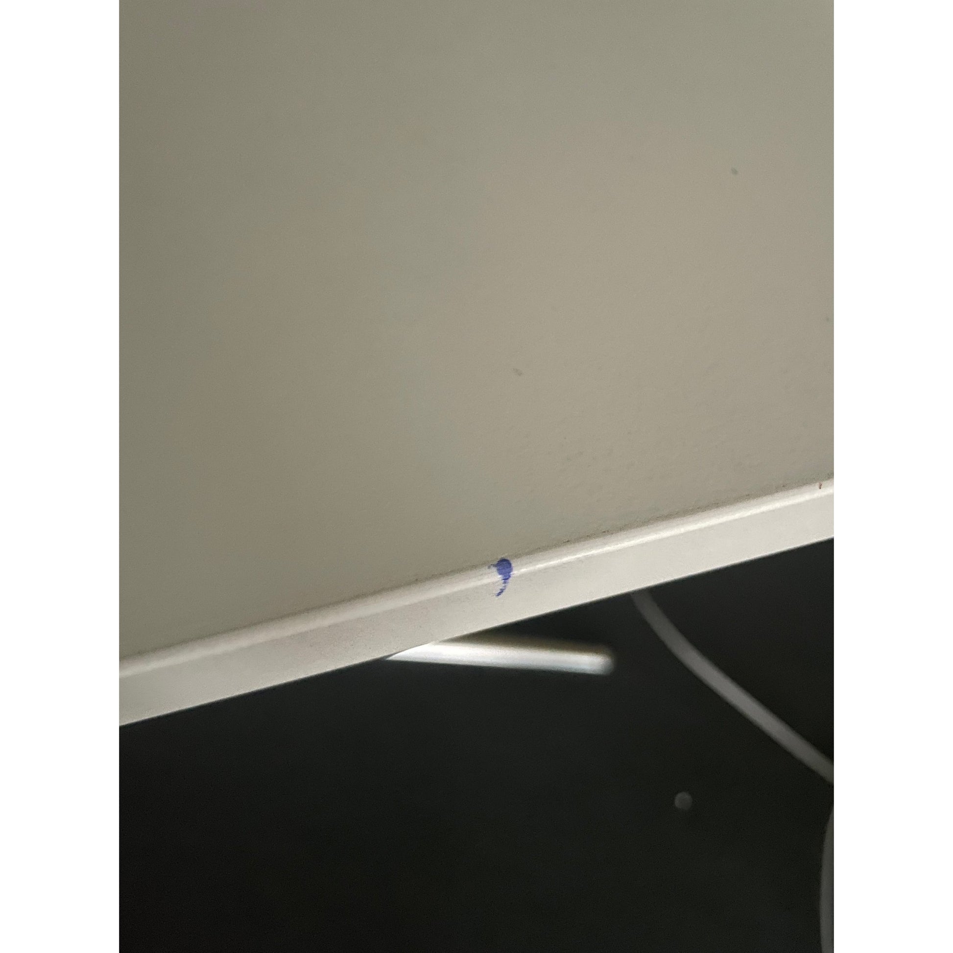 Bordet er i god tilstand, med noen synlige bruksmerker på bordflaten. Helhetsinntrykket er likevel godt, og bordet er fullt funksjonelt til møte- og kontorbruk.