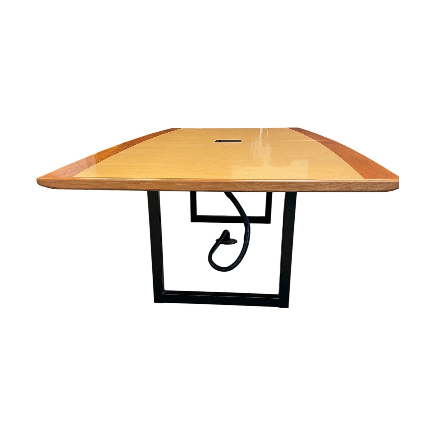 Solid møtebord med en slitesterk lakkert tre bordplate som gir et stilrent og profesjonelt preg. Bordet har en elegant kontrastlist og egner seg godt i møterom, kontorer og andre arbeidsmiljøer.