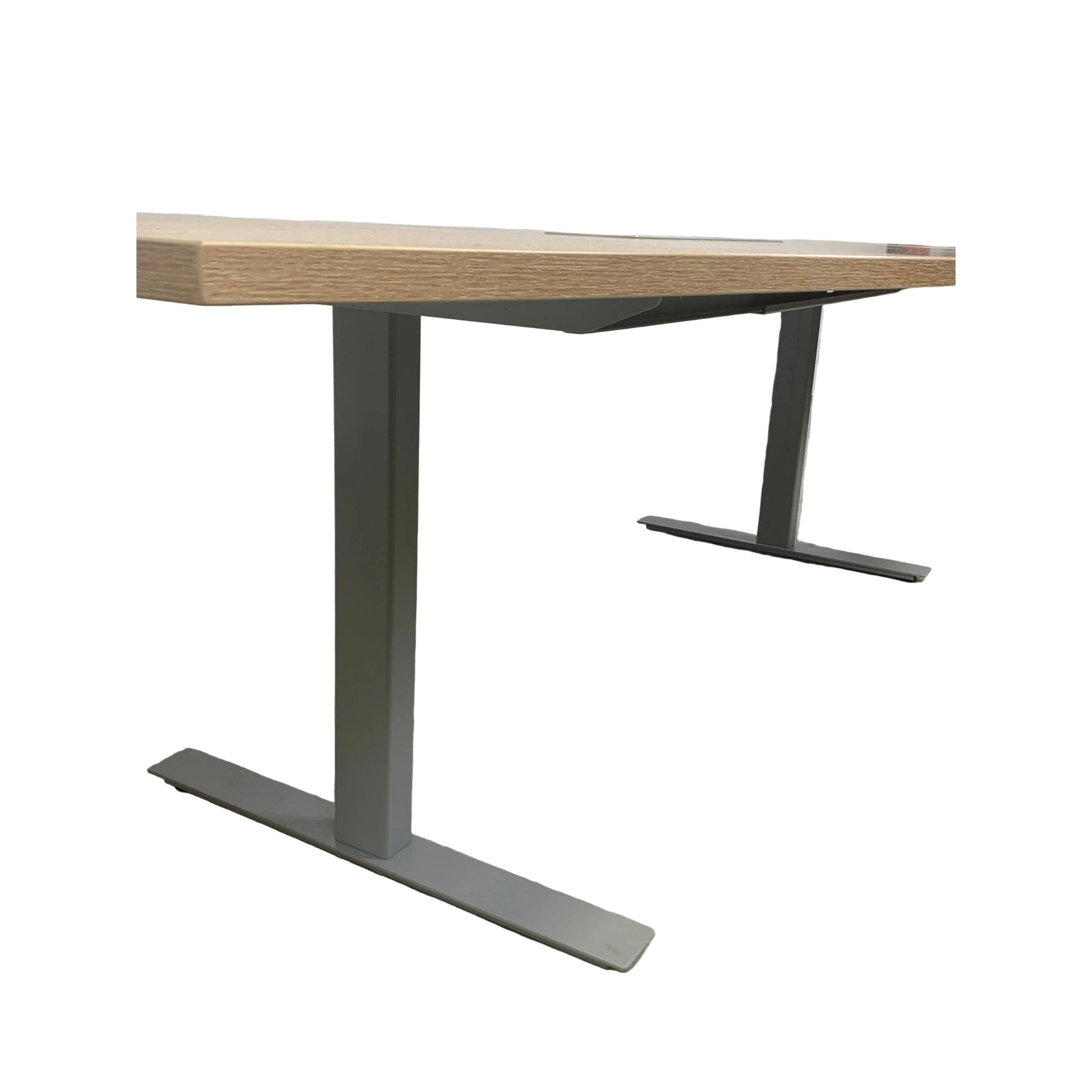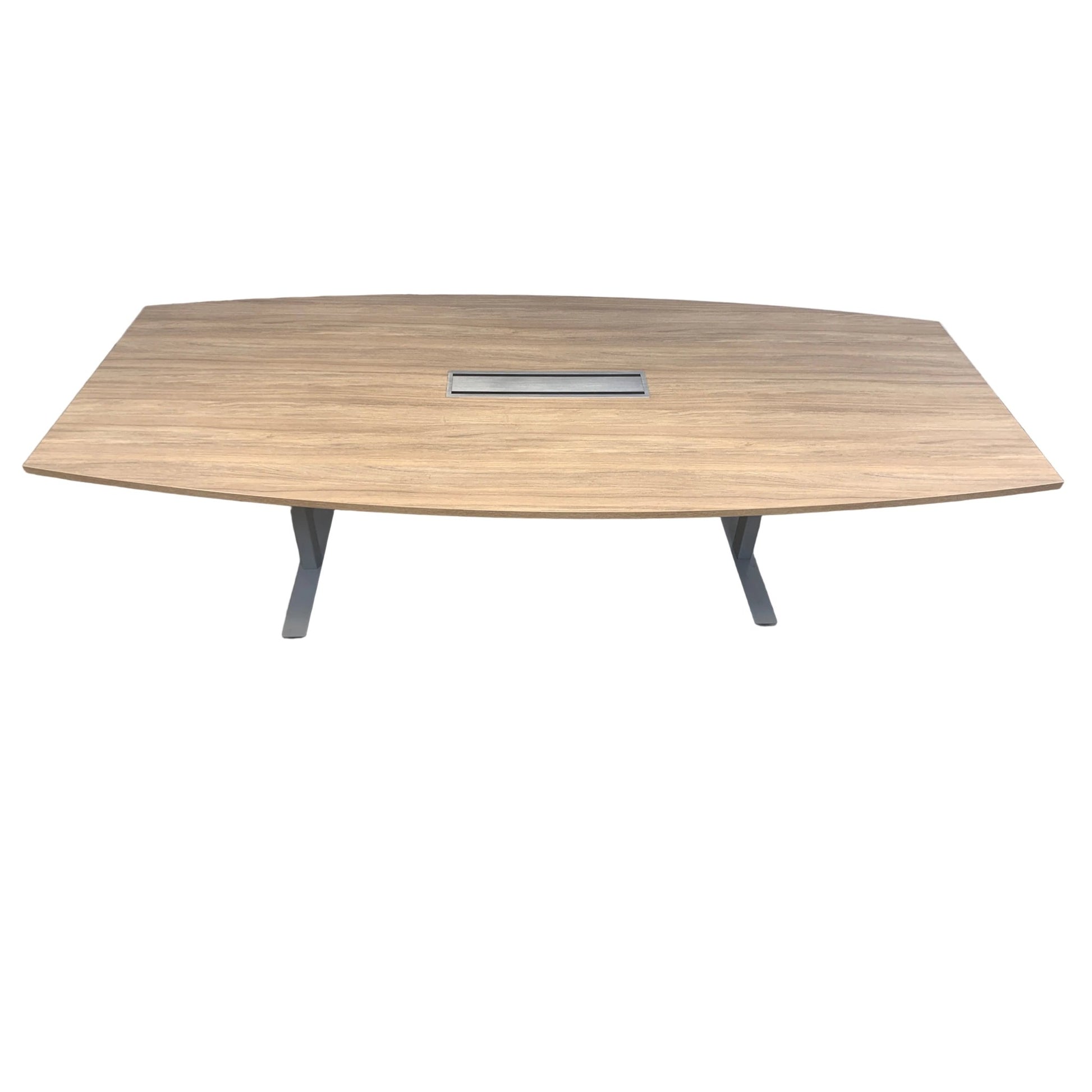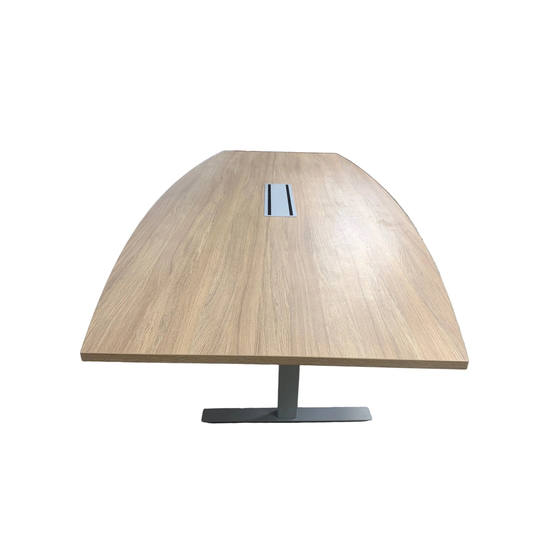 Solid møtebord med en slitesterk trefarget lys eik bordplate og et understell i grå metall. Bordet gir et stilrent og moderne preg, og egner seg godt i møterom, kontorer og andre arbeidsmiljøer.