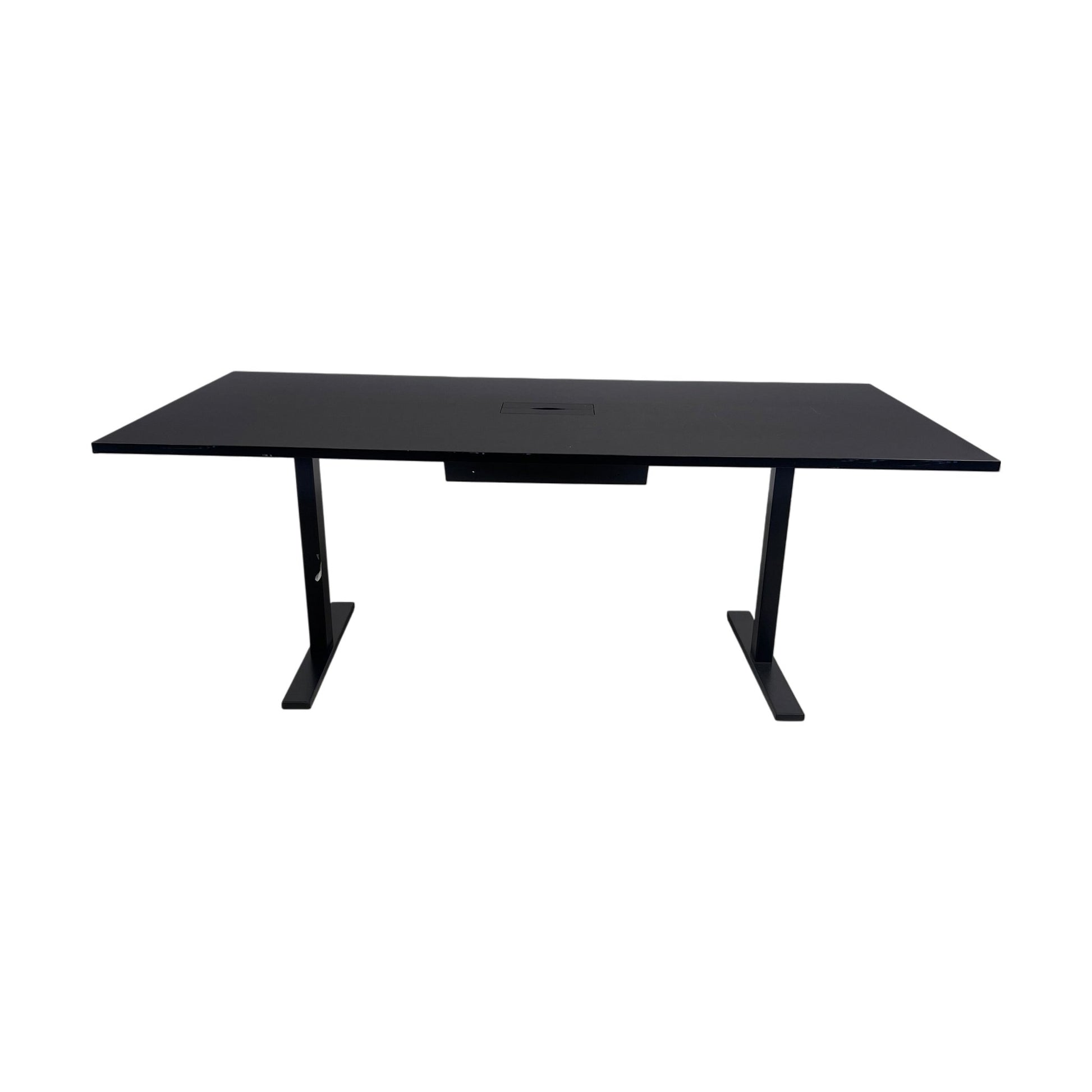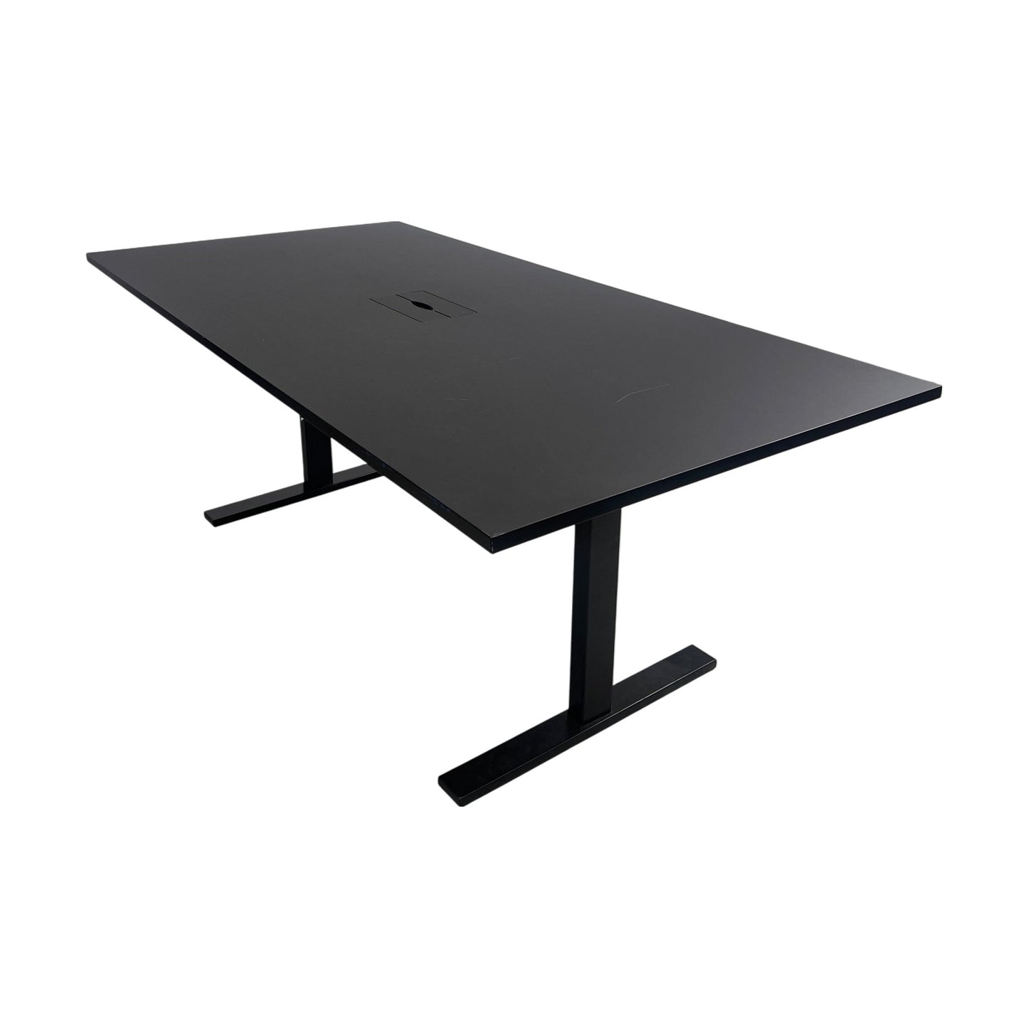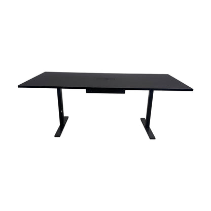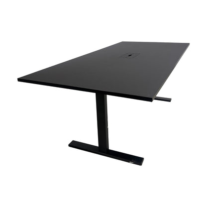 Moderne møtebord med en elegant svart finish og kabelluke for enkel tilgang til strømkilder. Bordplaten er i et stilrent design, perfekt for kontormiljøet. Den solide metallrammen gir god stabilitet, og passer utmerket for møterom, kontorer og arbeidsplasser.