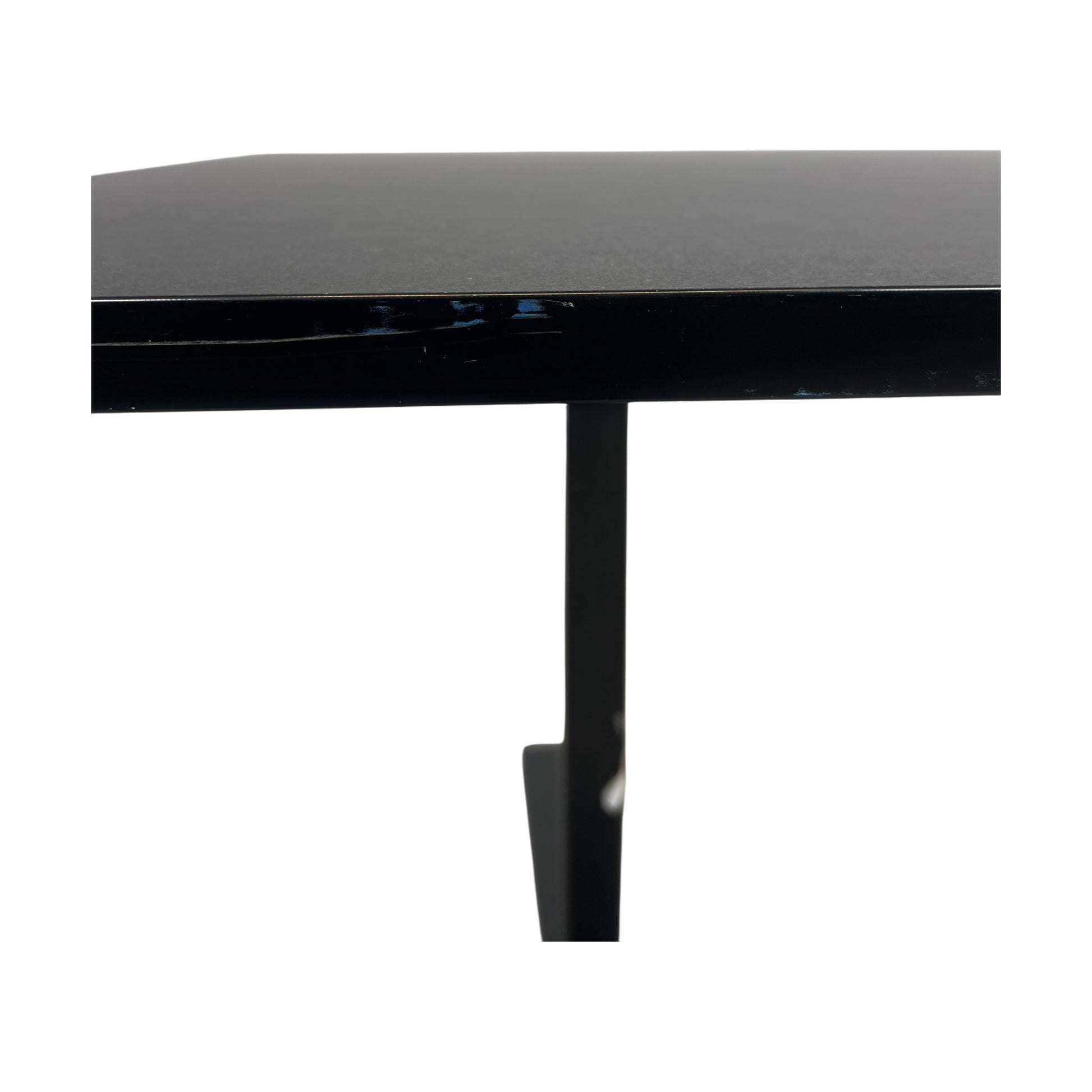 Bordet er godt brukt, men fungerer utmerket til møter og kontorbruk, med en stilren estetikk som hever rommet.
