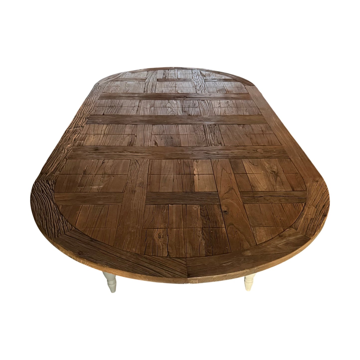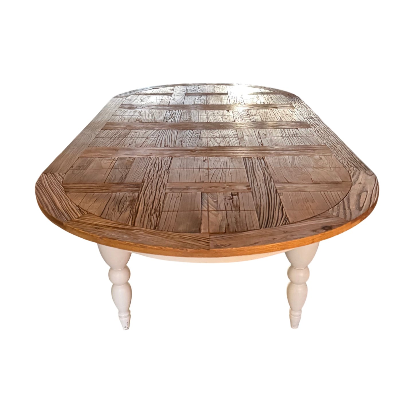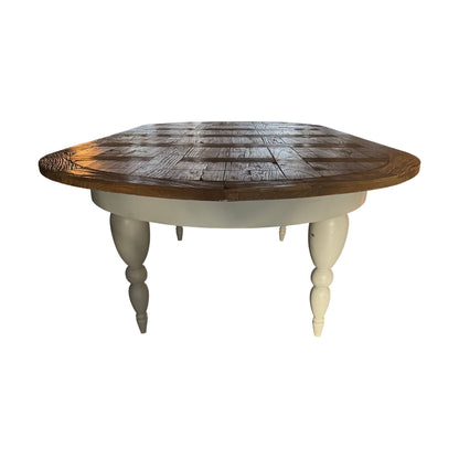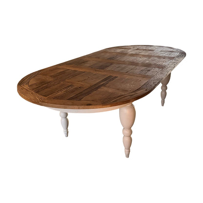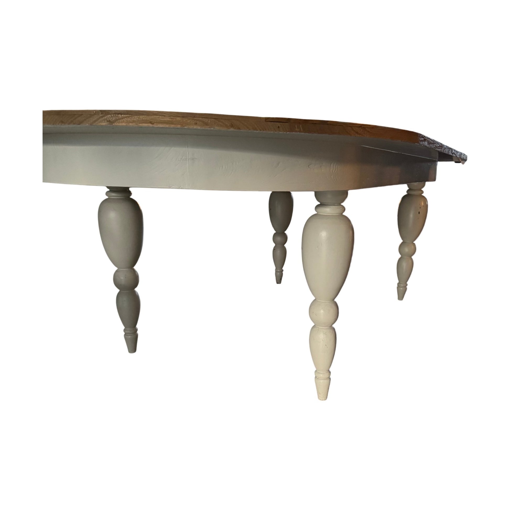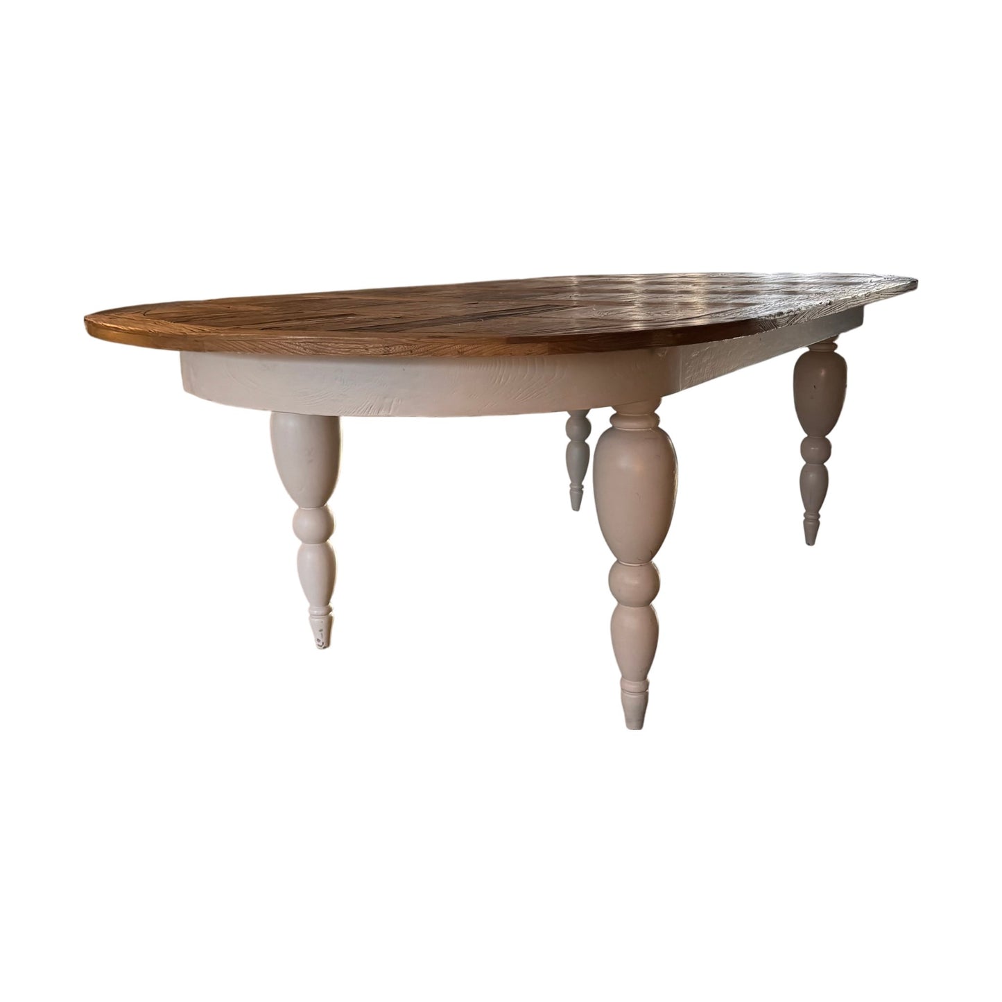Romslig, retro spisebord i massivt tre med hvite ben, 260cm