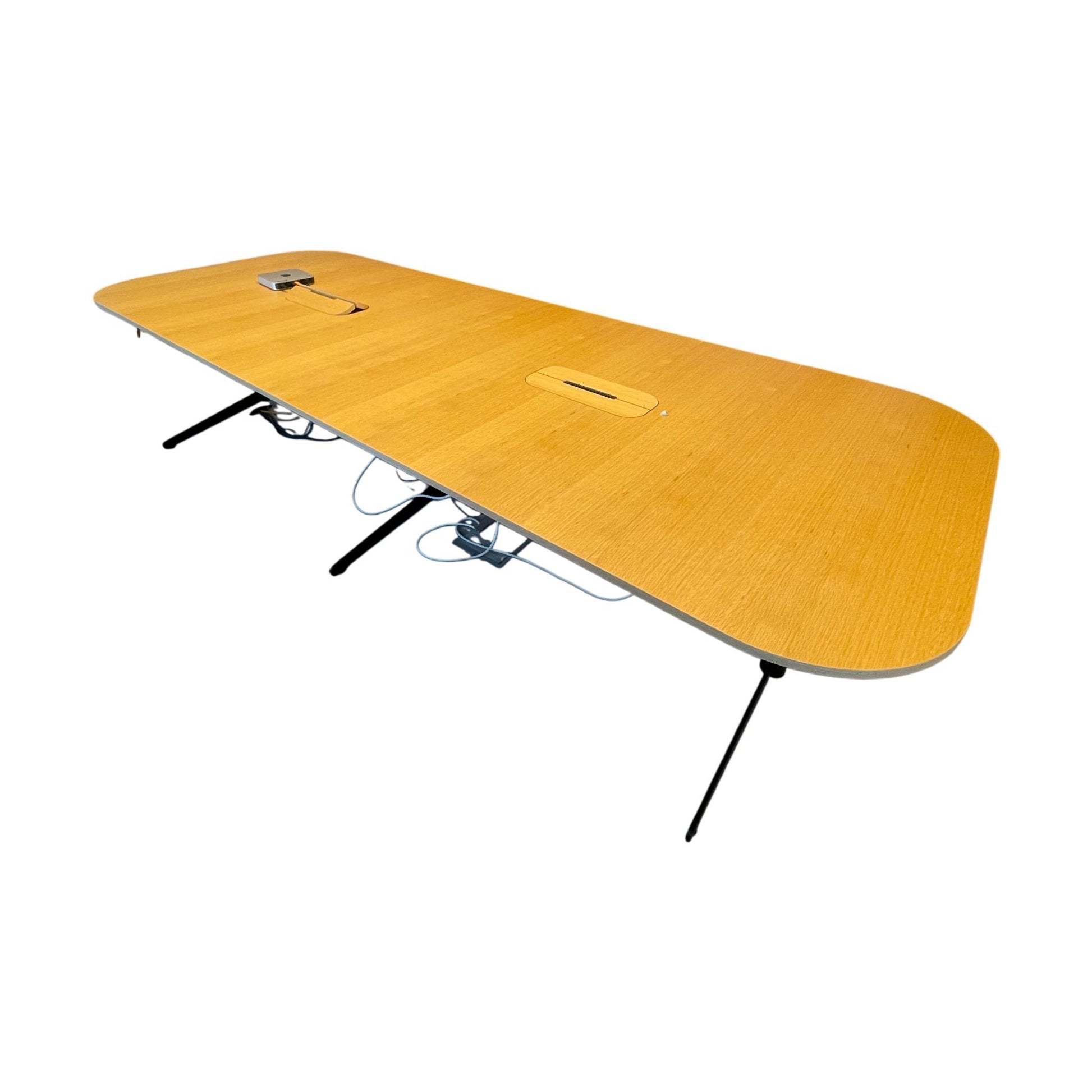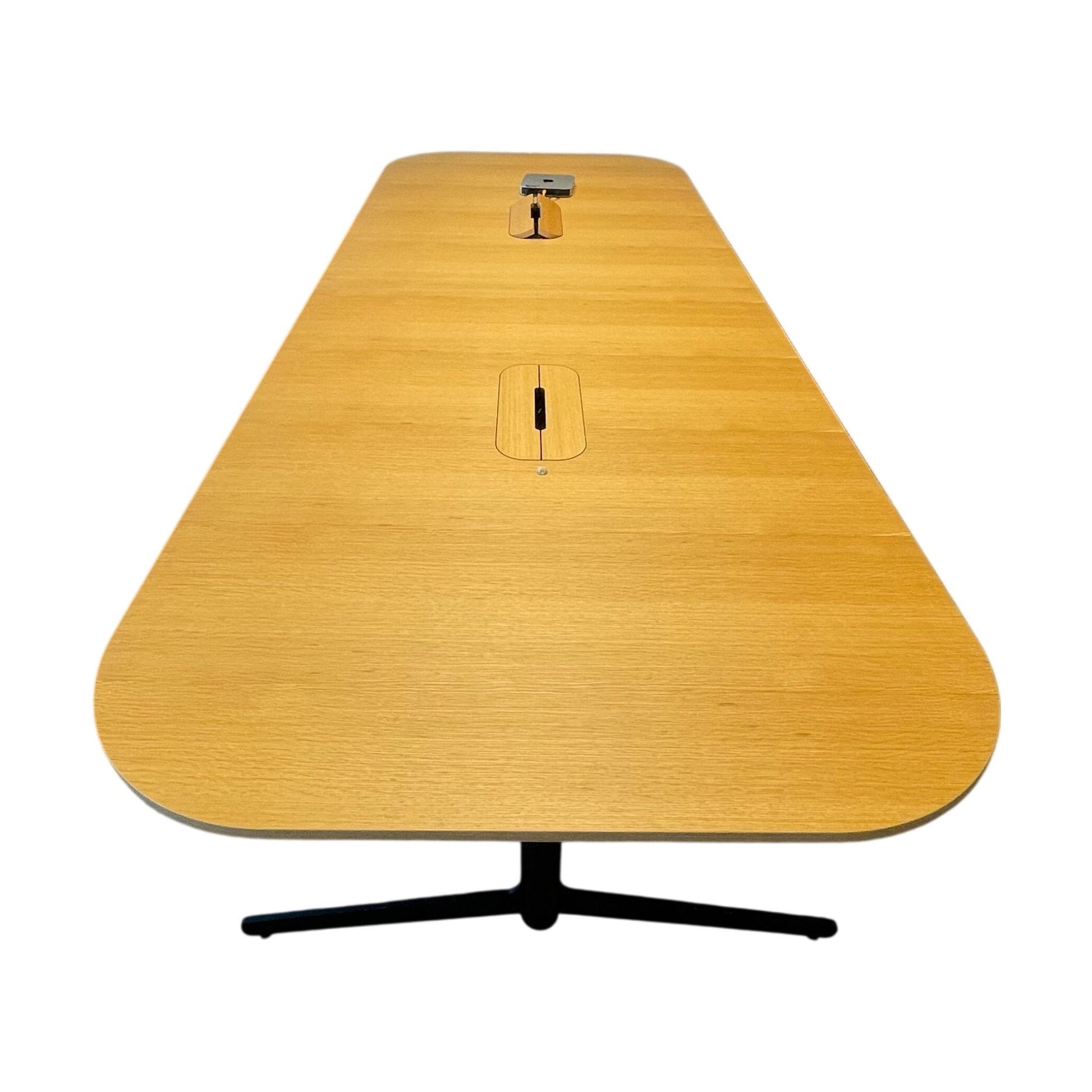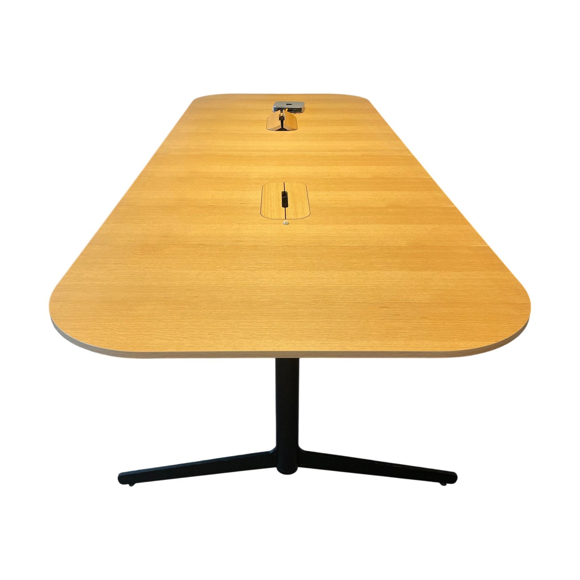 Solid møtebord med en slitesterk trefarget bordplate som gir et moderne og innbydende preg. Bordet egner seg godt i møterom, kontorer og andre arbeidsmiljøer.Den romslige bordflaten på 320x125 cm gir god plass til flere deltakere, og legger til rette for effektive møter.