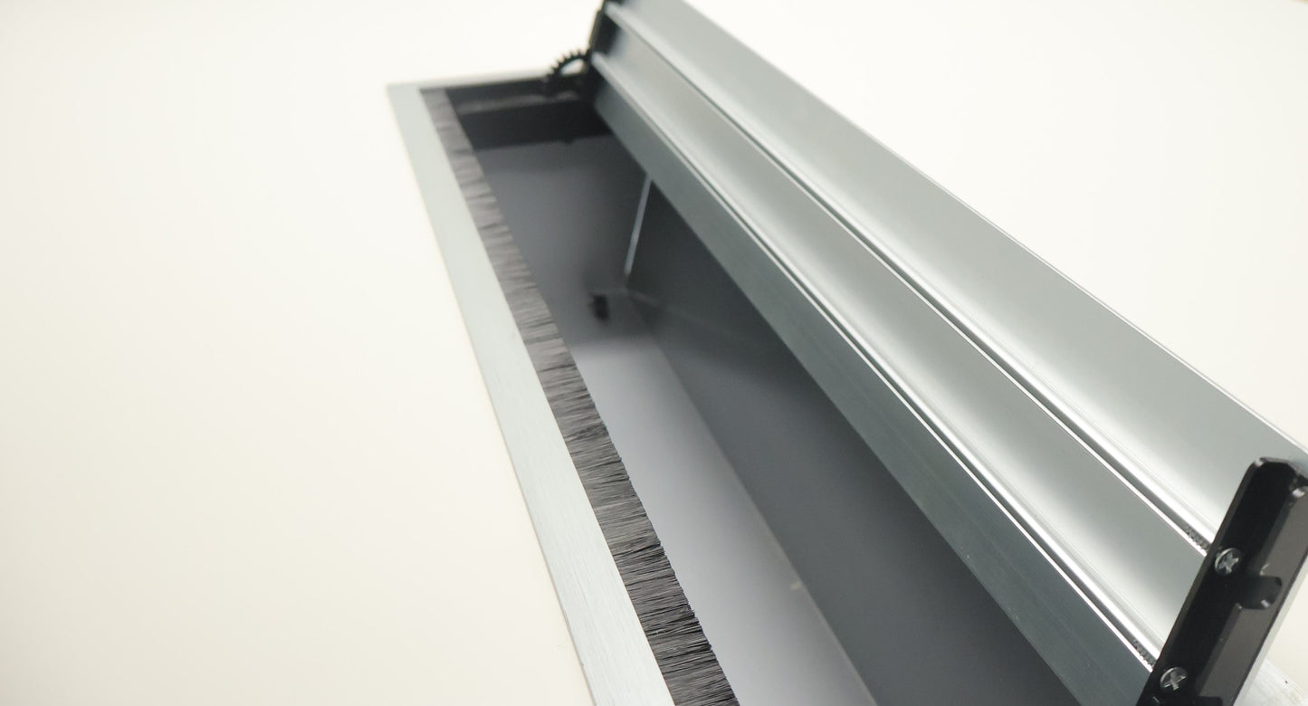 Kabellukens mekanisme er litt hardere å åpne enn normalt, men fungerer fint. Det er et bruksmerke i form av et hakk i bordplaten. Dette påvirker ikke funksjonalitet. Helhetlig i god stand.