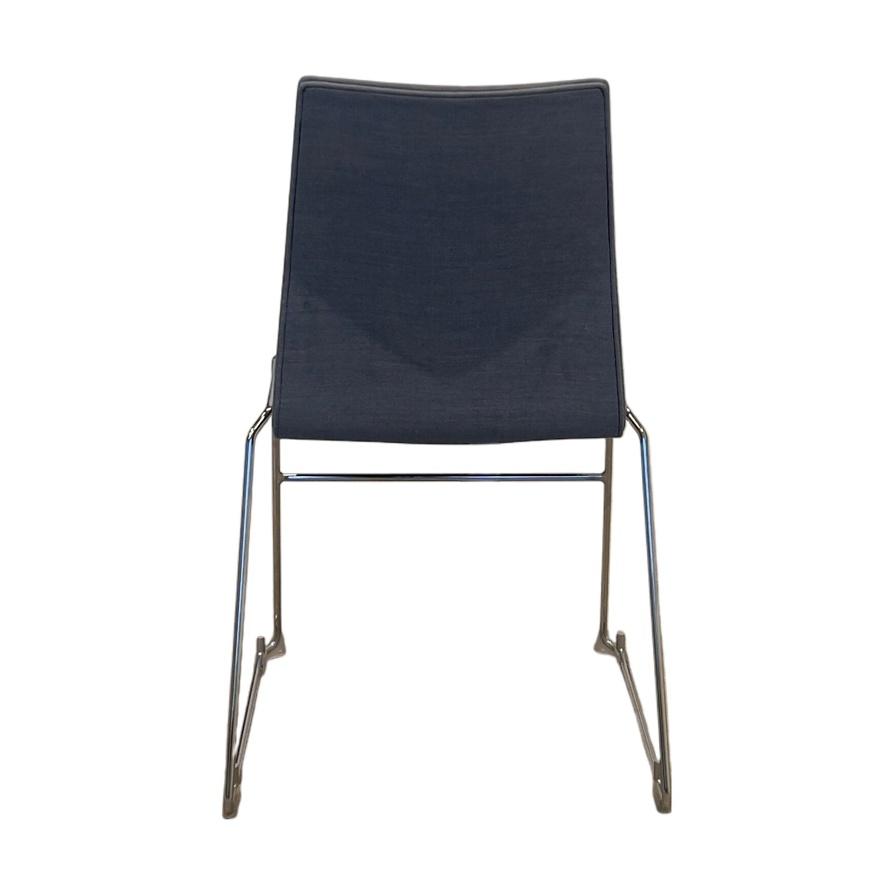Møteromsstol fra Ocee & Four design med et moderne og stilrent design. Stolen har et polstret sete trukket i slitesterkt blått stoff, noe som gir et friskt og profesjonelt preg til møterommet. Den enkle utformingen gjør den velegnet til både møter, kontorer og konferanser.