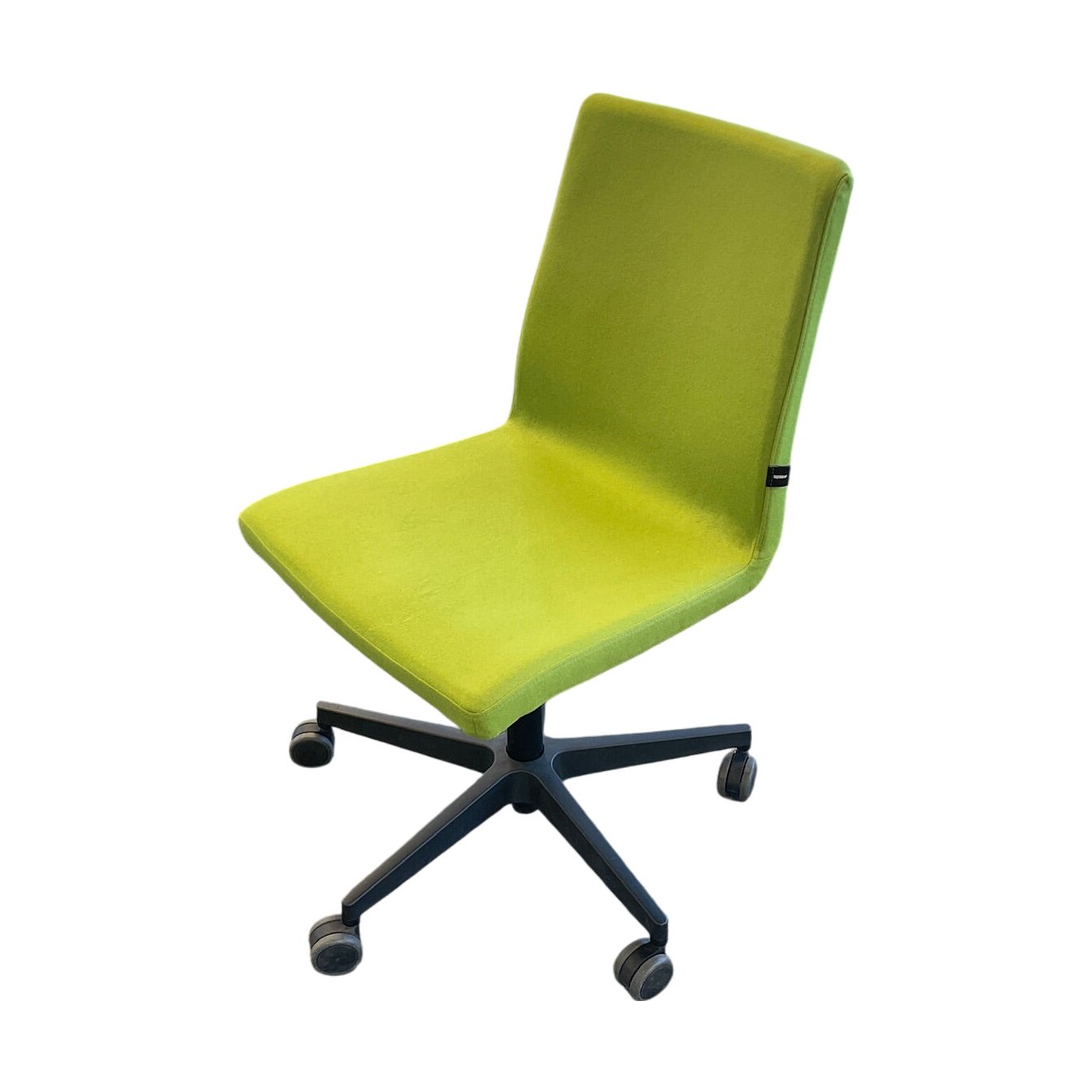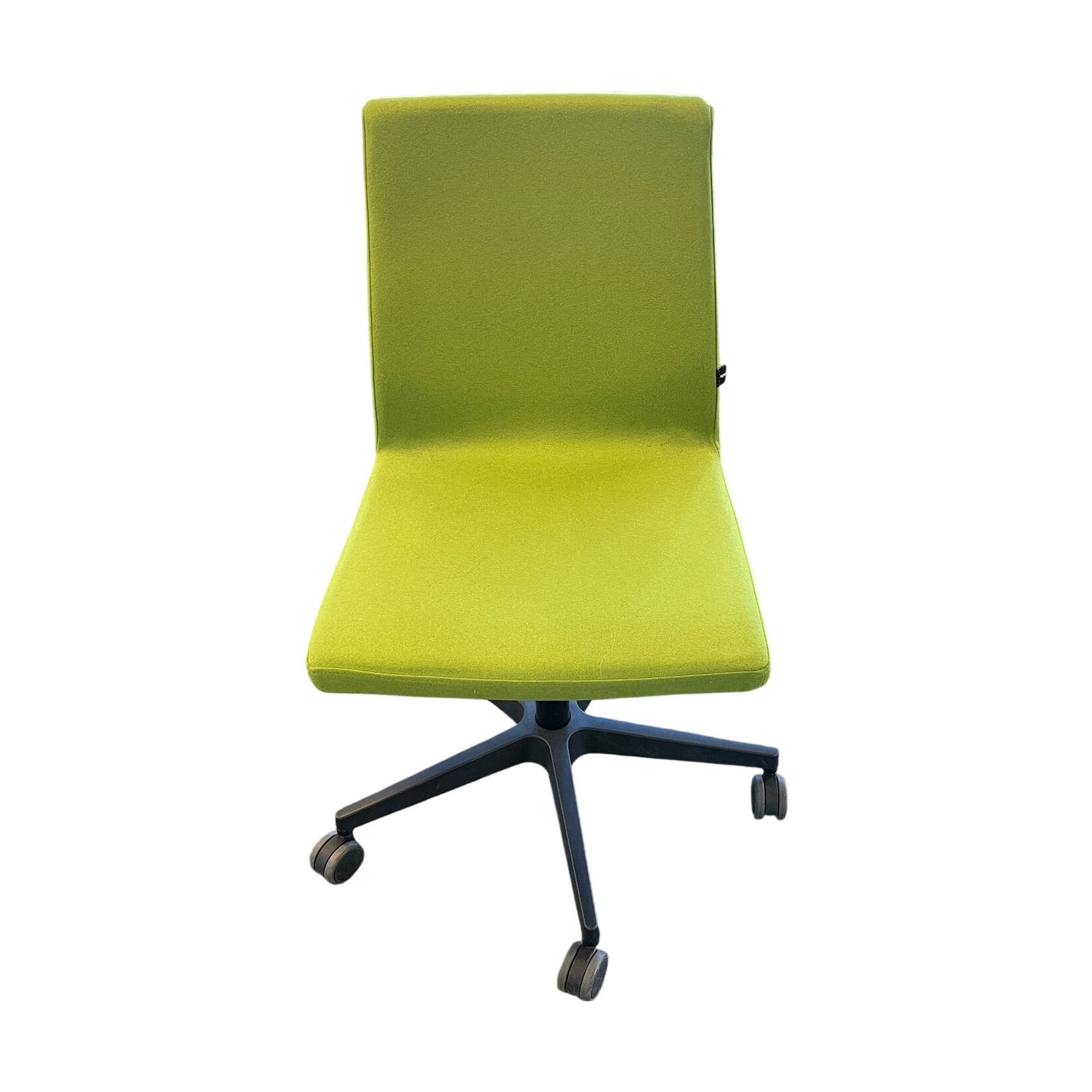 Moderne møteromsstol fra Topstar med et stilrent og funksjonelt design. Stolen har et polstret sete og rygg trukket i lys grønn ull, som gir en frisk og energisk atmosfære til møterommet. Den minimalistiske utformingen, kombinert med en solid svart base med hjul, gjør den lett å flytte og tilpasse ulike romoppsett.