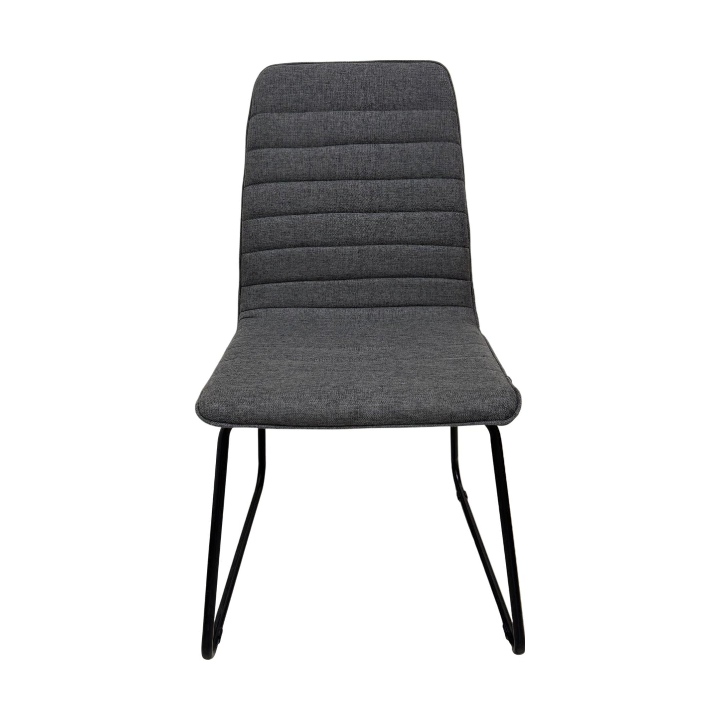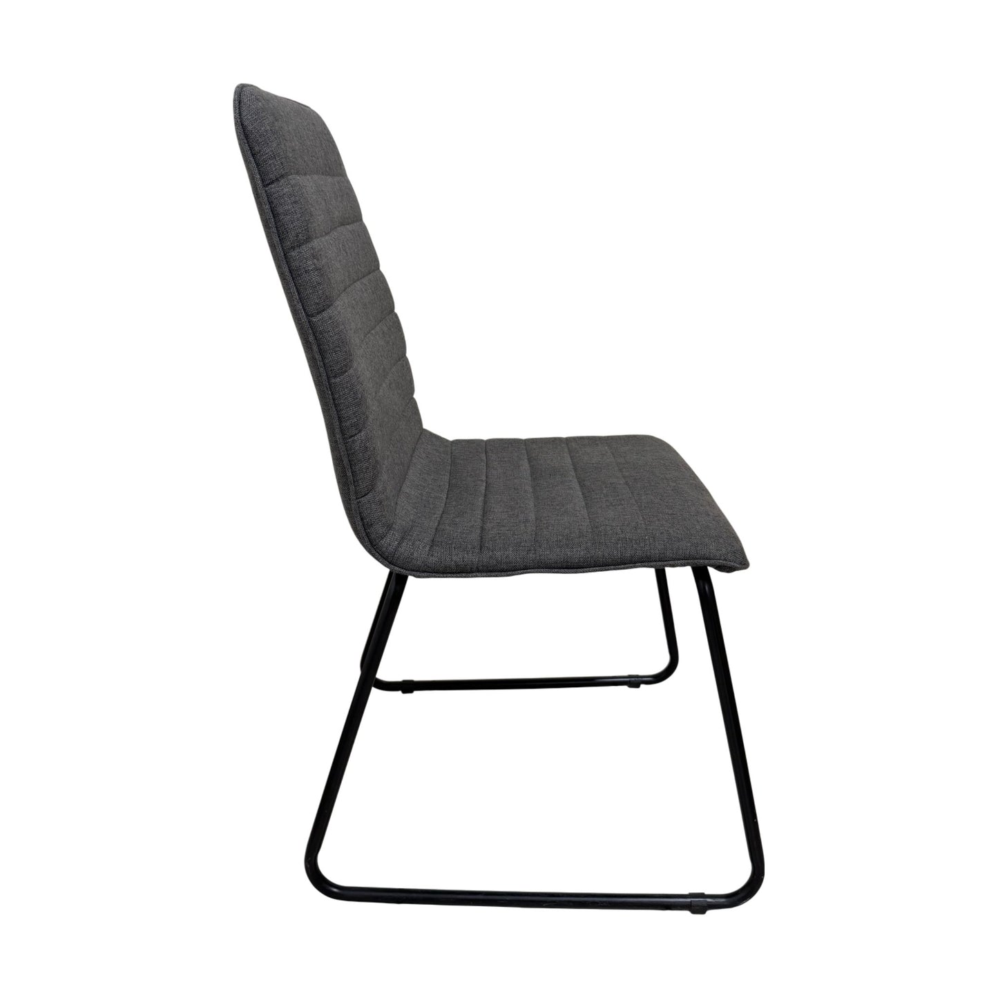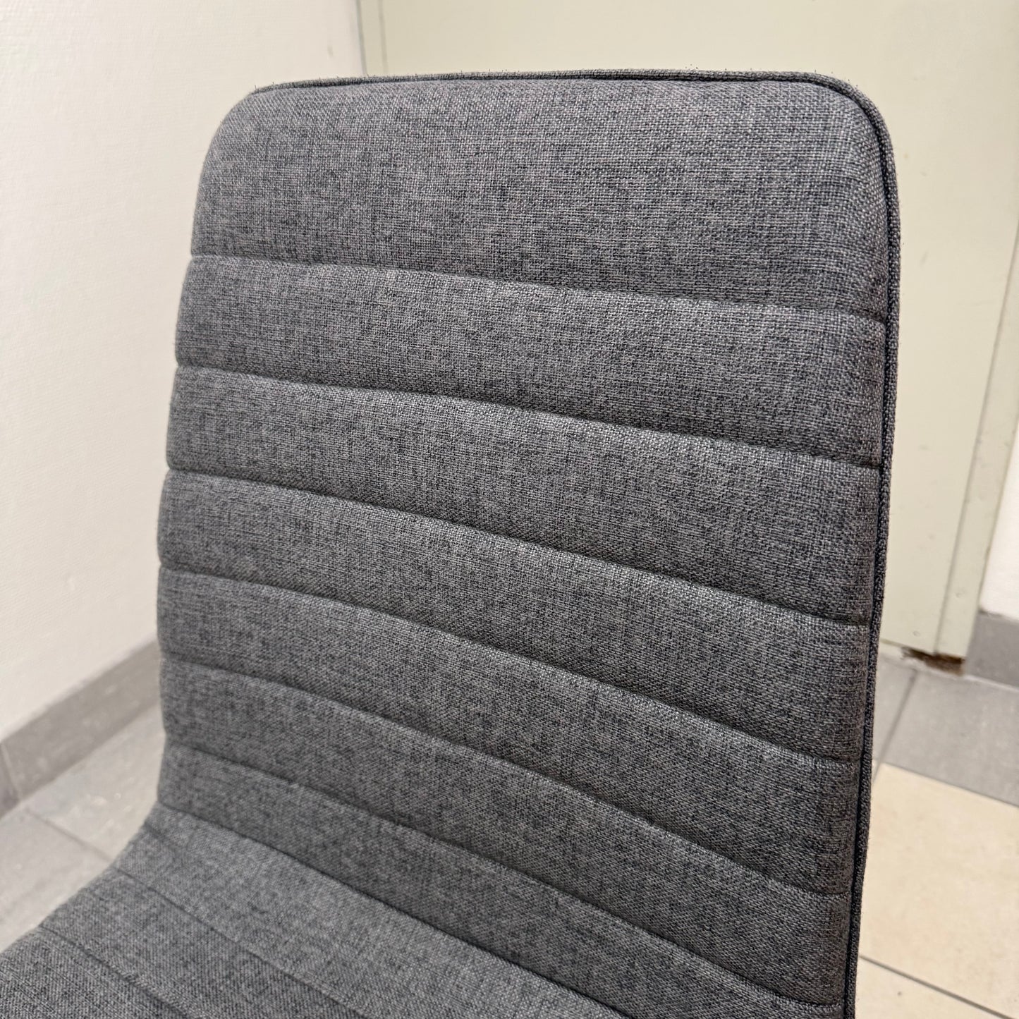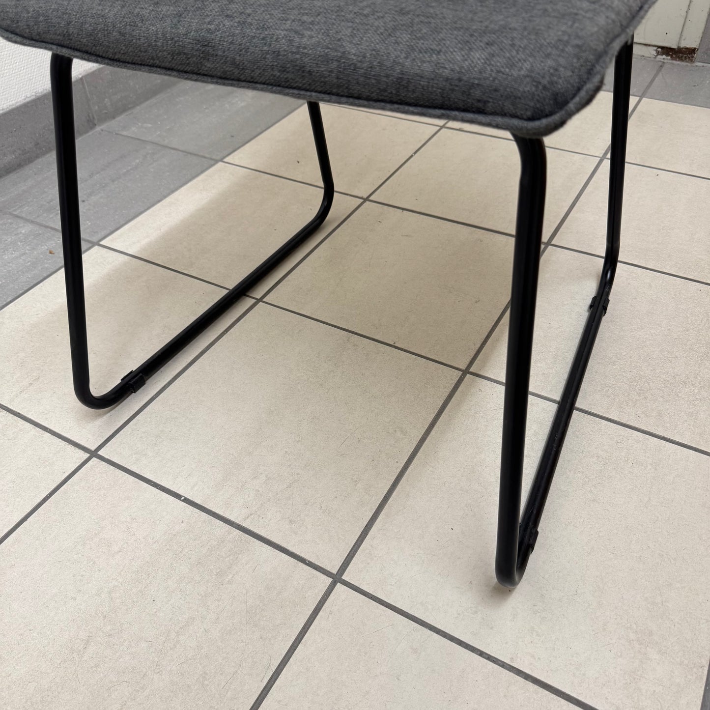Moderne møteromsstol med et stilrent design, trukket i grått stoff som gir et profesjonelt og tidløst utseende. Stolen har en polstret sitteflate med ribbet tekstur, noe som bidrar til et behagelig sittested i møterom og kontormiljøer. Den lette, men solide ramme i metall gir stabilitet, mens stolens stablebare design gjør den enkel å oppbevare og flytte.