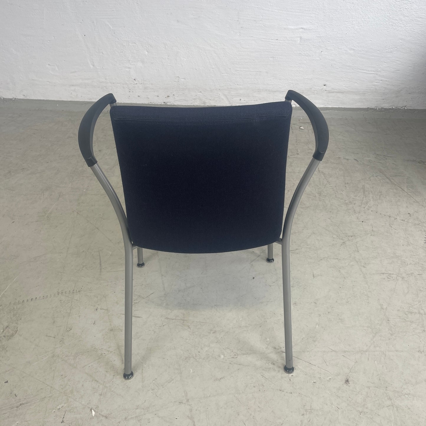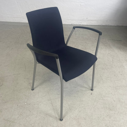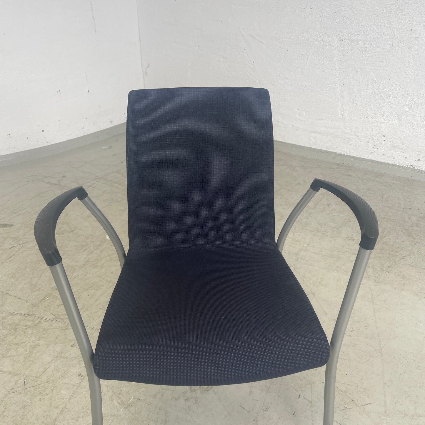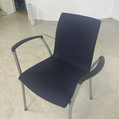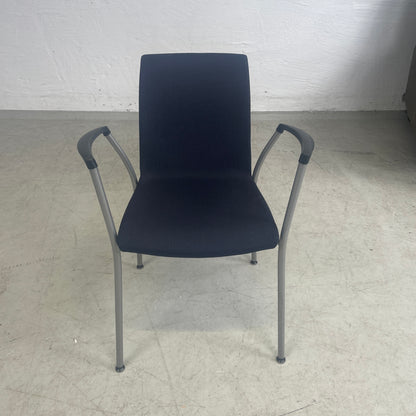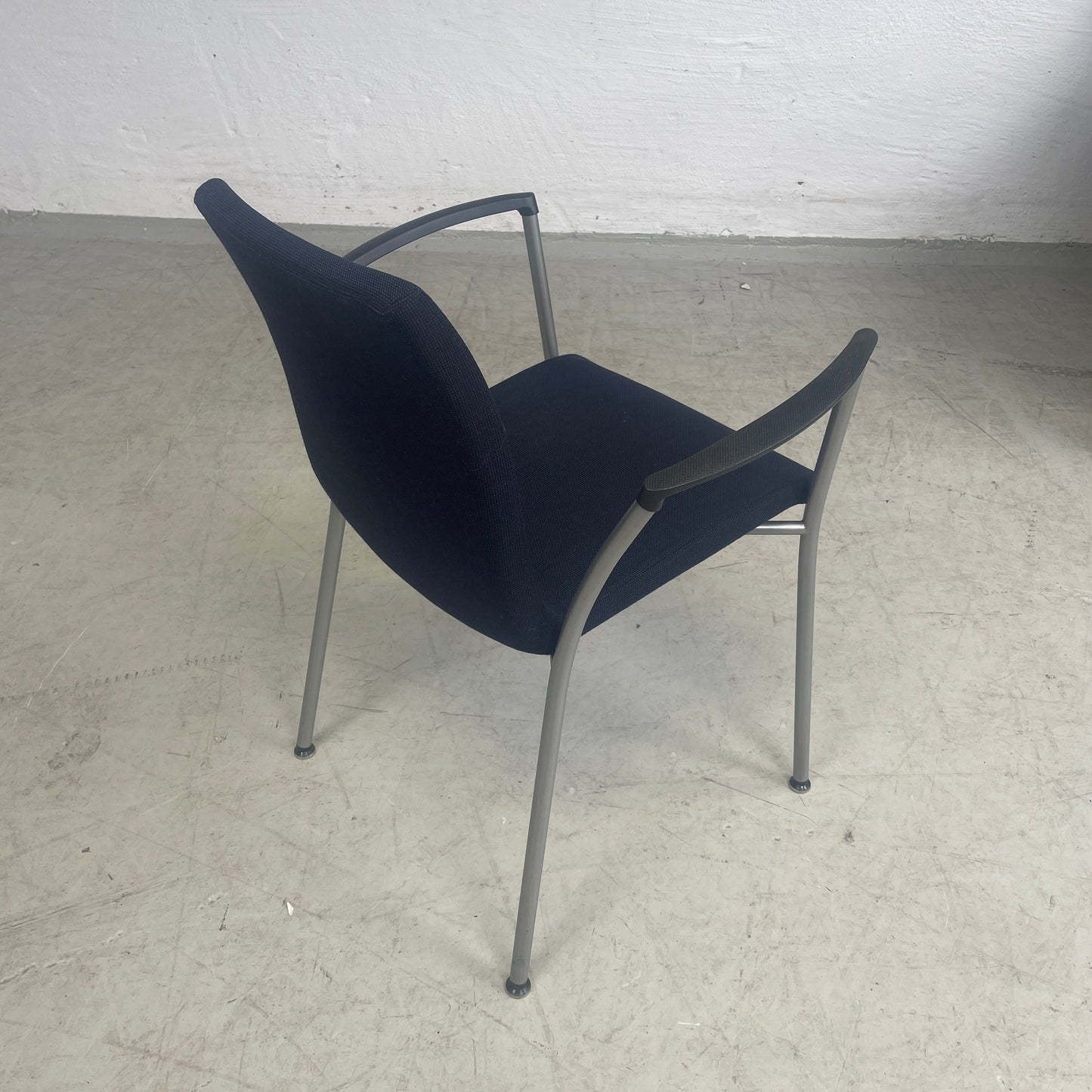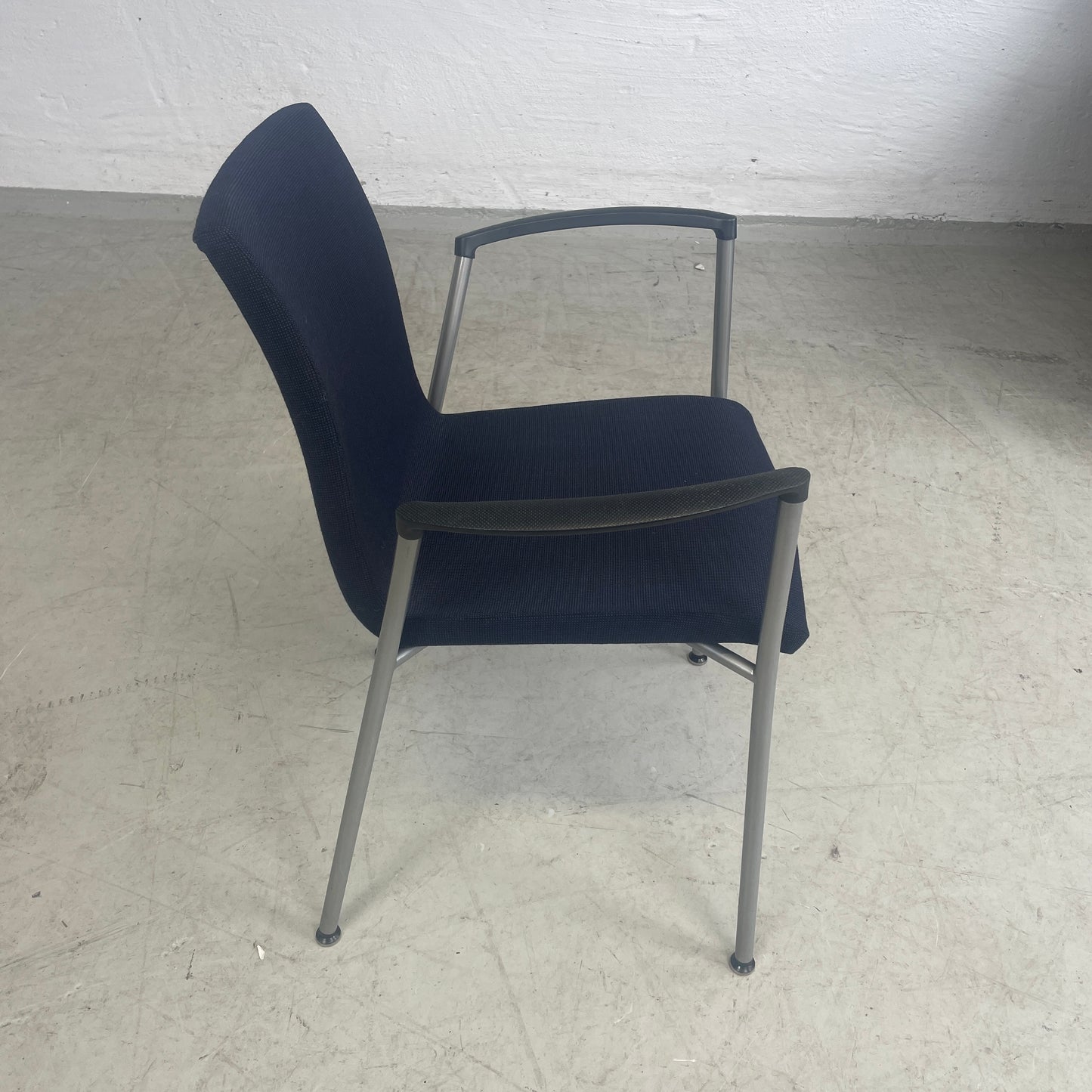 Stolen har noe slitasje på armlenene, men dette påvirker ikke bruken. Ellers fremstår den som et praktisk valg for møterom eller konferanser.
