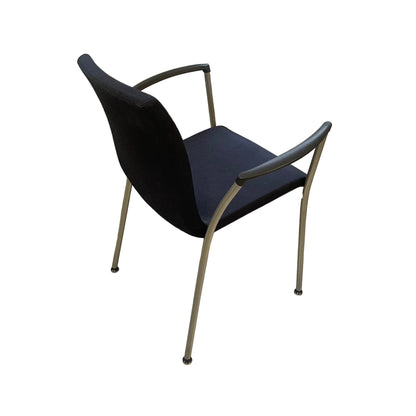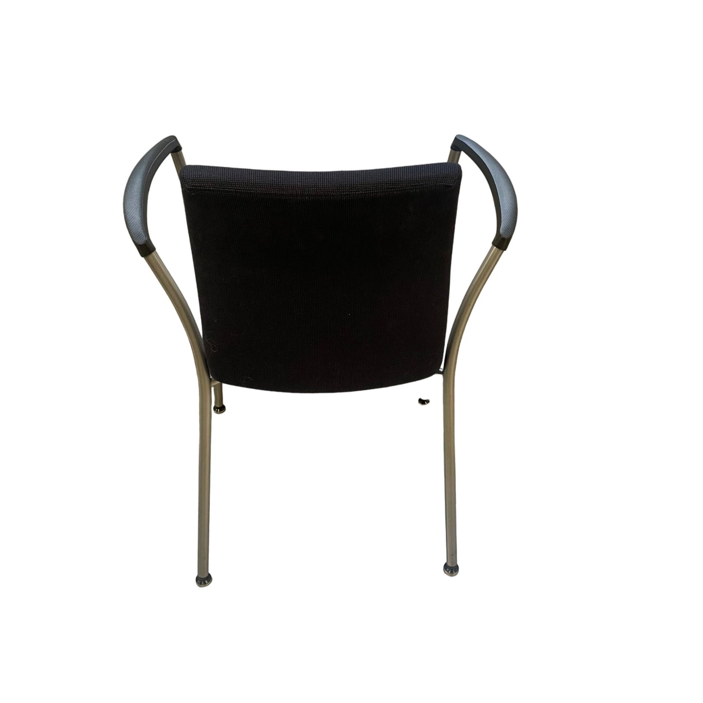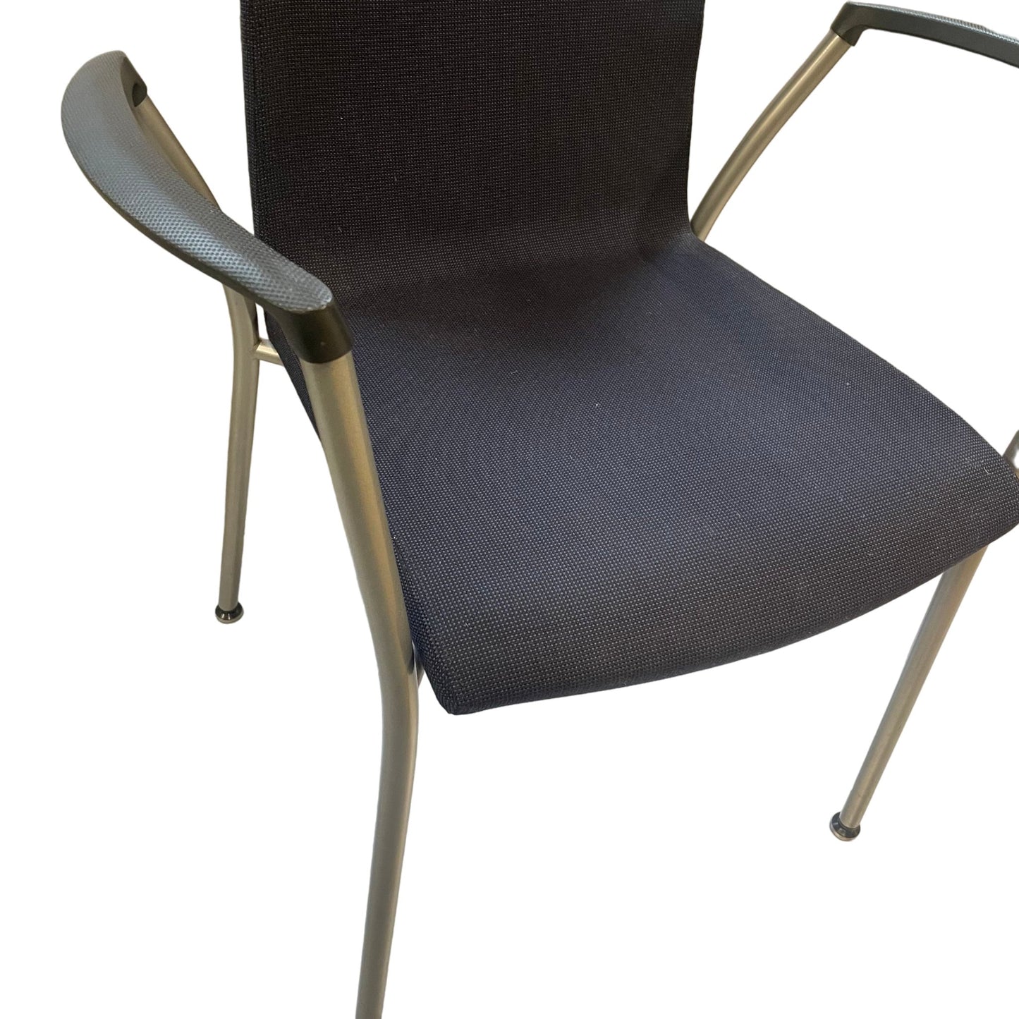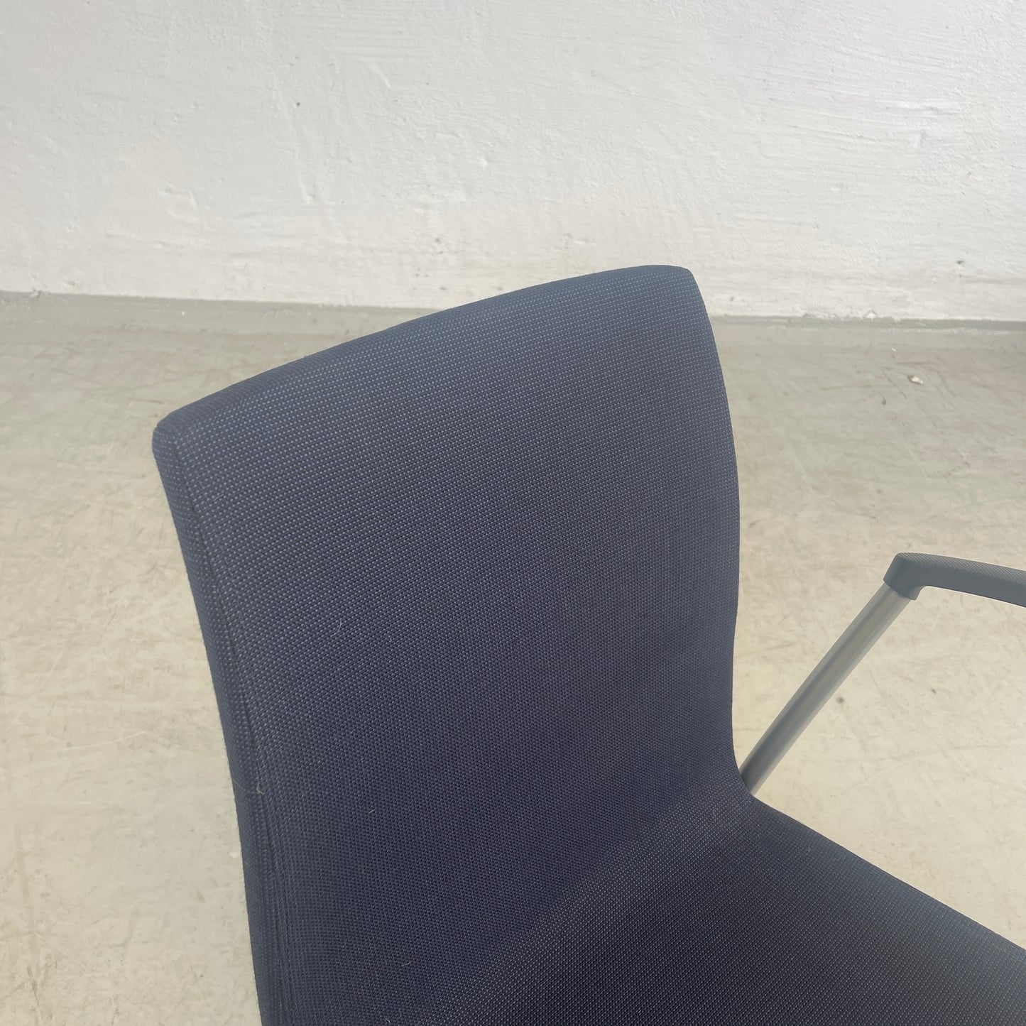Stolen har noe slitasje på armlenene, men dette påvirker ikke bruken. Ellers fremstår den som et praktisk valg for møterom eller konferanser.