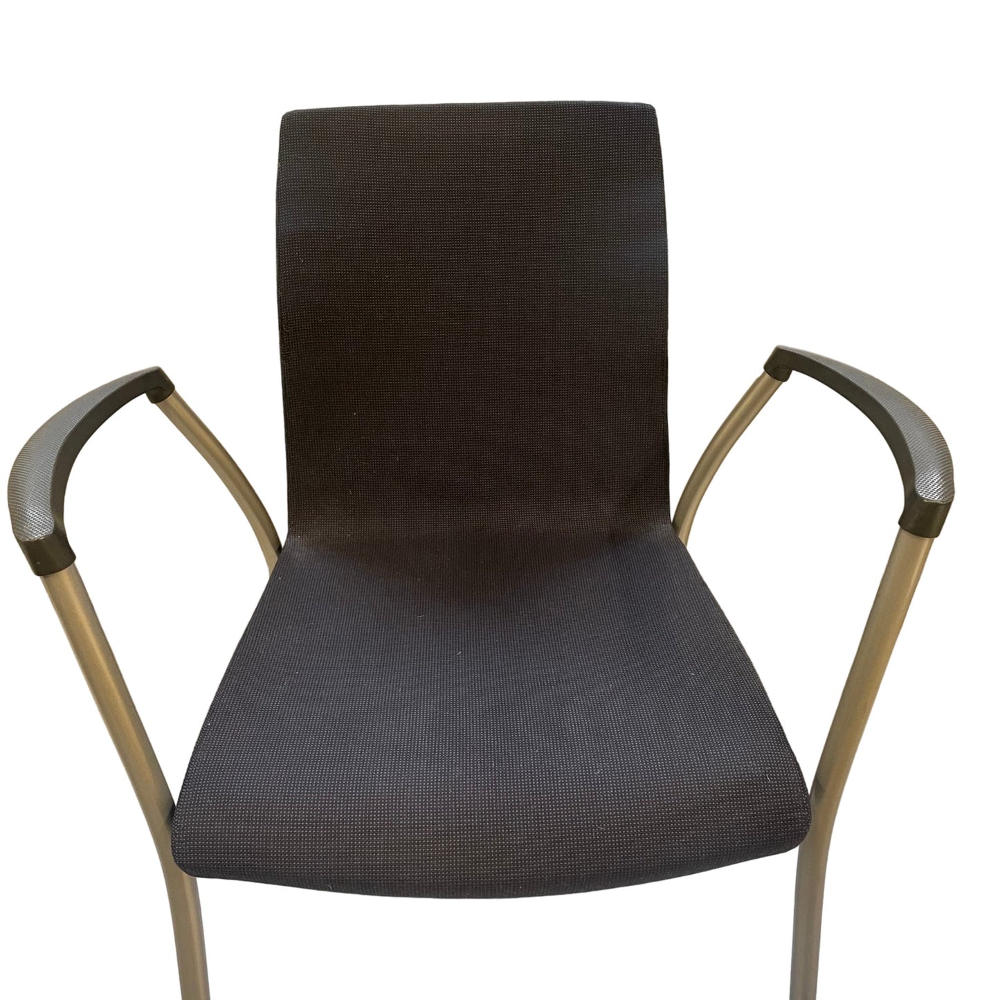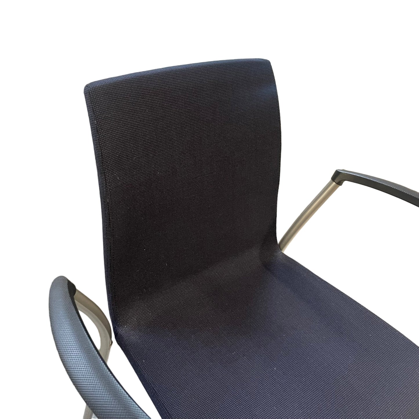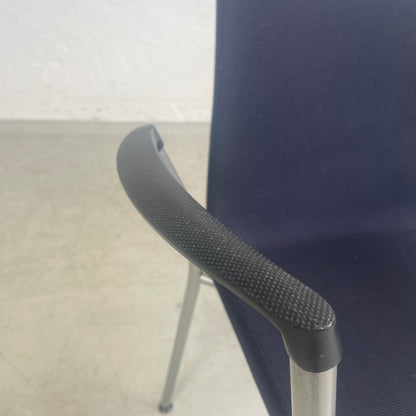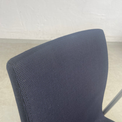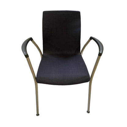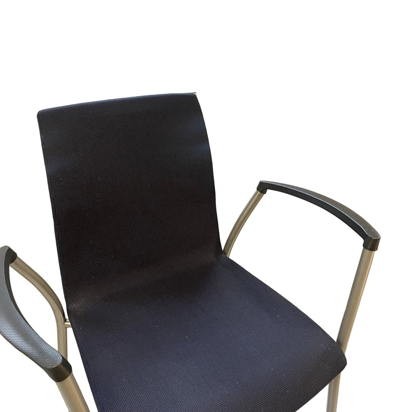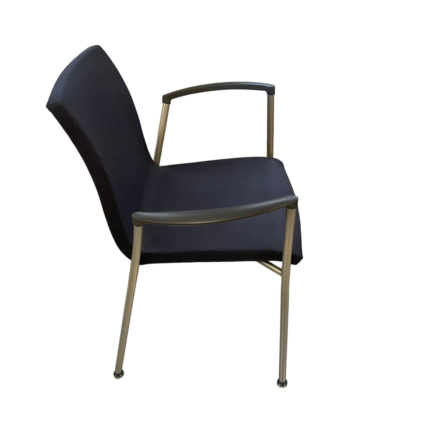 Stolen har noe slitasje på armlenene, men dette påvirker ikke bruken. Ellers fremstår den som et praktisk valg for møterom eller konferanser.