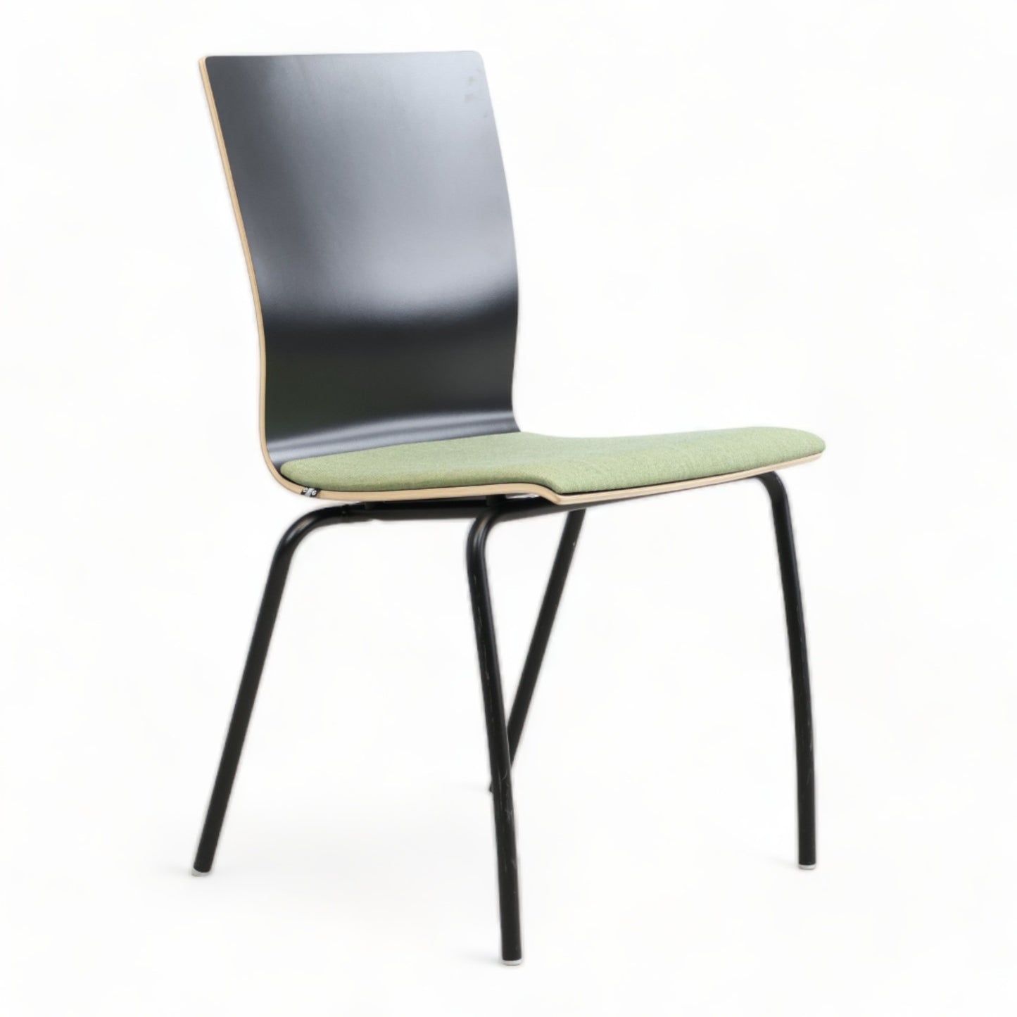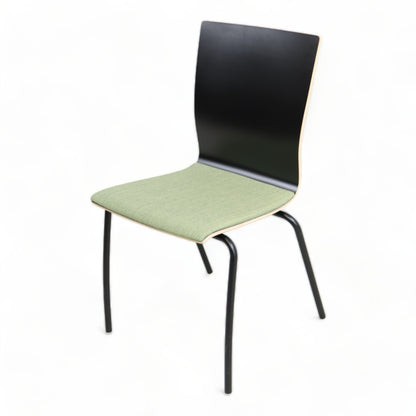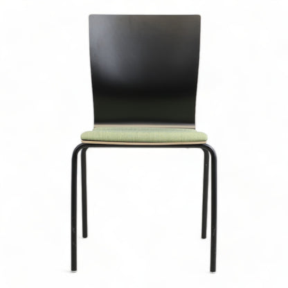 Nyrenset | EFG stablebare stoler med sort ramme og grønn pute
