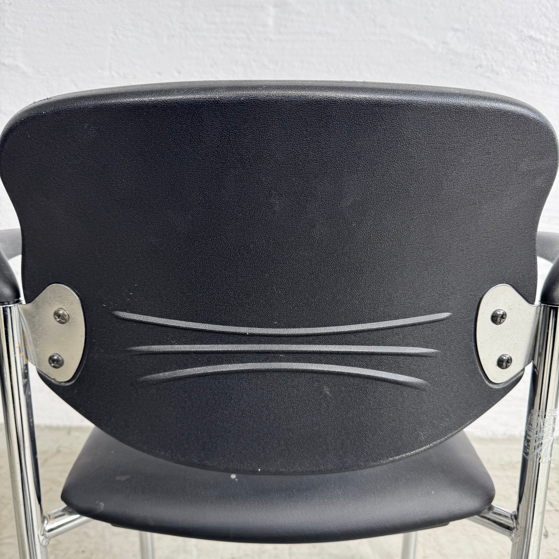 Møteromsstolen har noe slitasje på skinnet, men dette påvirker ikke komfort eller funksjonalitet. Den gir fortsatt utmerket støtte og stil til ethvert rom.