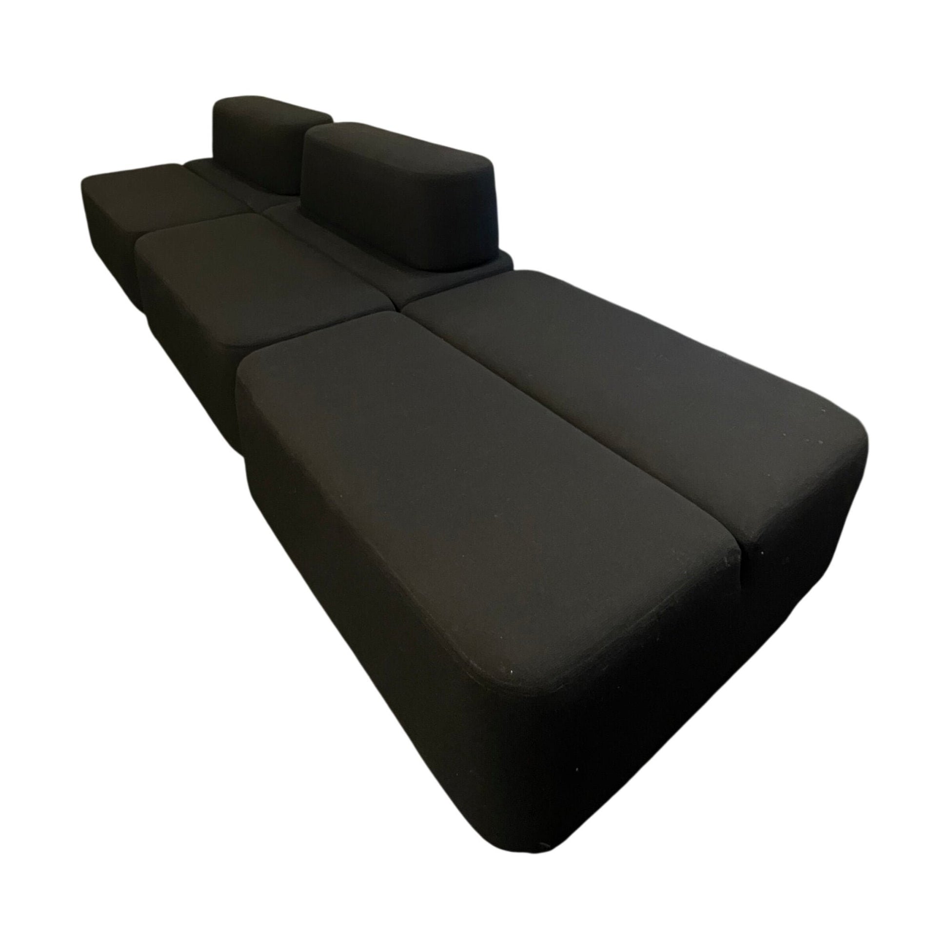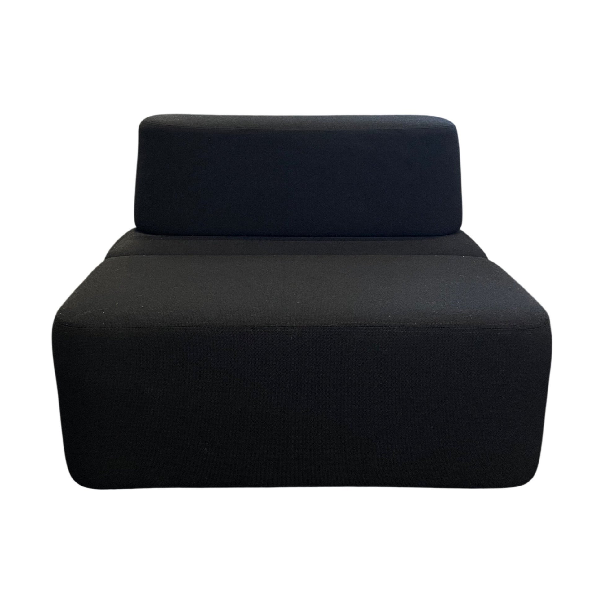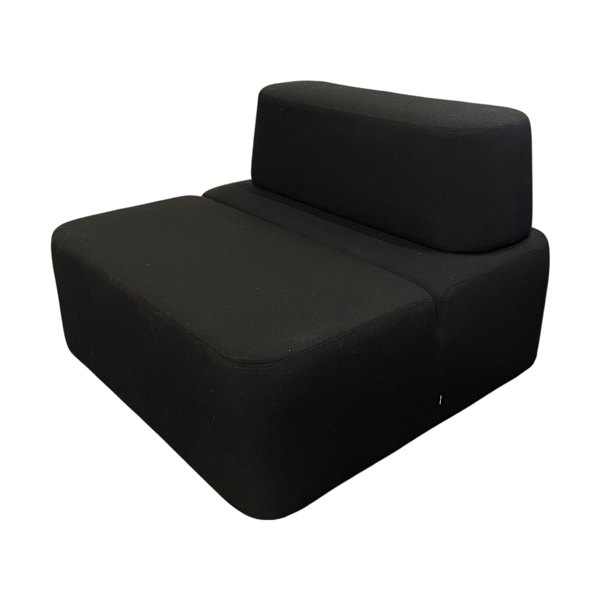 Sofaen er i utmerket tilstand med minimal slitasje. Den svarte tekstilen er lett å vedlikeholde og gir et stilrent uttrykk. Et utmerket valg for å tilføre komfort og stil til kontoret.