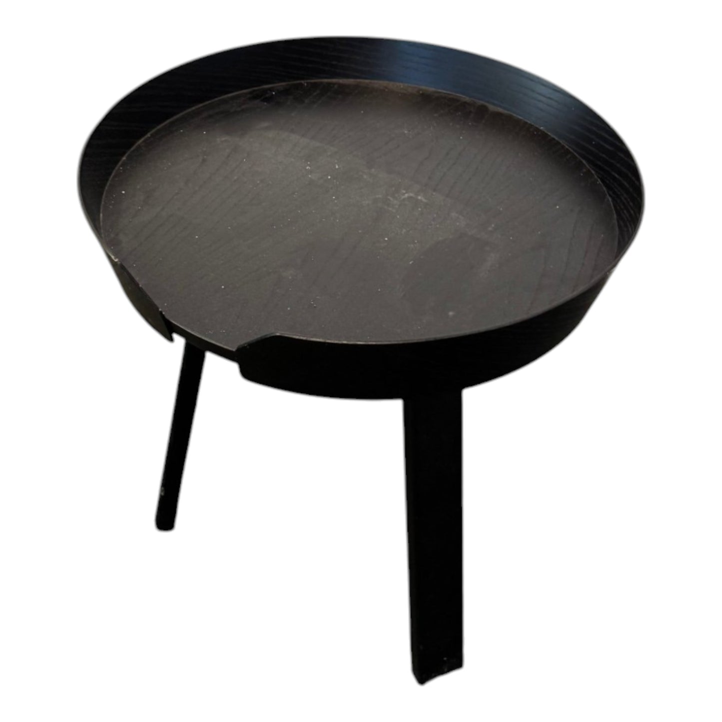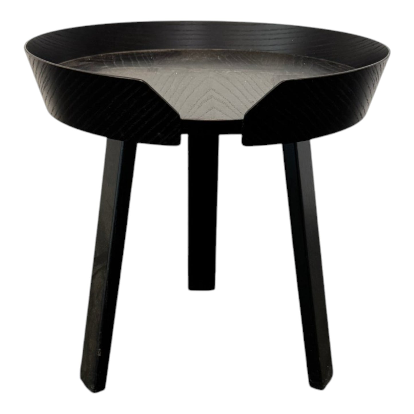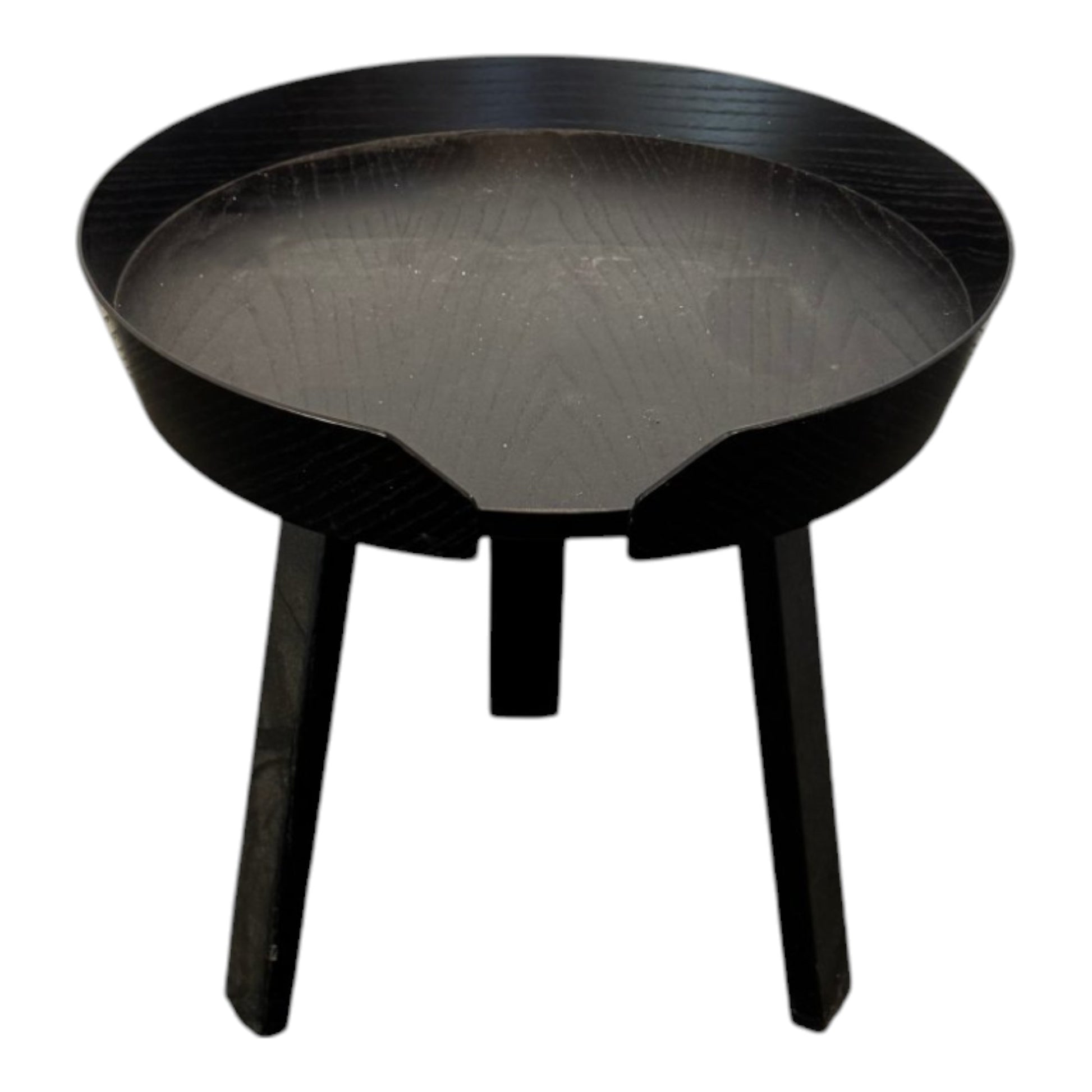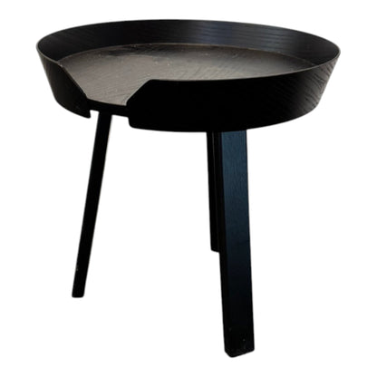 Elegant rundt sidebord fra Muuto i malt eiketre. Bordet har en praktisk kant rundt platen og passer godt som side- eller kaffebord.