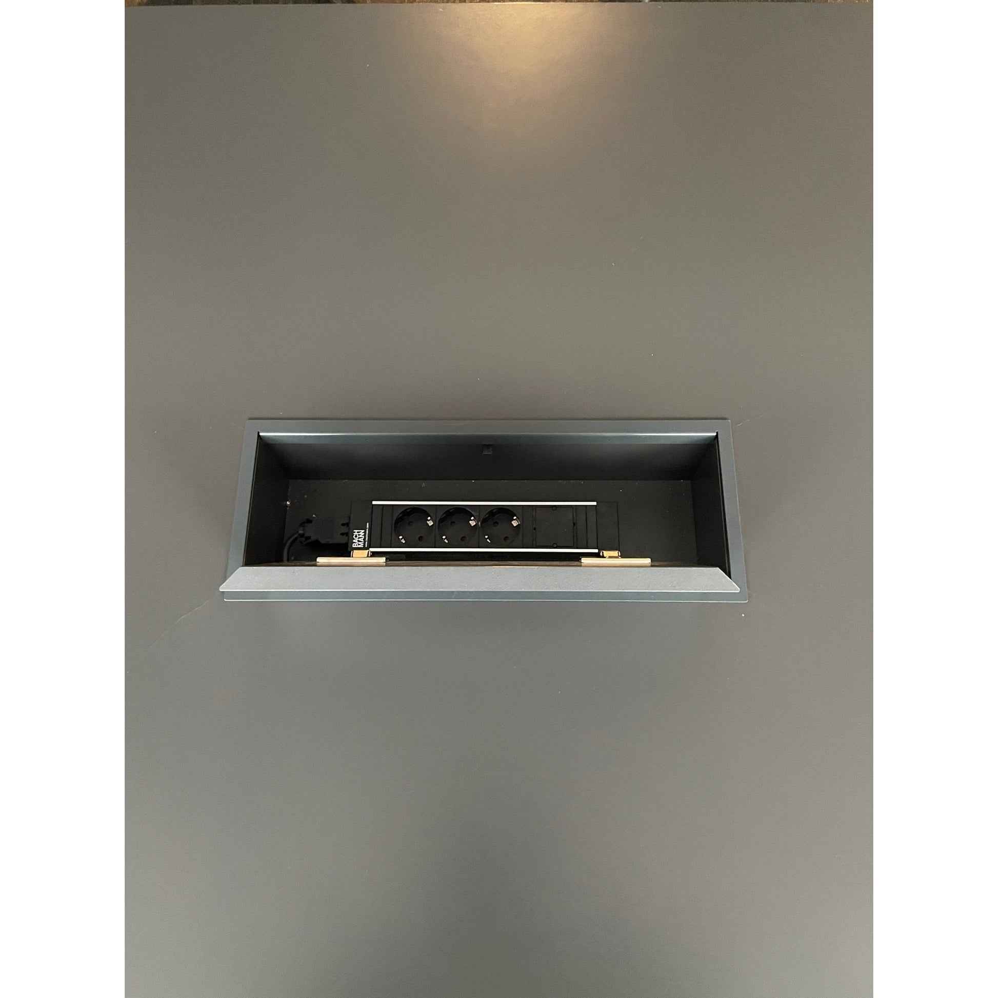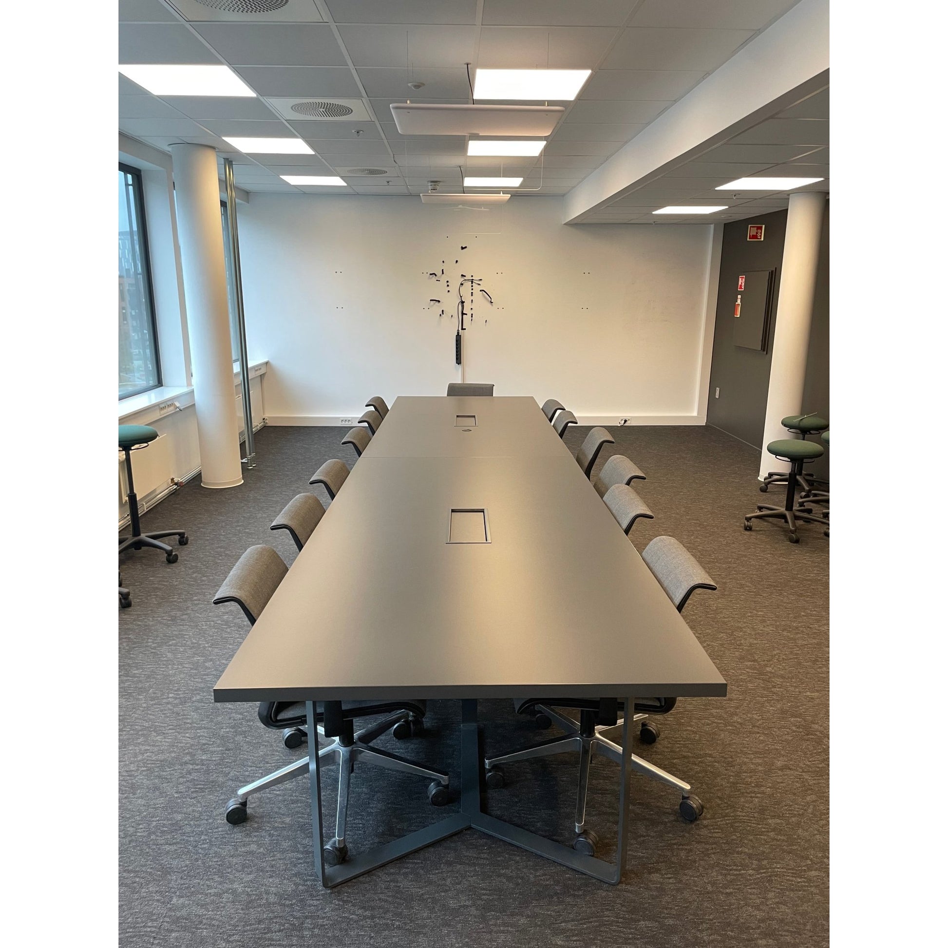 Solid møtebord med en slitesterk mørk grå bordplate og et robust understell i stål. Bordet har et moderne design med rene linjer og gir et stilrent preg, perfekt for møterom og kontormiljøer.Den romslige bordflaten på 480x120 cm gir god plass til flere deltakere, og de integrerte stikkontaktene sikrer enkel tilkobling av utstyr og teknologi.