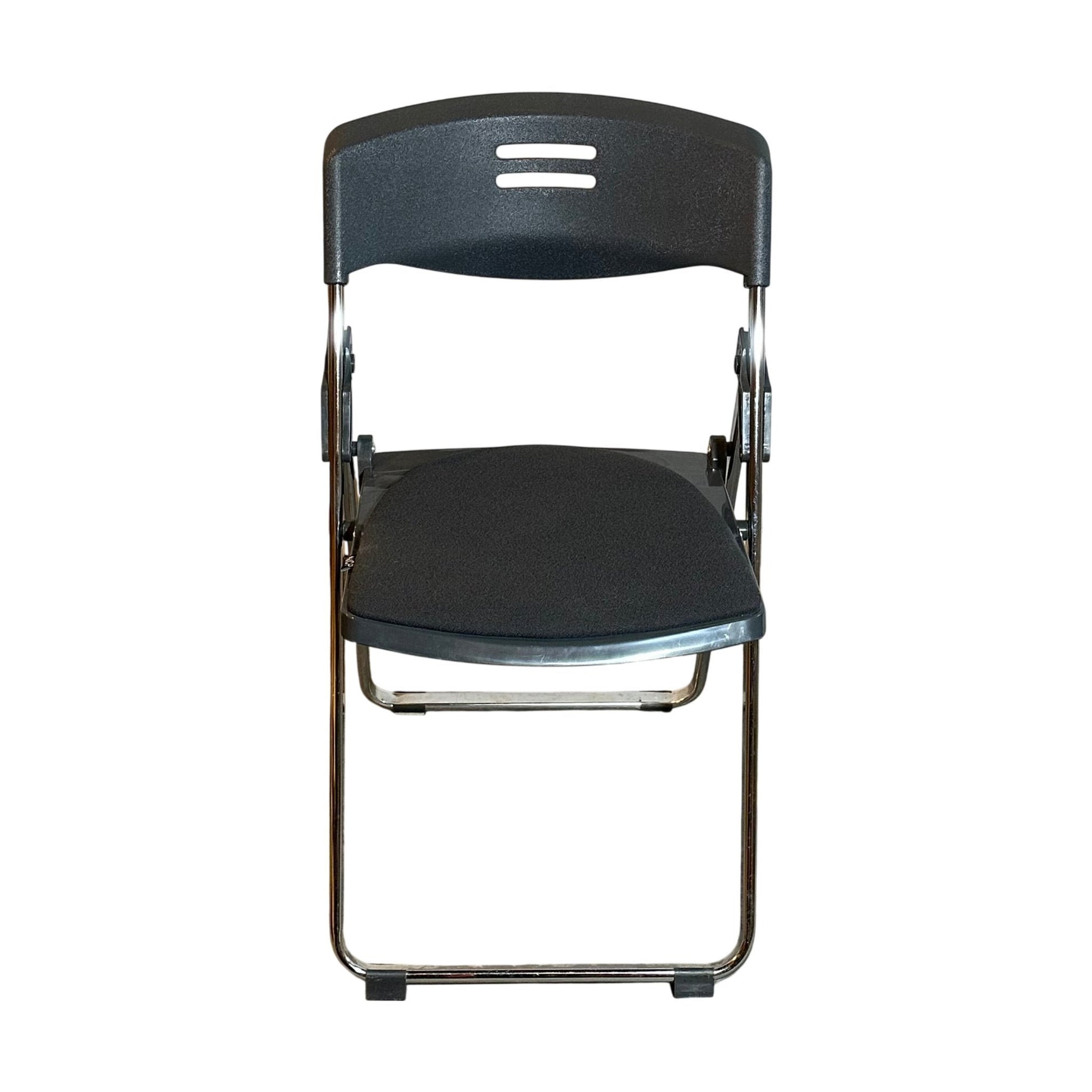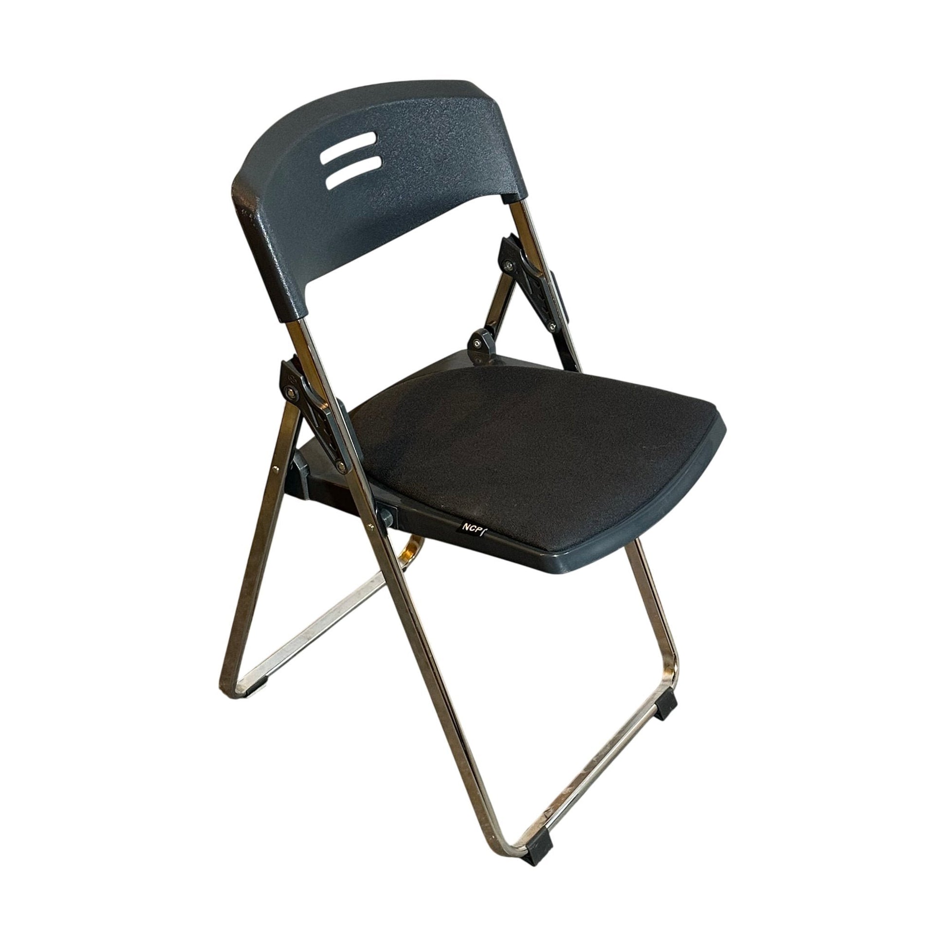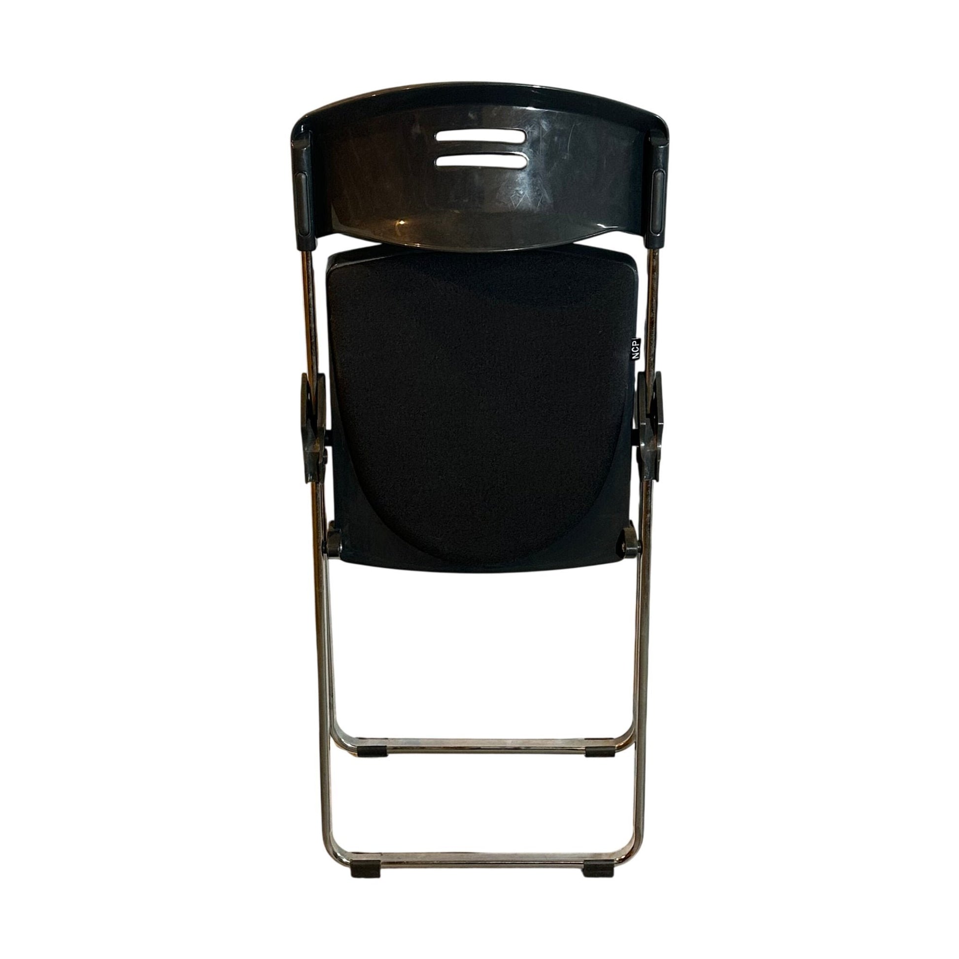 NCP klappstol i et minimalistisk og stilrent design, perfekt for kontoret eller møterom. Stolen er laget med et slitesterkt svart materiale på setet og ryggen, kombinert med en solid metallramme som gir god stabilitet. Med sin sammenleggbare funksjon er denne stolen både praktisk og plassbesparende, ideell for varierende behov i møter eller arrangementer.
