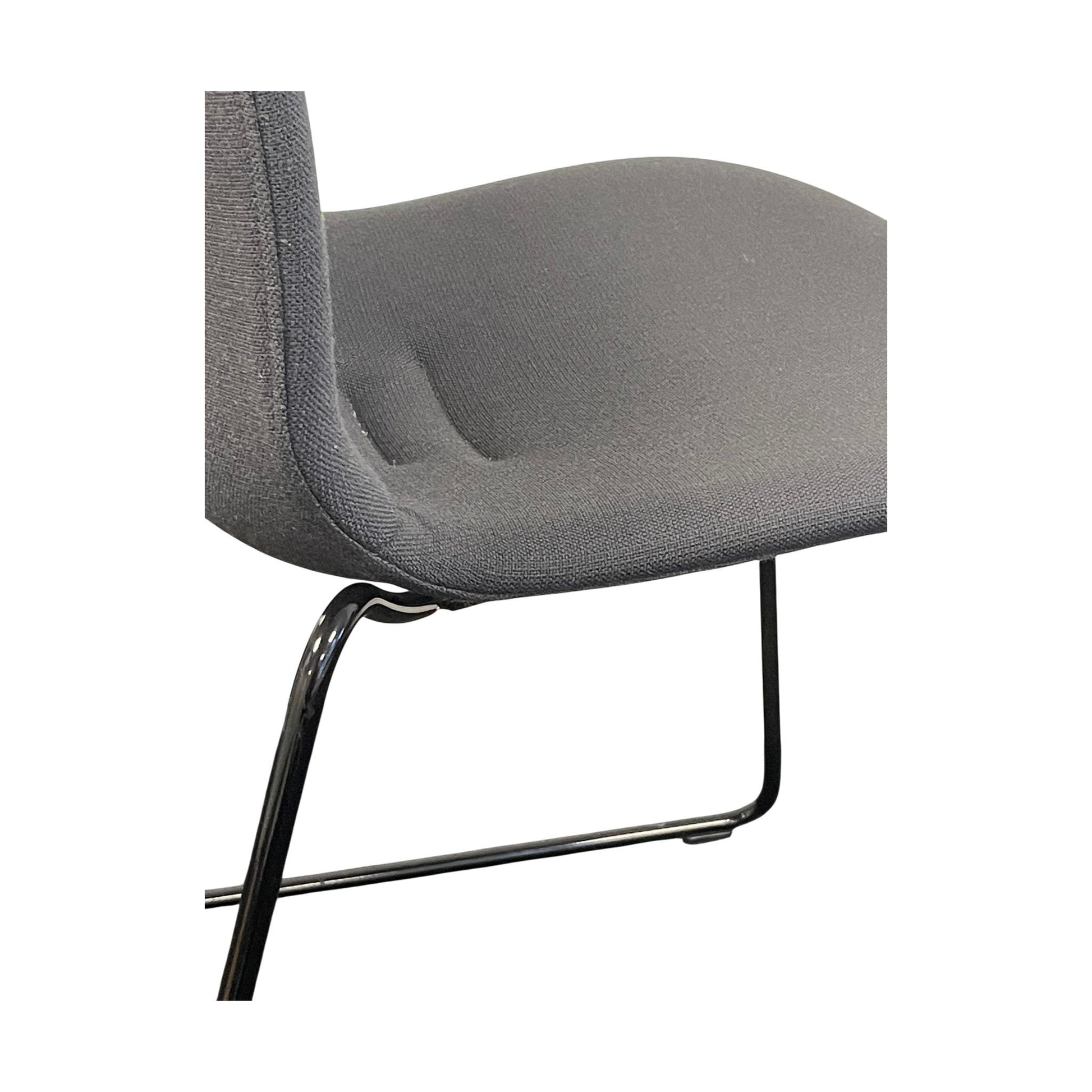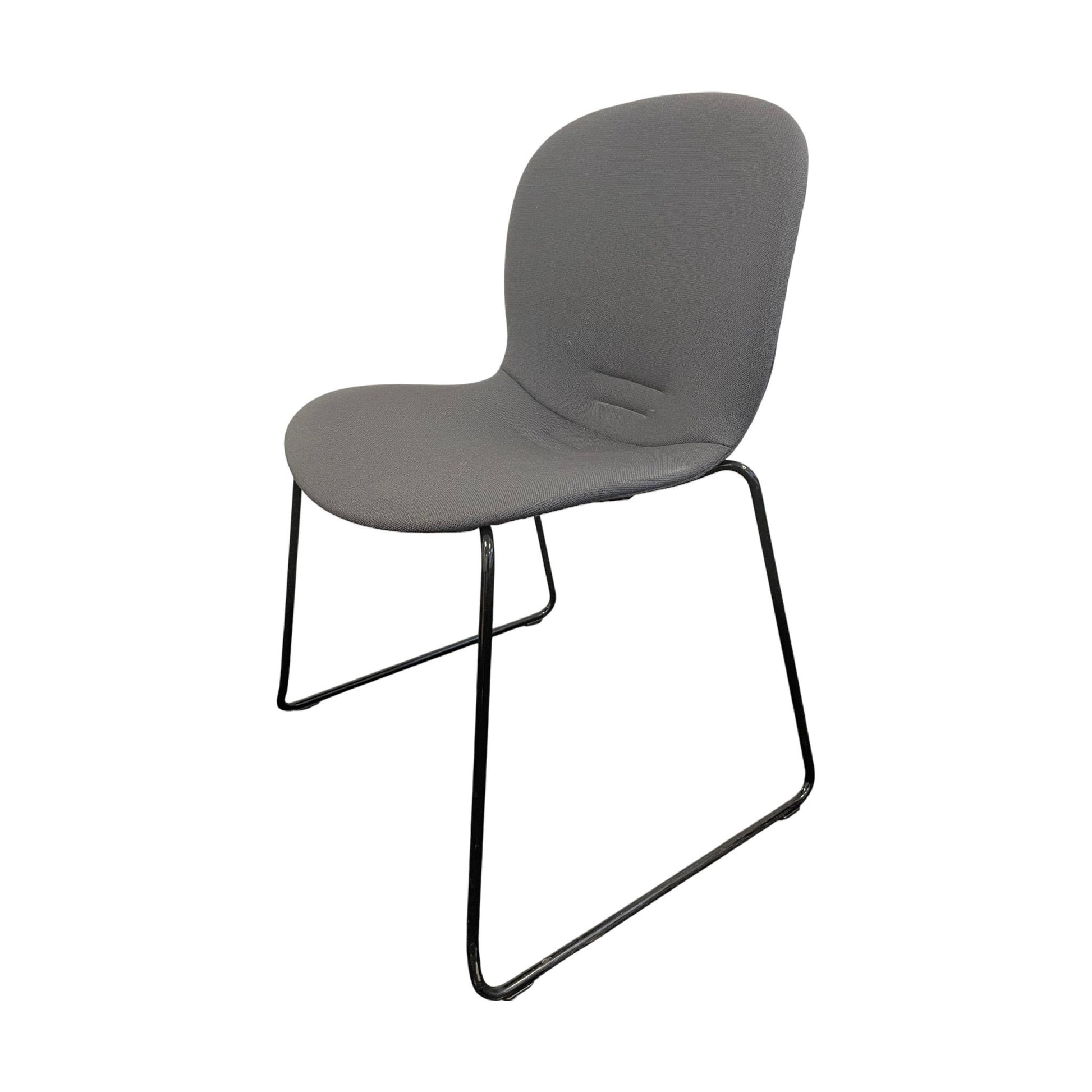 Moderne møteromsstol fra RBM med en stilren og funksjonell design. Stolen er utstyrt med en grå polstret sete og rygg, noe som gir god komfort under møter. Den har et minimalistisk uttrykk som gjør den velegnet til både møterom og kontorer. Stolen er stablebar, noe som gjør den enkel å oppbevare ved behov.