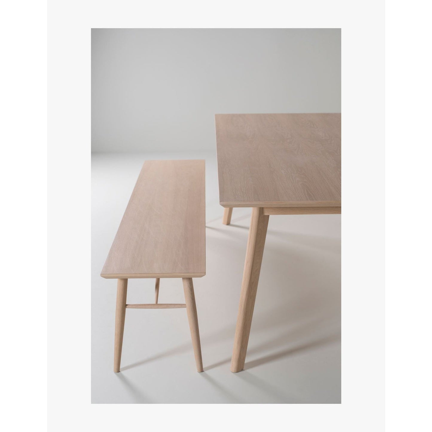 Nora spisebenk er en solid og moderne benk i skandinavisk stil, perfekt for å komplettere stuen, gangen, kjøkkenet eller venterommet. Den har en slank og enkel utforming med avrundede kanter som gir et eksklusivt preg. Sete i eikefiner og ben i heltre eik sørger for høy kvalitet og holdbarhet.