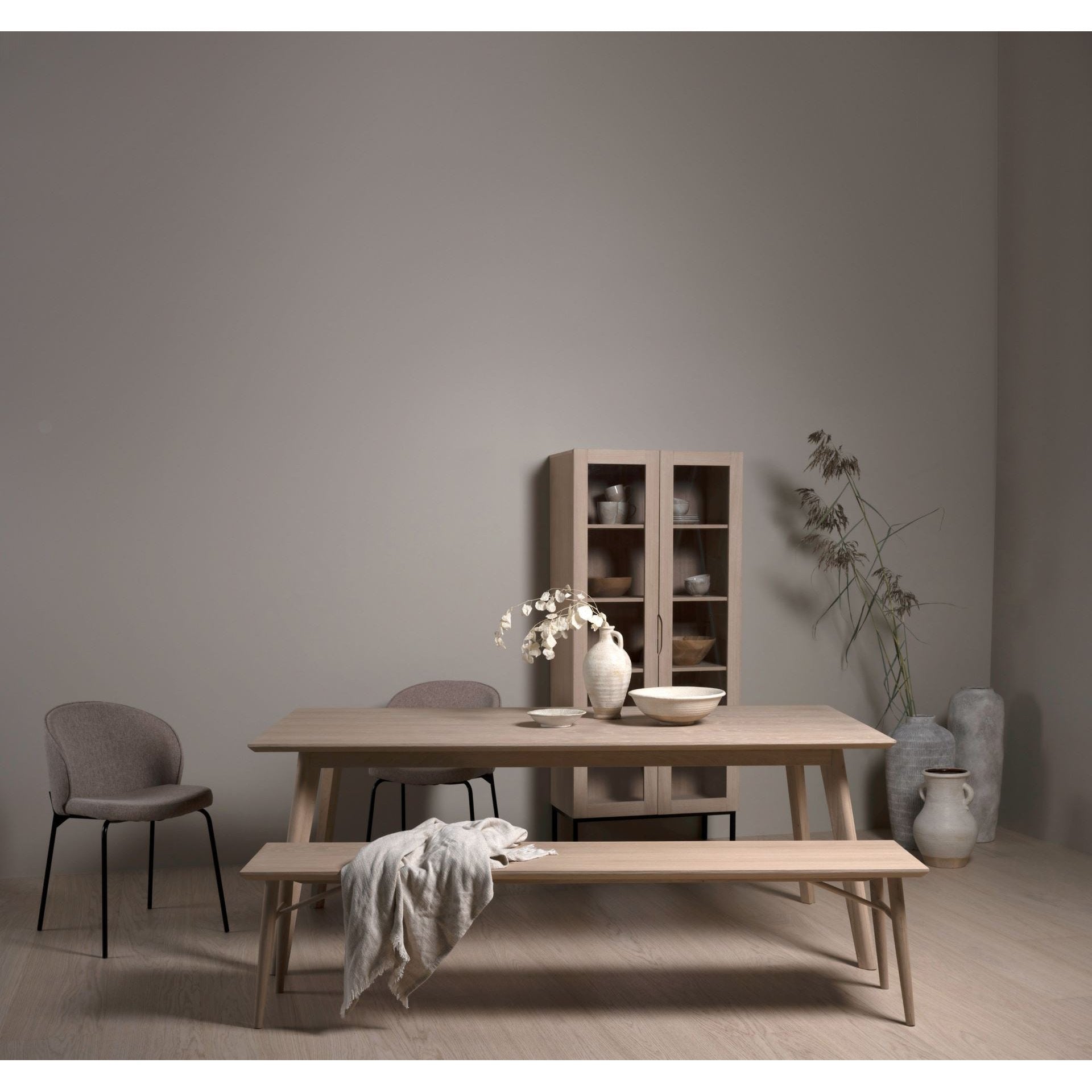 Stilrent og moderne spisebord fra Kid med en lengde på 200 cm og bredde på 100 cm, perfekt for både større og mindre rom. Det har en slank og minimalistisk utforming, med avrundede kanter som gir et eksklusivt preg. Bordplaten er laget i eikefiner, mens bena er laget av heltre eik, hvilket gir en solid konstruksjon. Dette spisebordet kommer i en naturfarge, som lett kan kombineres med diverse interiørstiler.